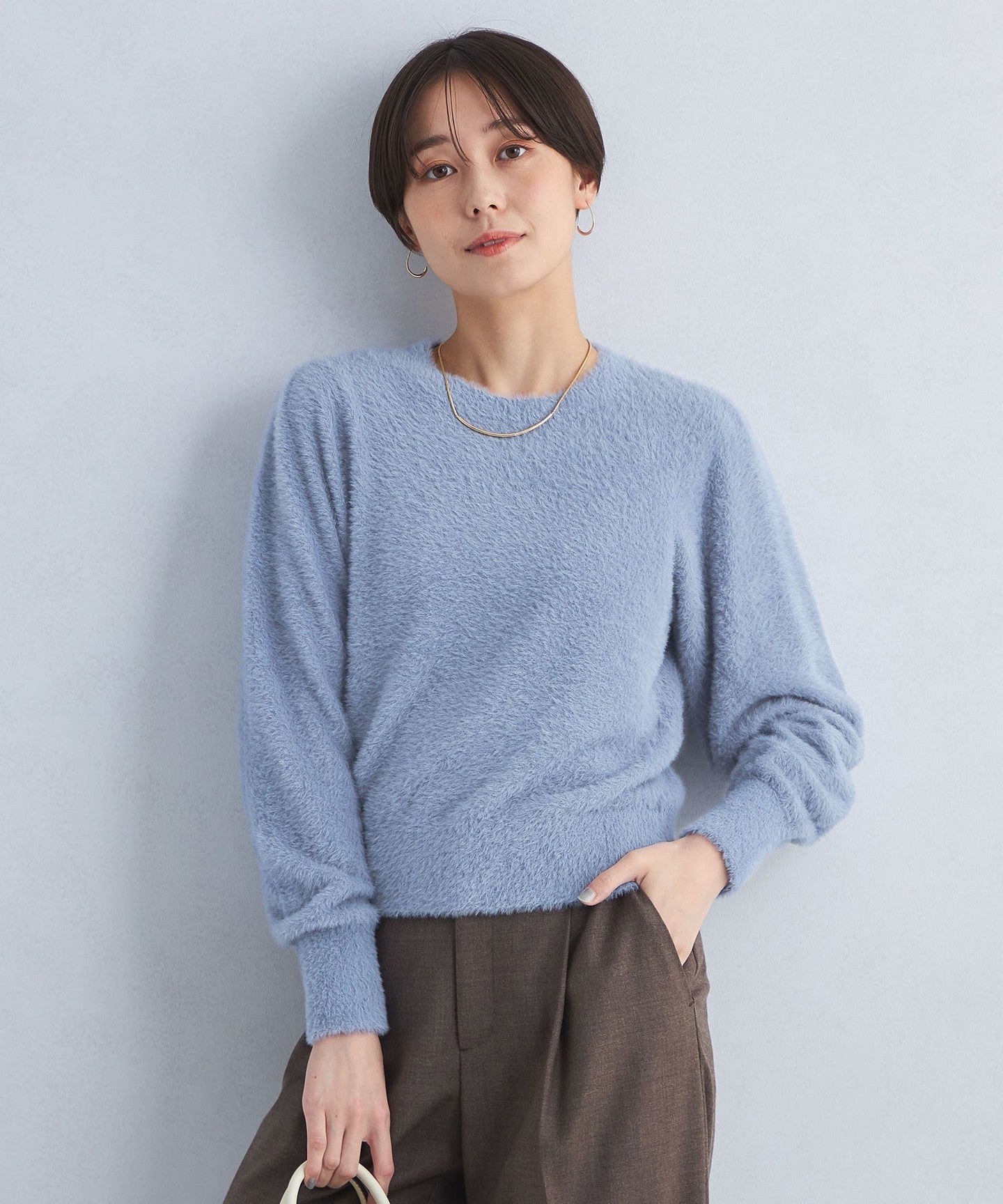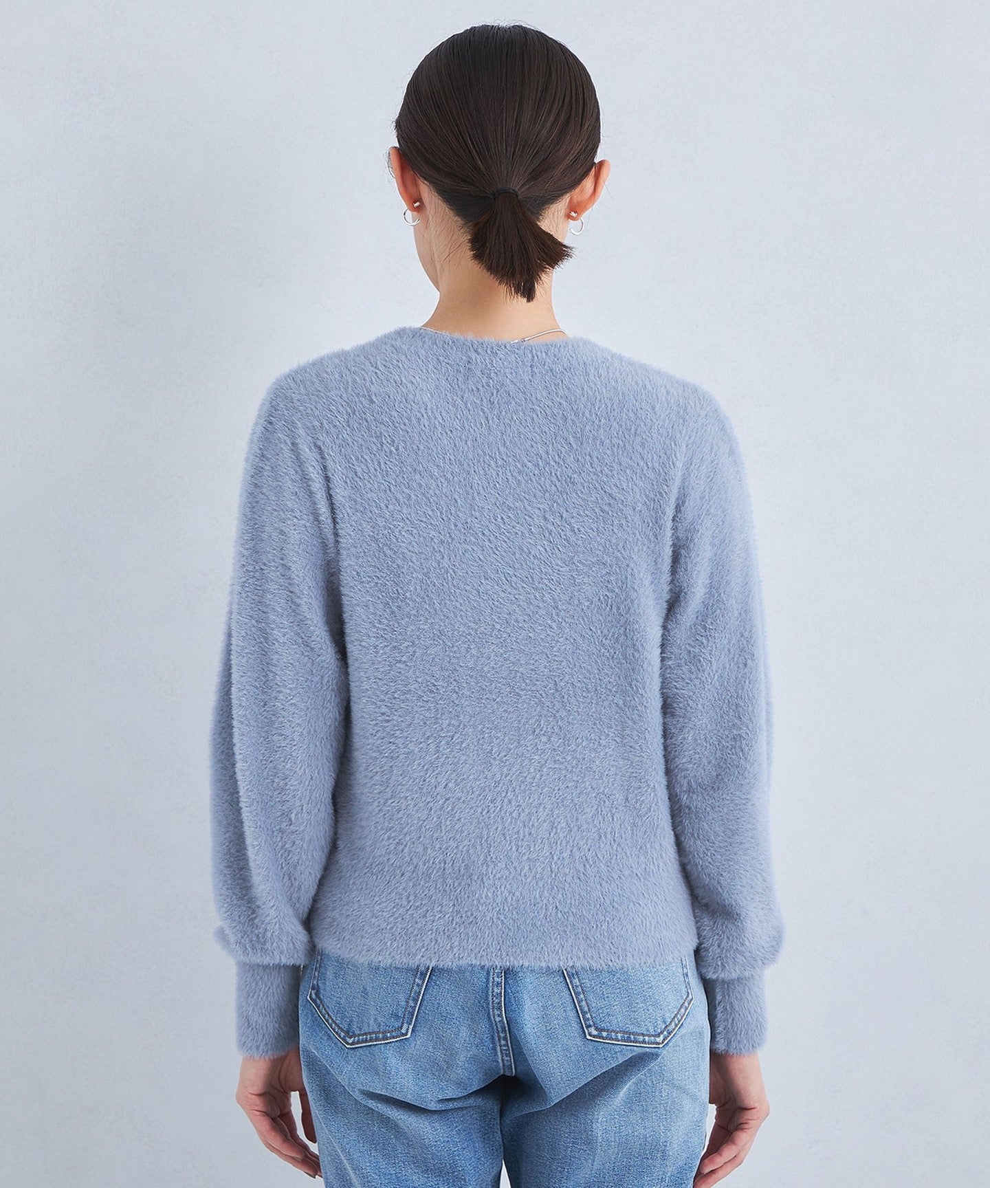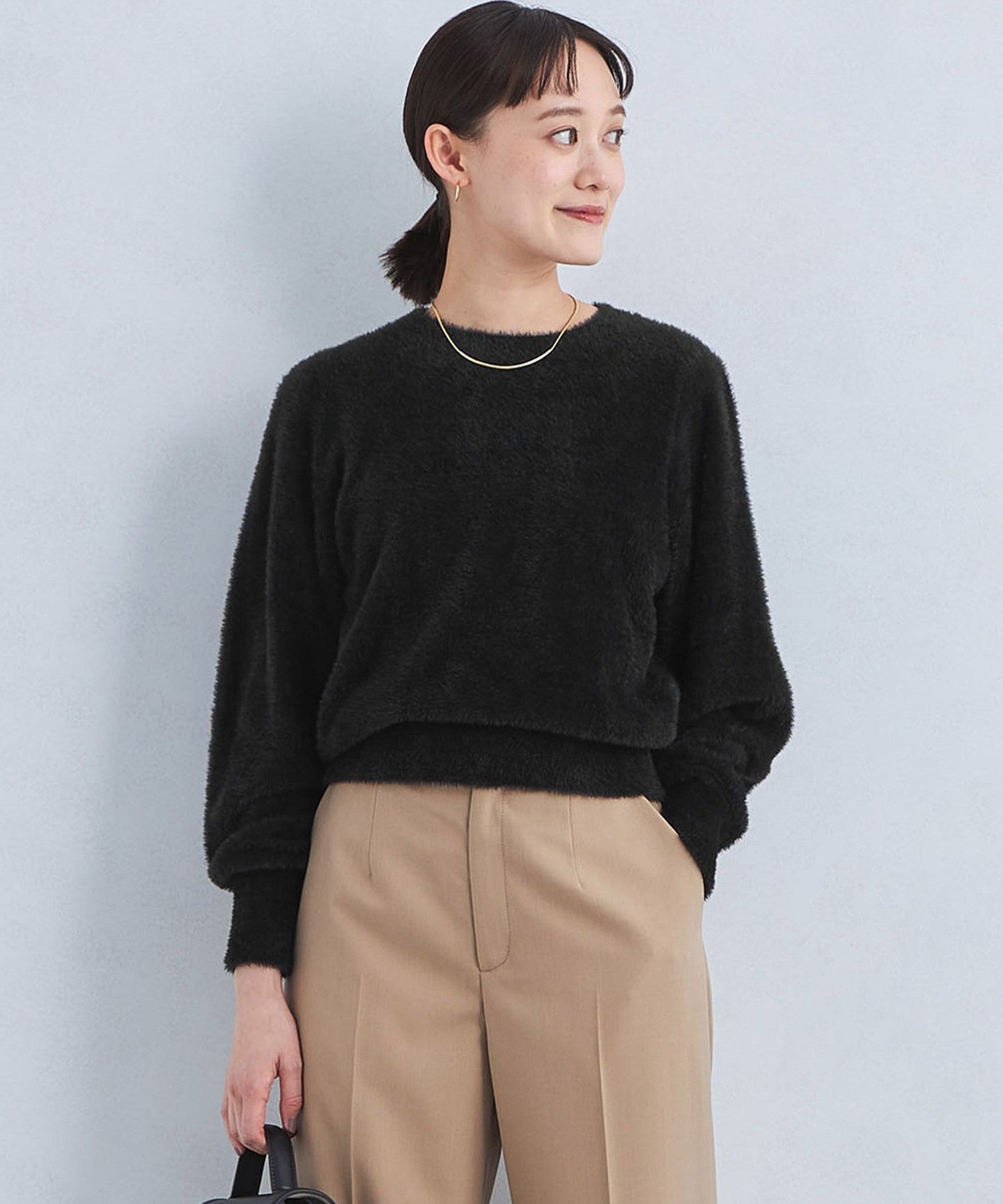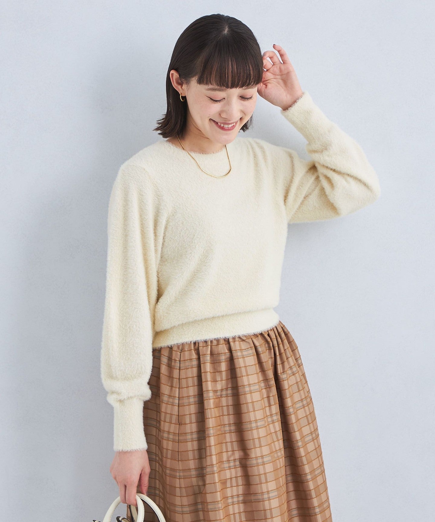 This knit is made of soft, fuzzy material for a mature, feminine look.