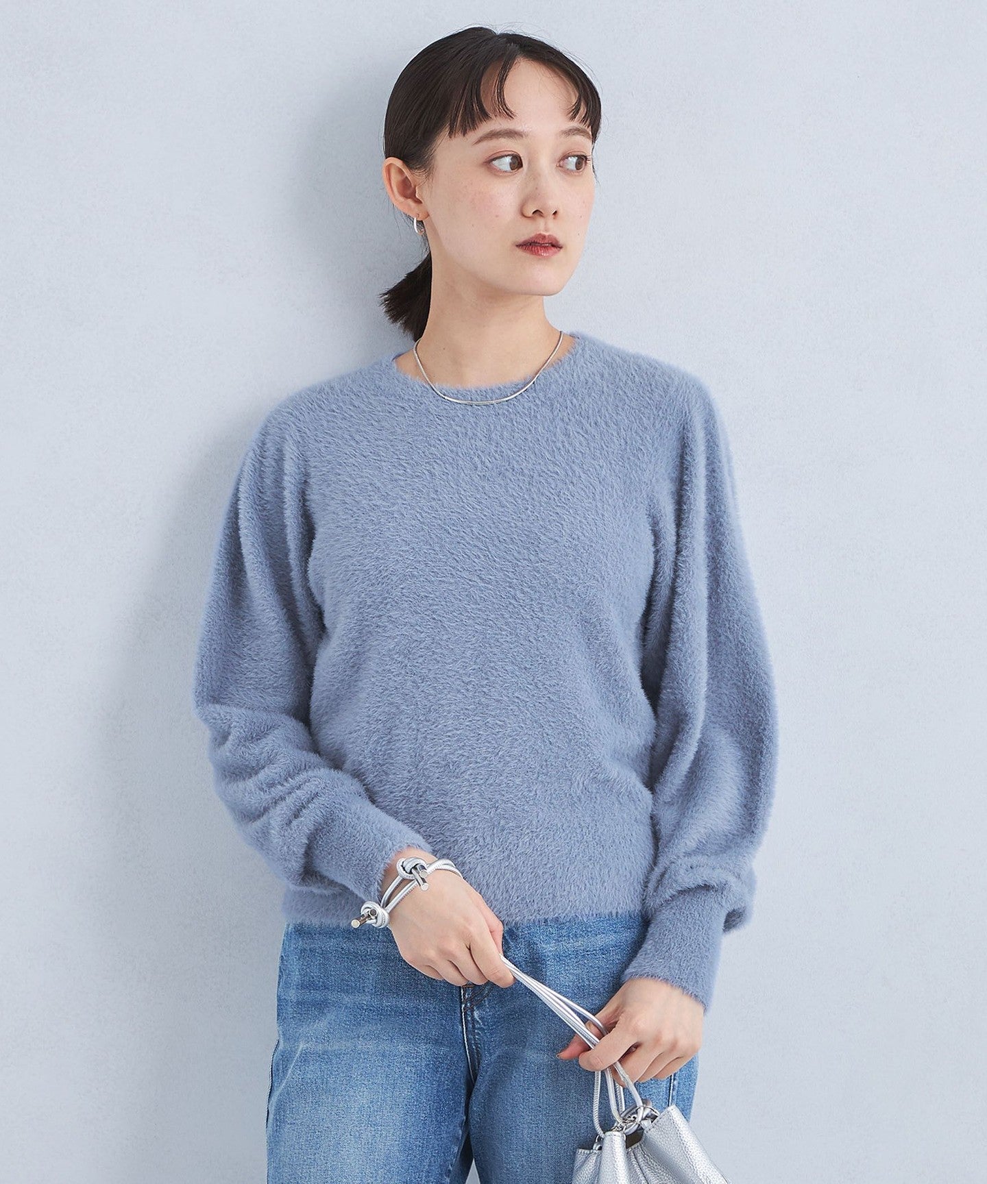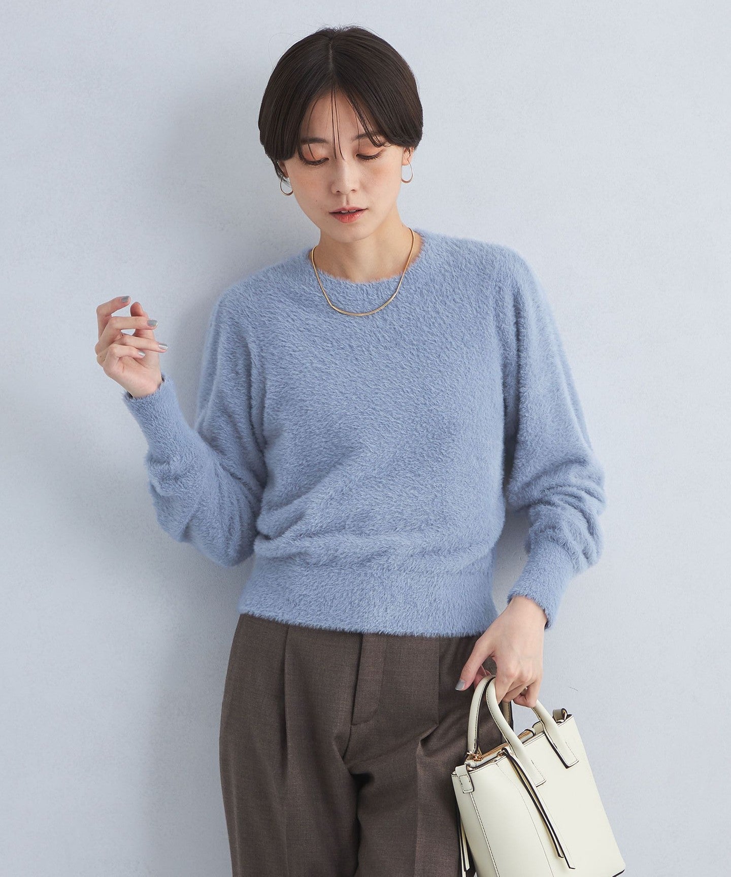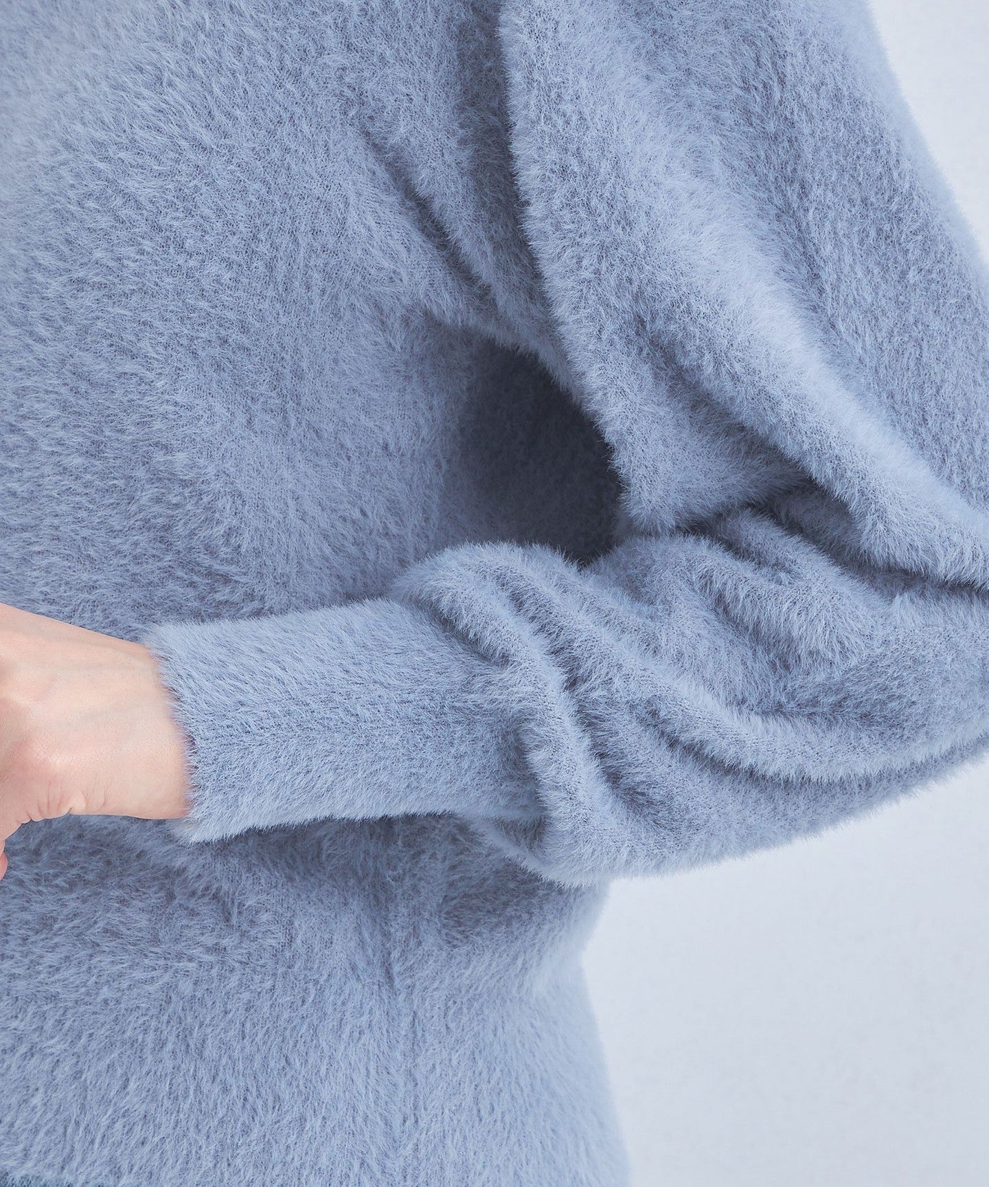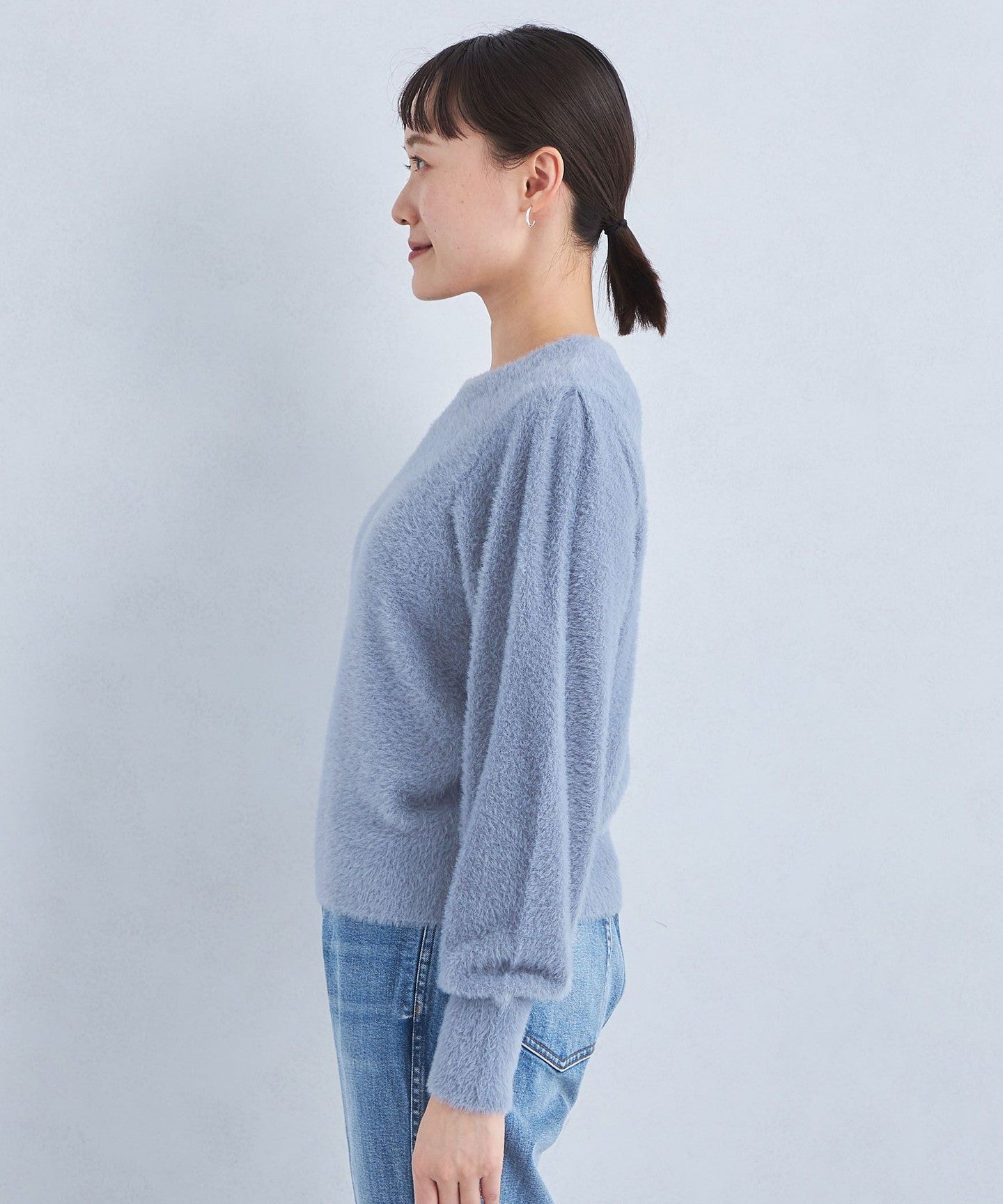 This knit is made of soft, fuzzy material for a mature, feminine look.