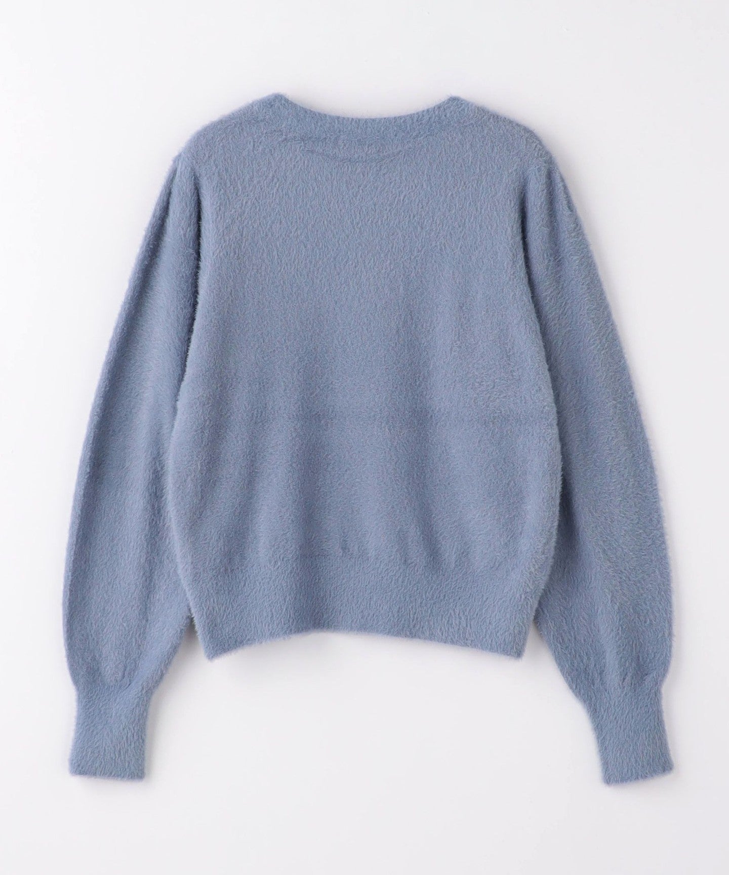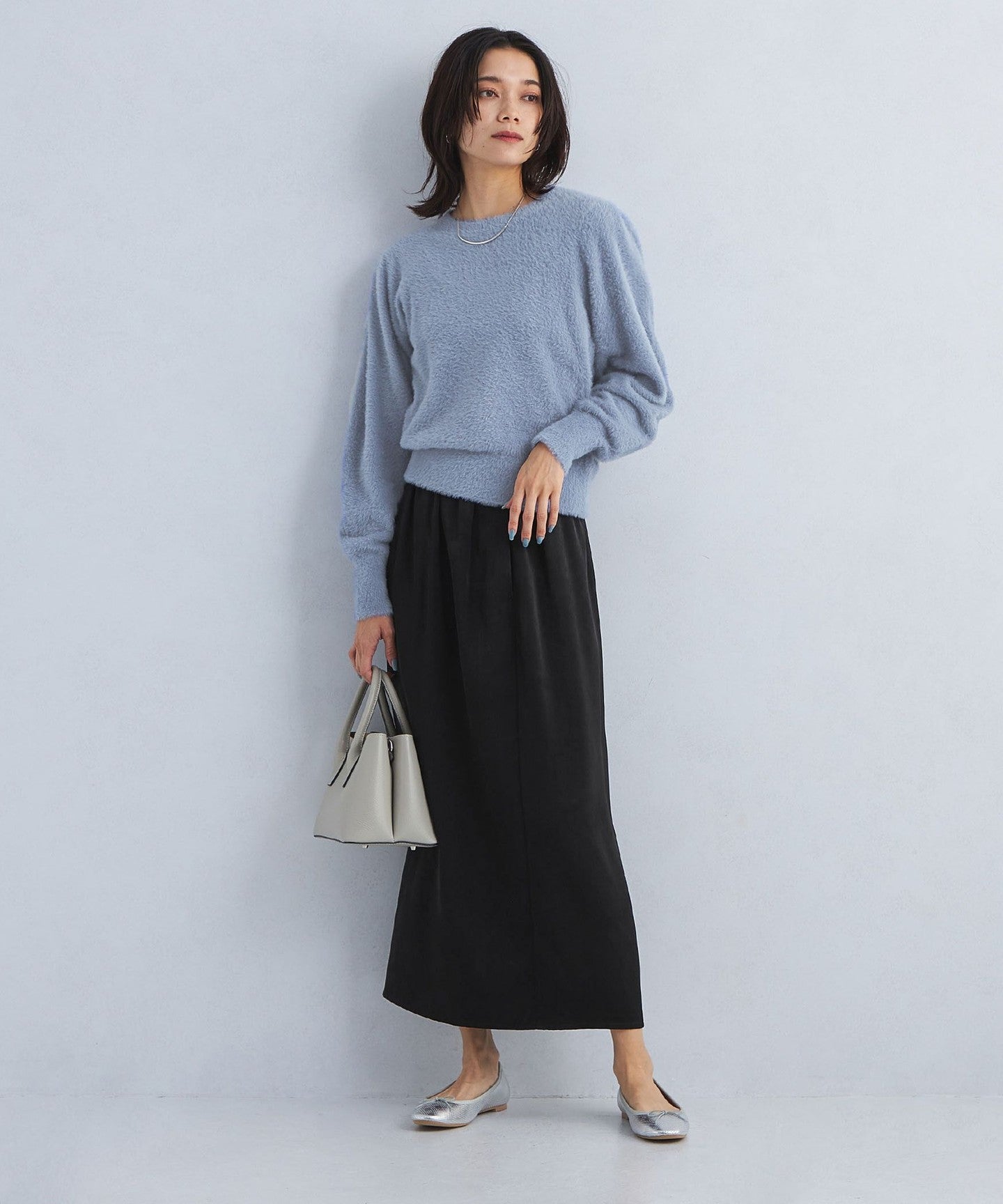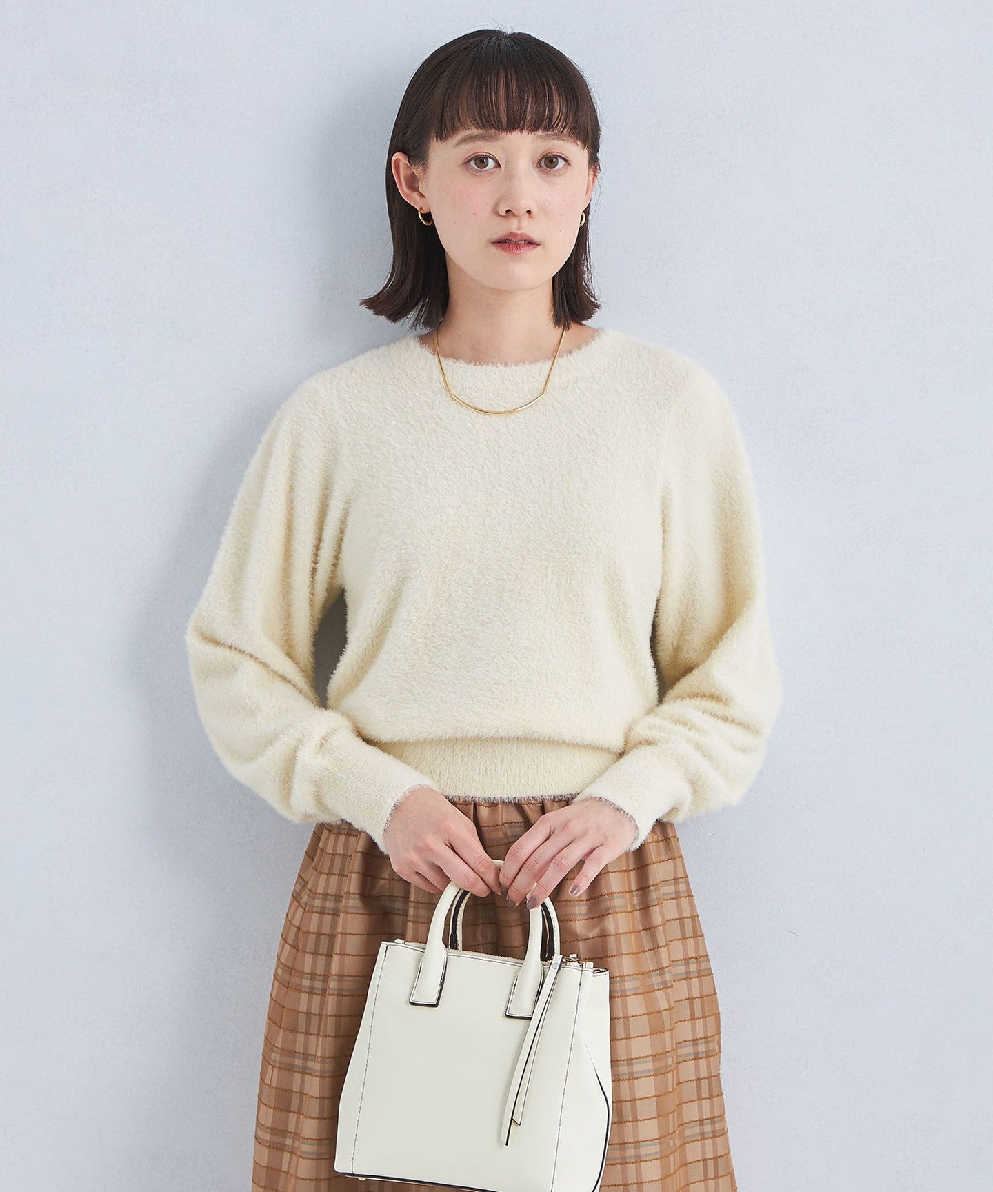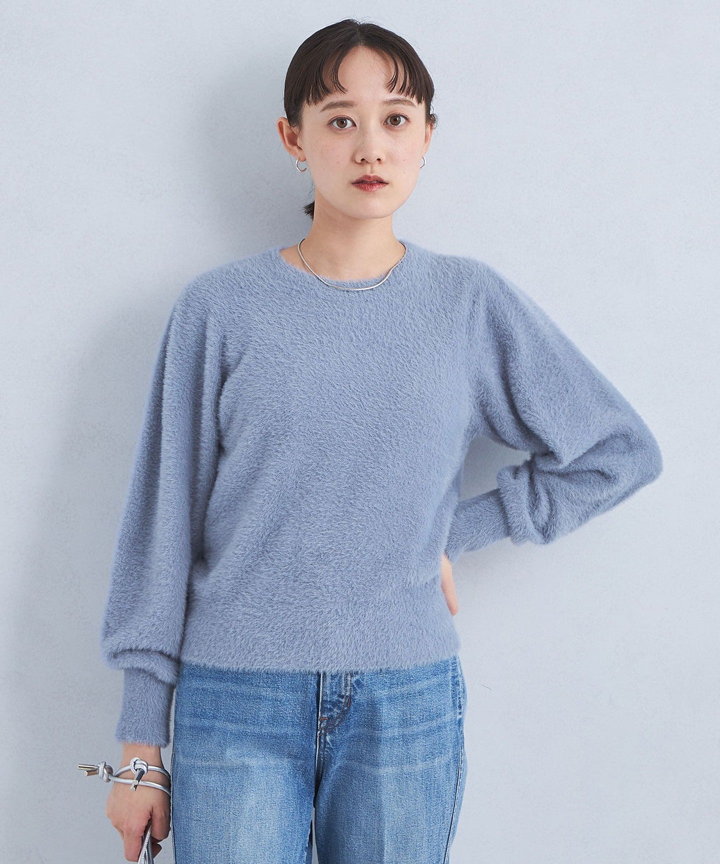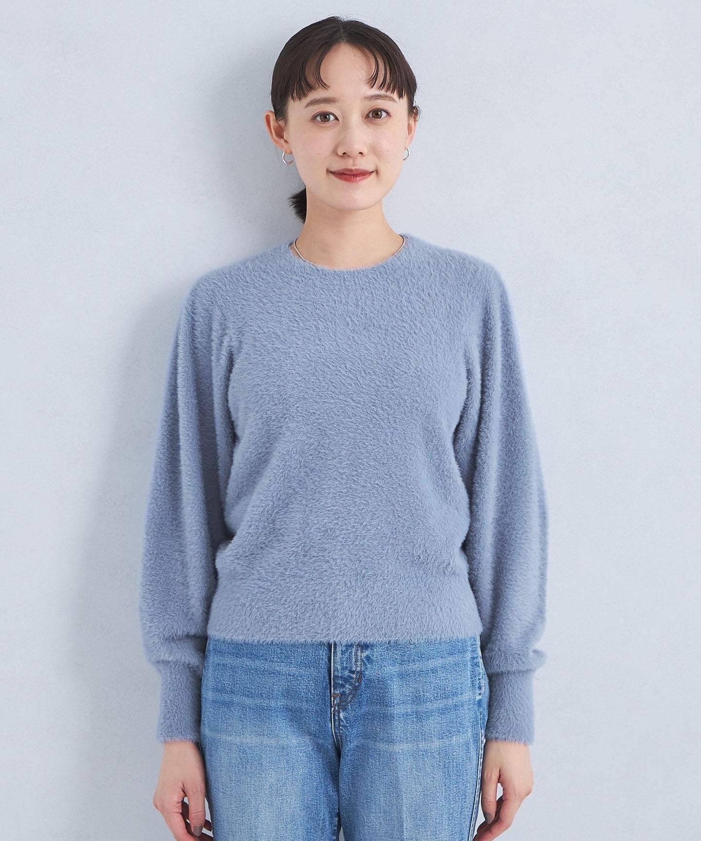 This knit is made of soft, fuzzy material for a mature, feminine look.