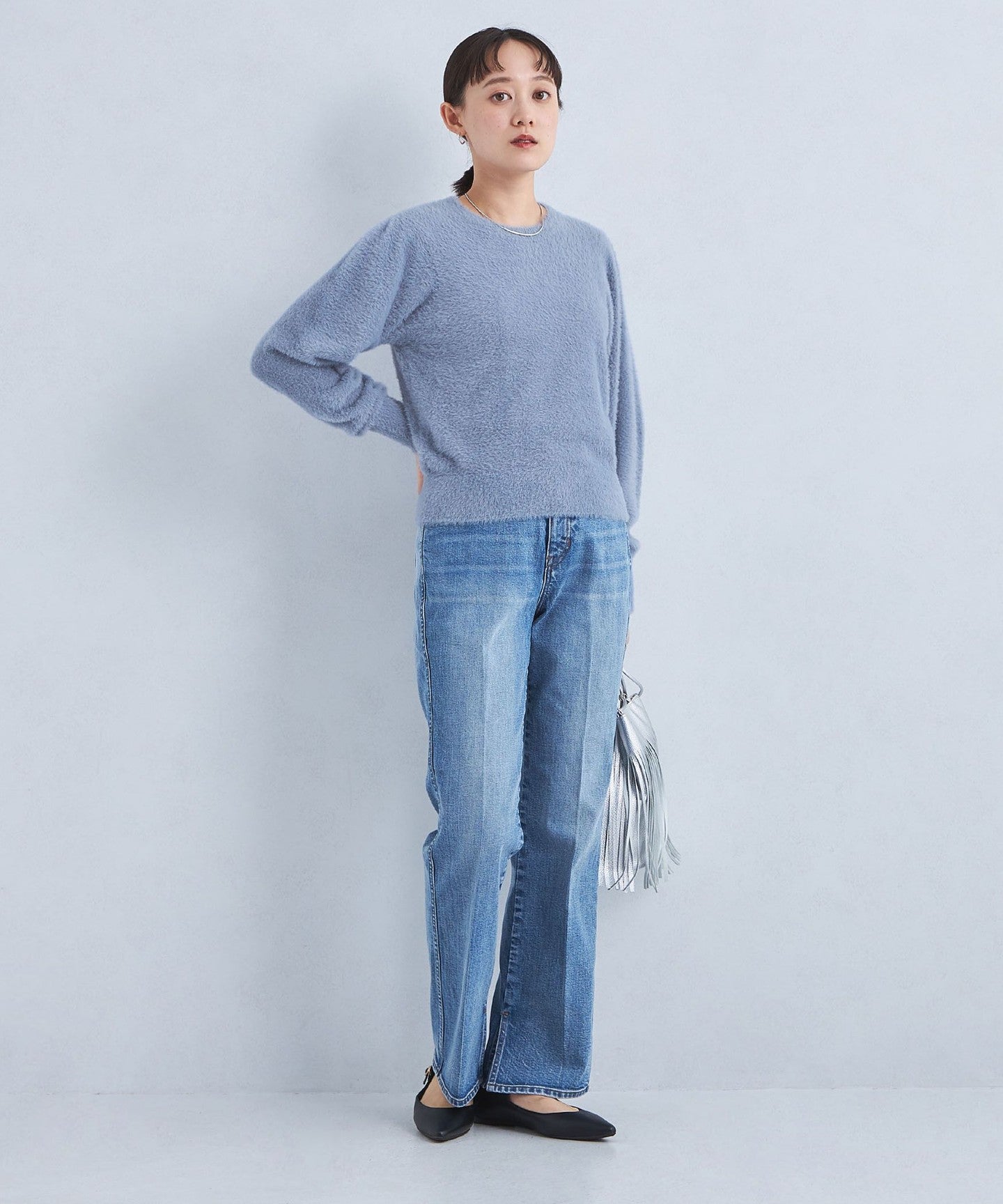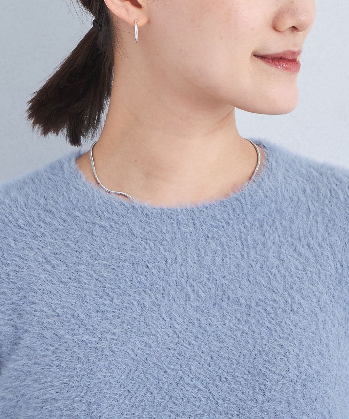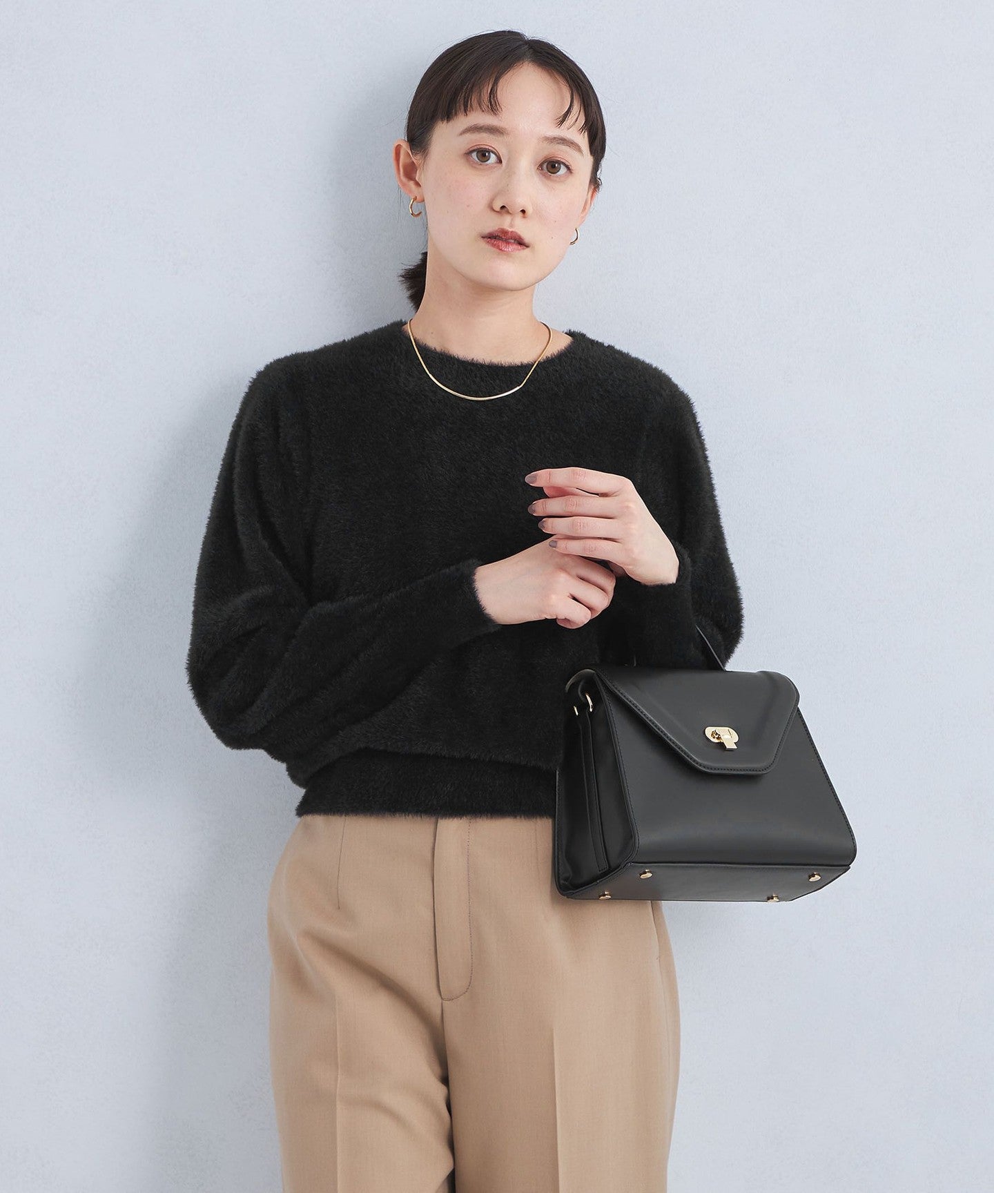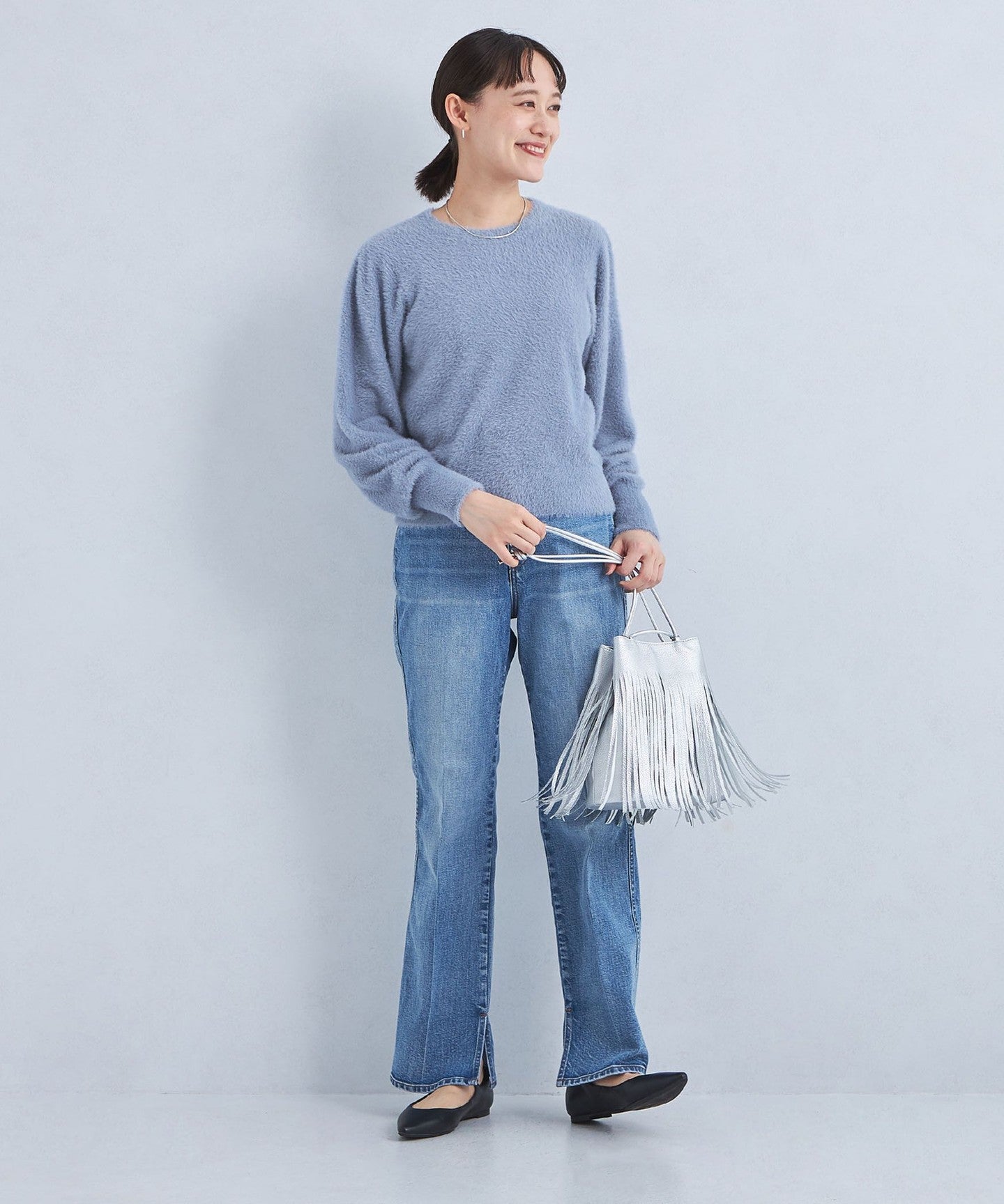 This knit is made of soft, fuzzy material for a mature, feminine look.