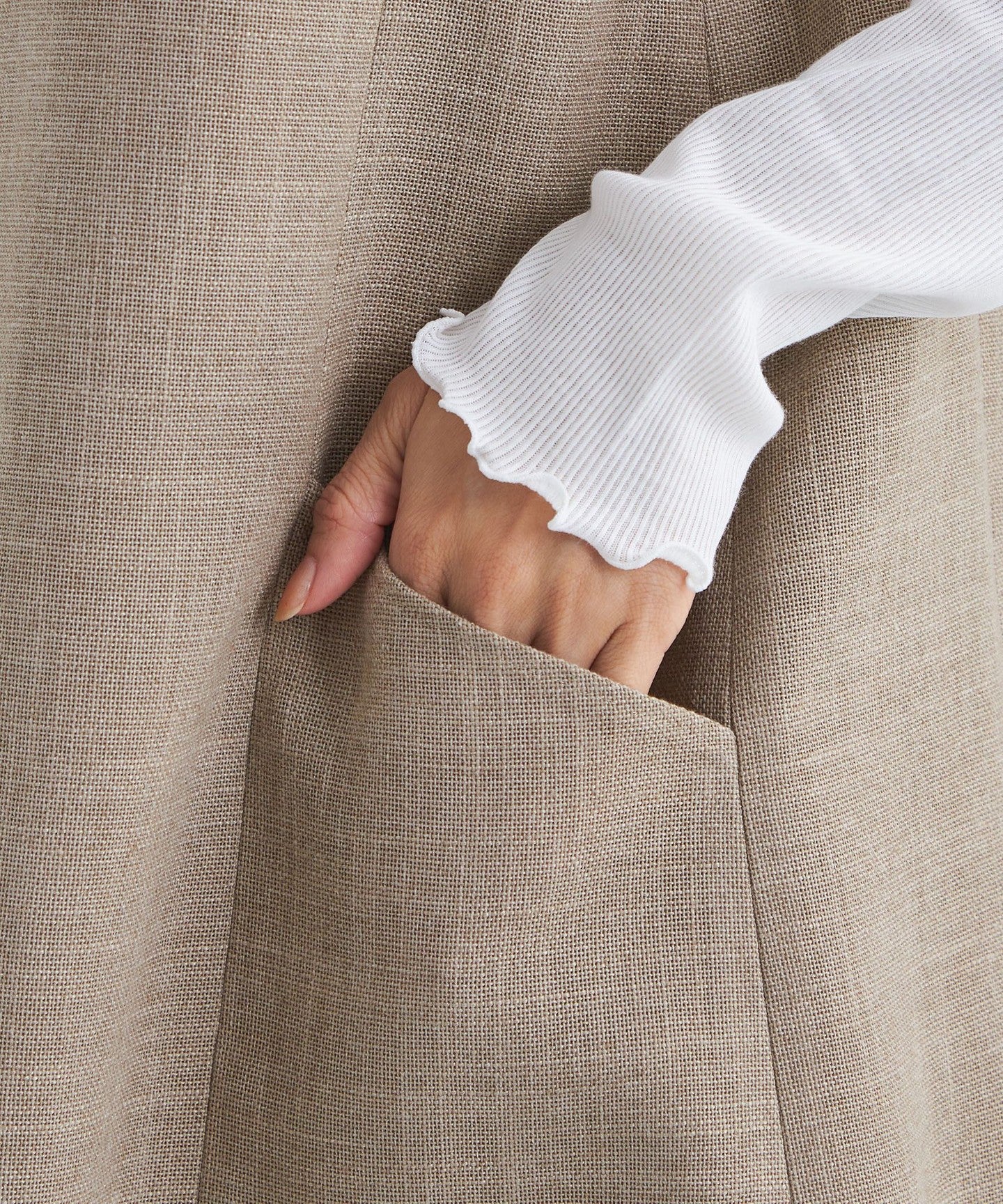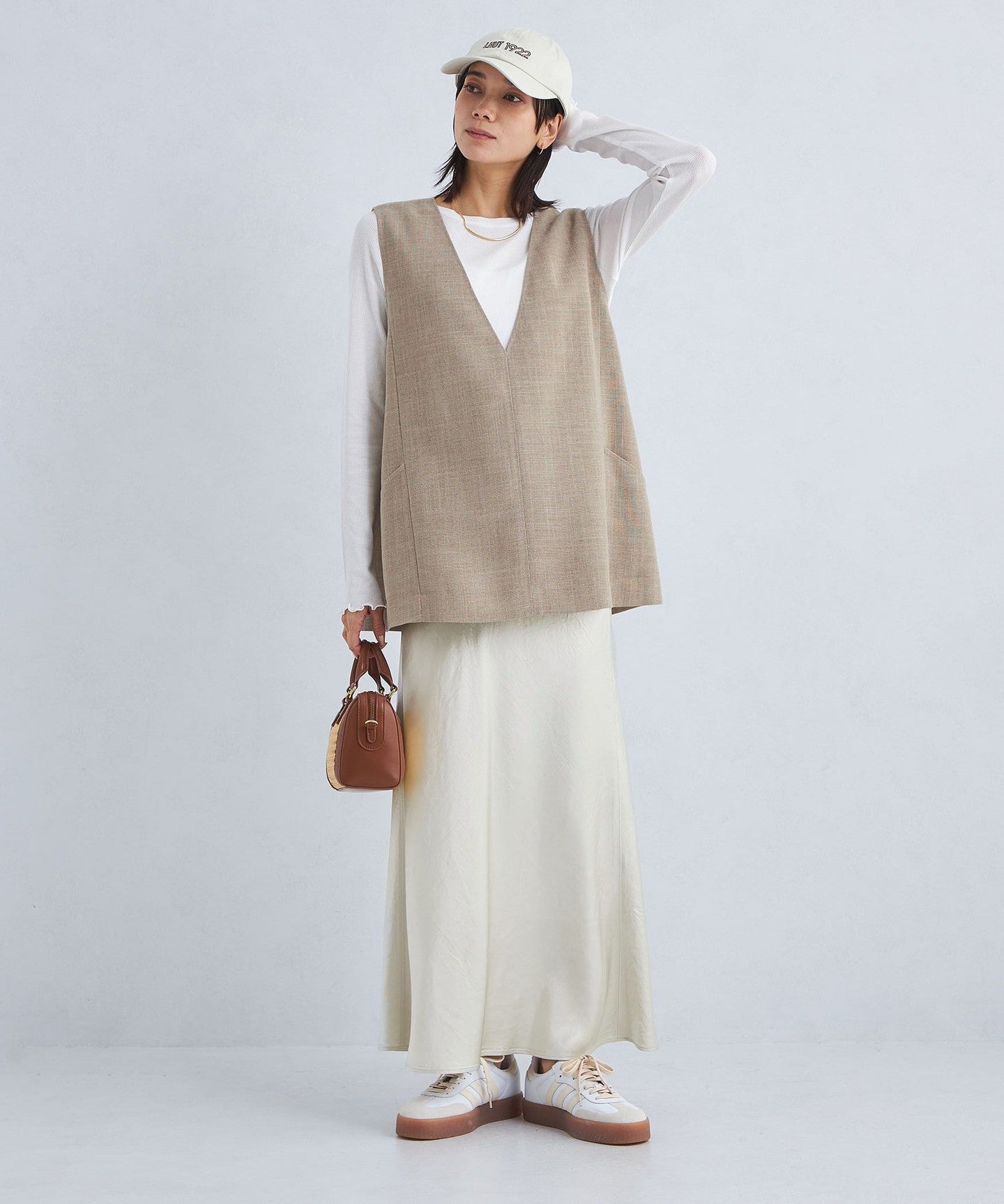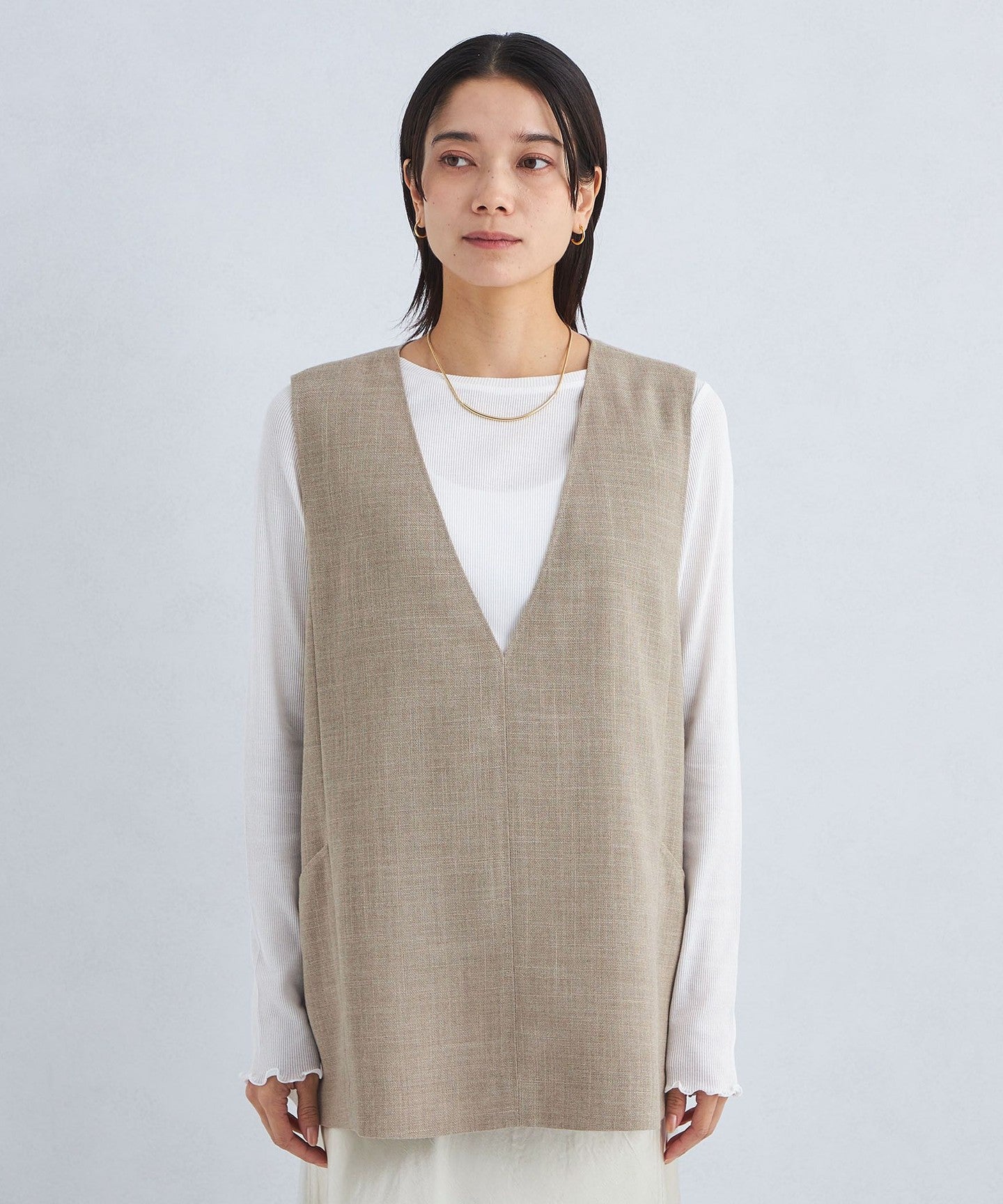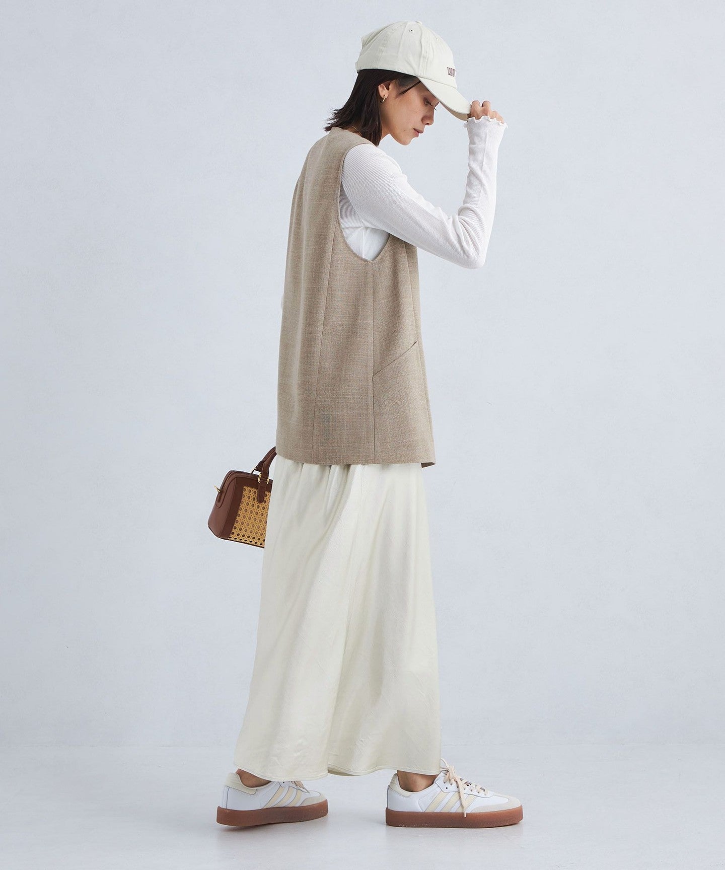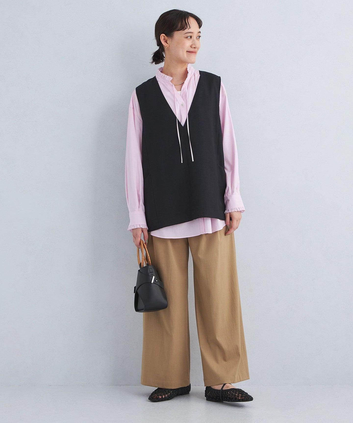 The hem is slightly flared so that it can be worn in balance with voluminous bottoms such as wide pants and flared skirts.