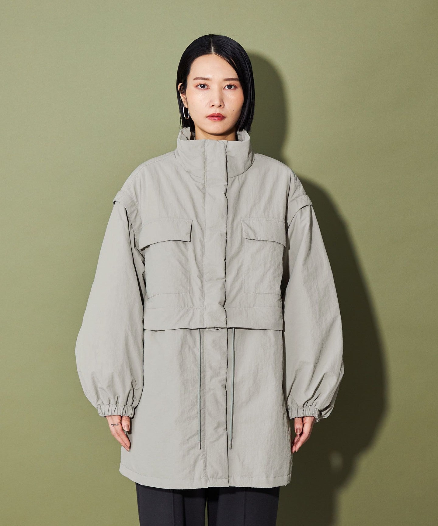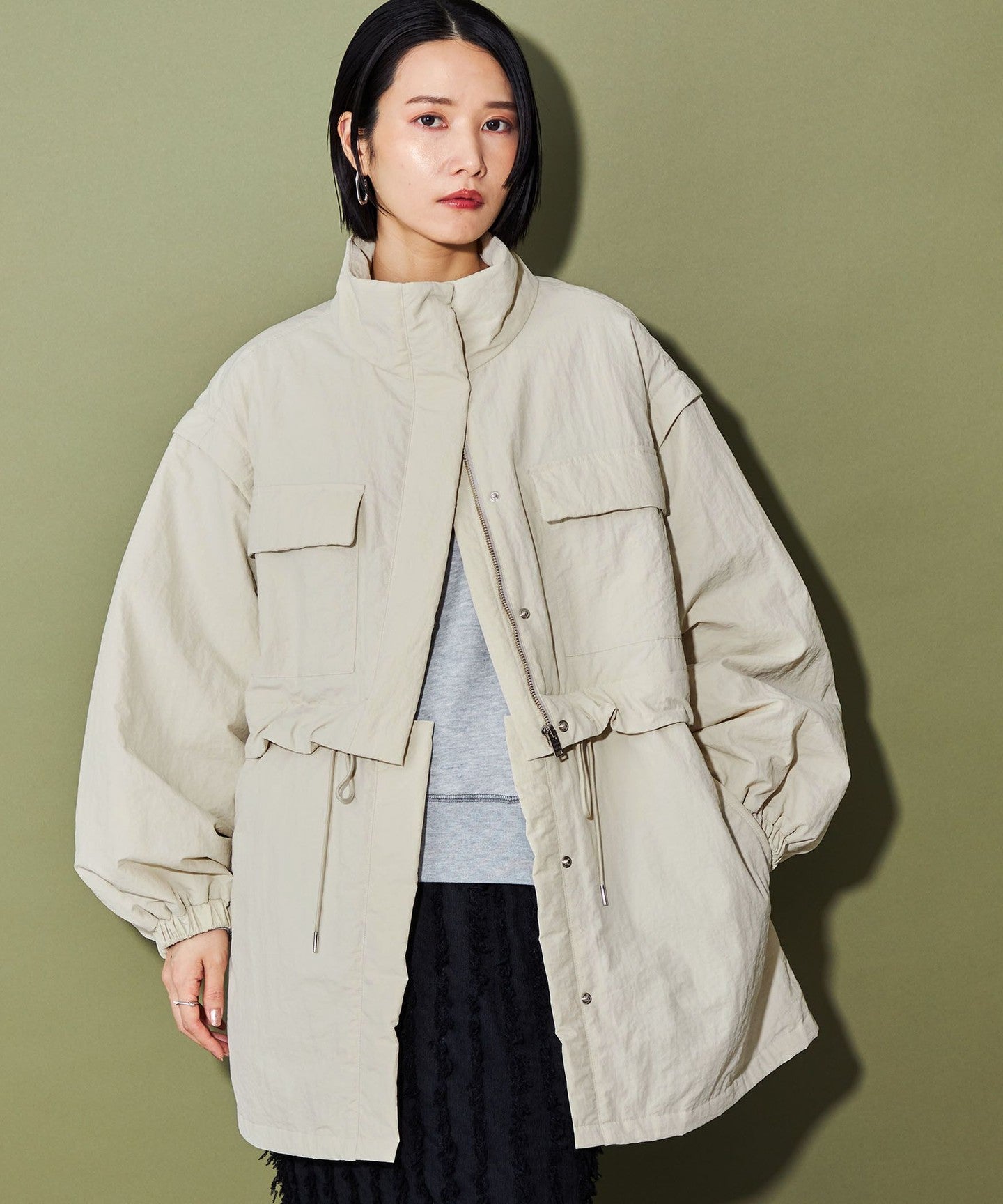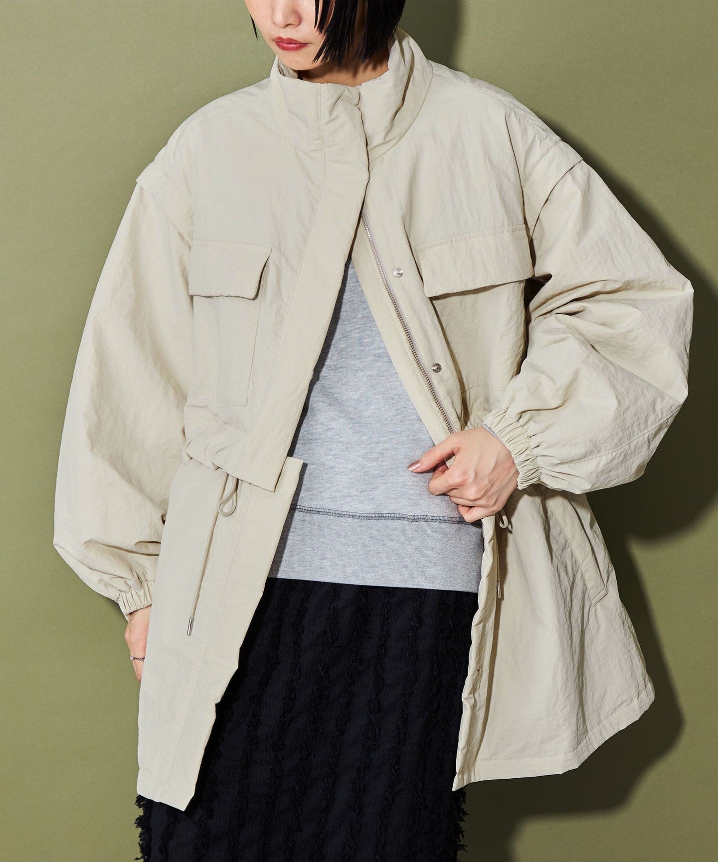This lightweight outerwear is filled with thin padding and is easy to put on, making it sure to be useful for a long season!