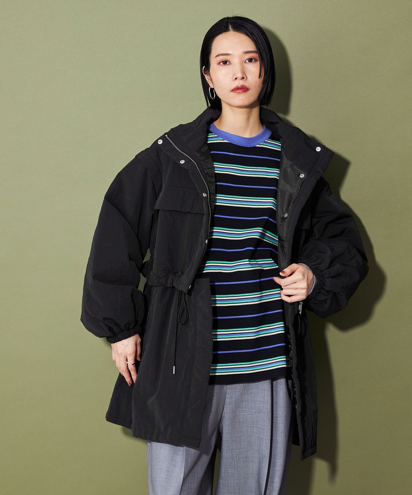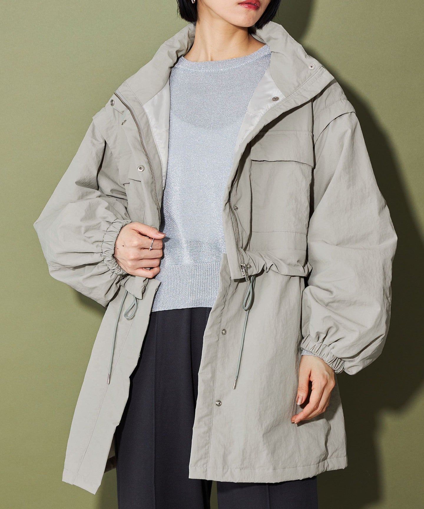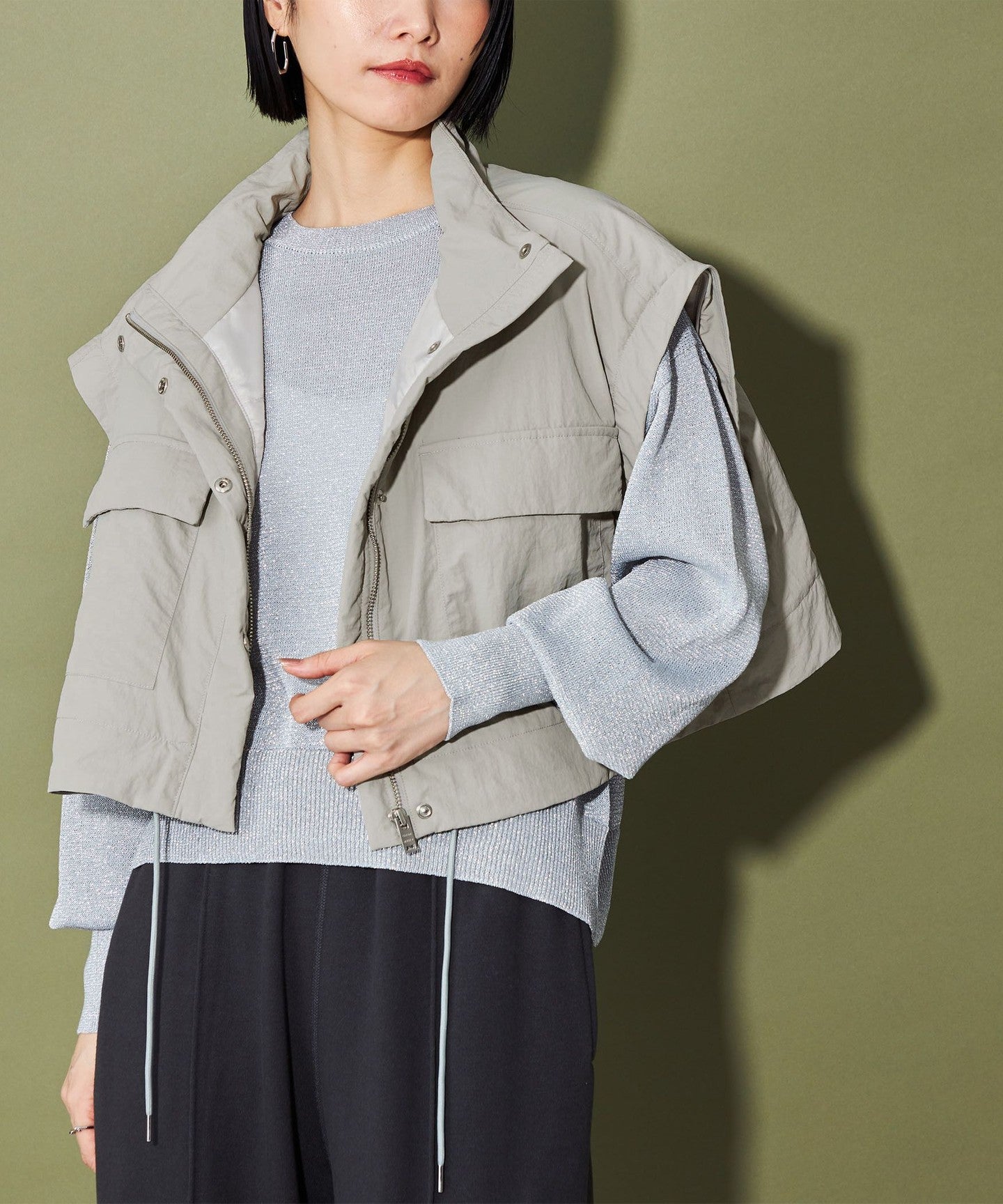 This lightweight outerwear is filled with thin padding and is easy to put on, making it sure to be useful for a long season!