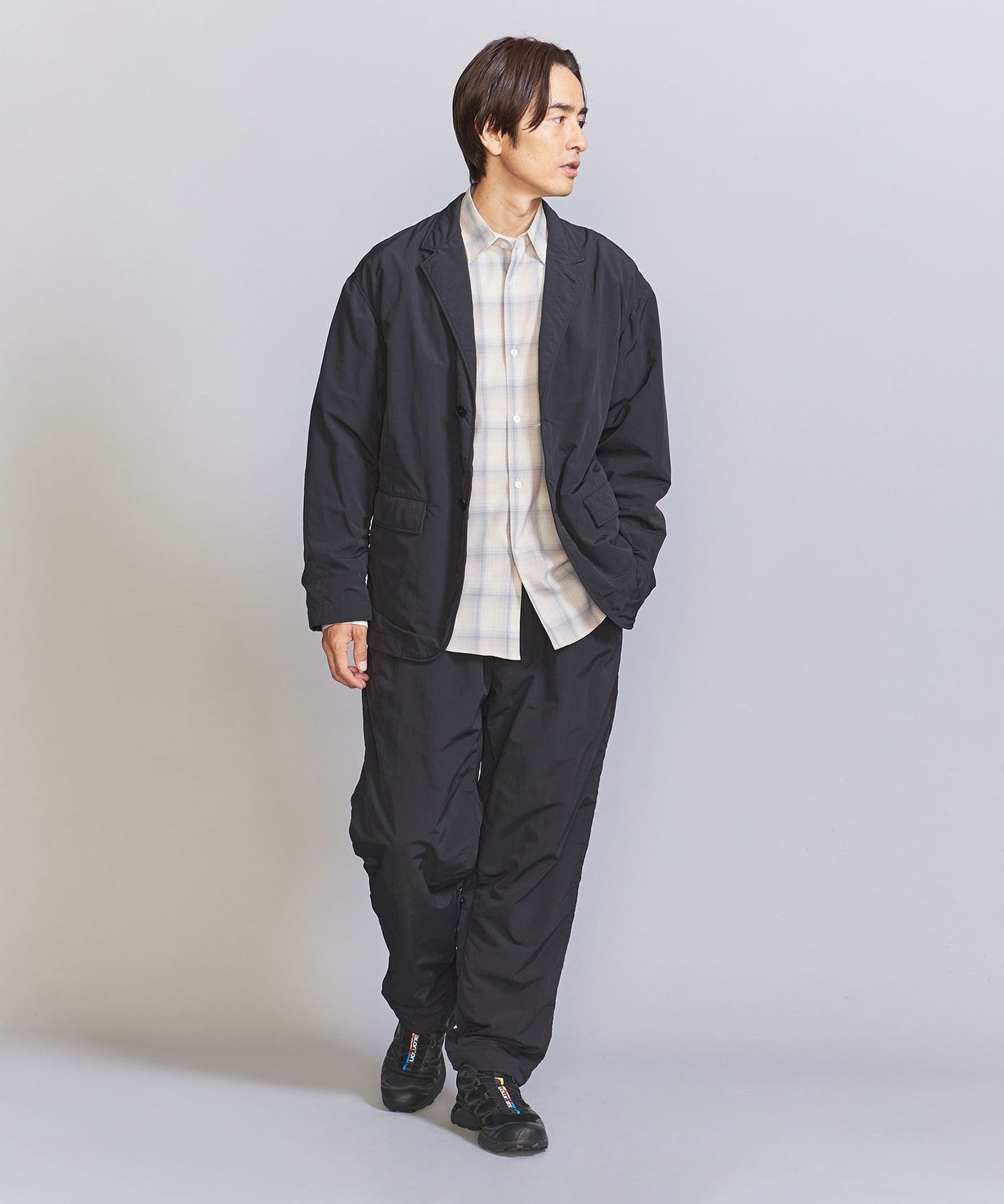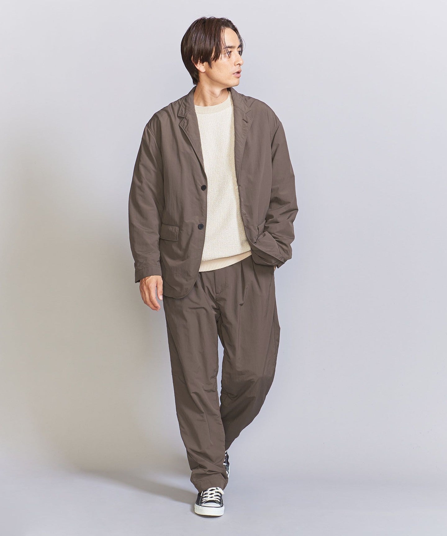 Keep it simpleSHIRT or KNIT It can be worn with a standard and orthodox style such as neat slacks and leather shoes, as well as with a hoodie, denim, or sweatshirt. PANTS A sporty mix that can be worn lightly with casual items such as sneakers. TIE I also recommend Lu.