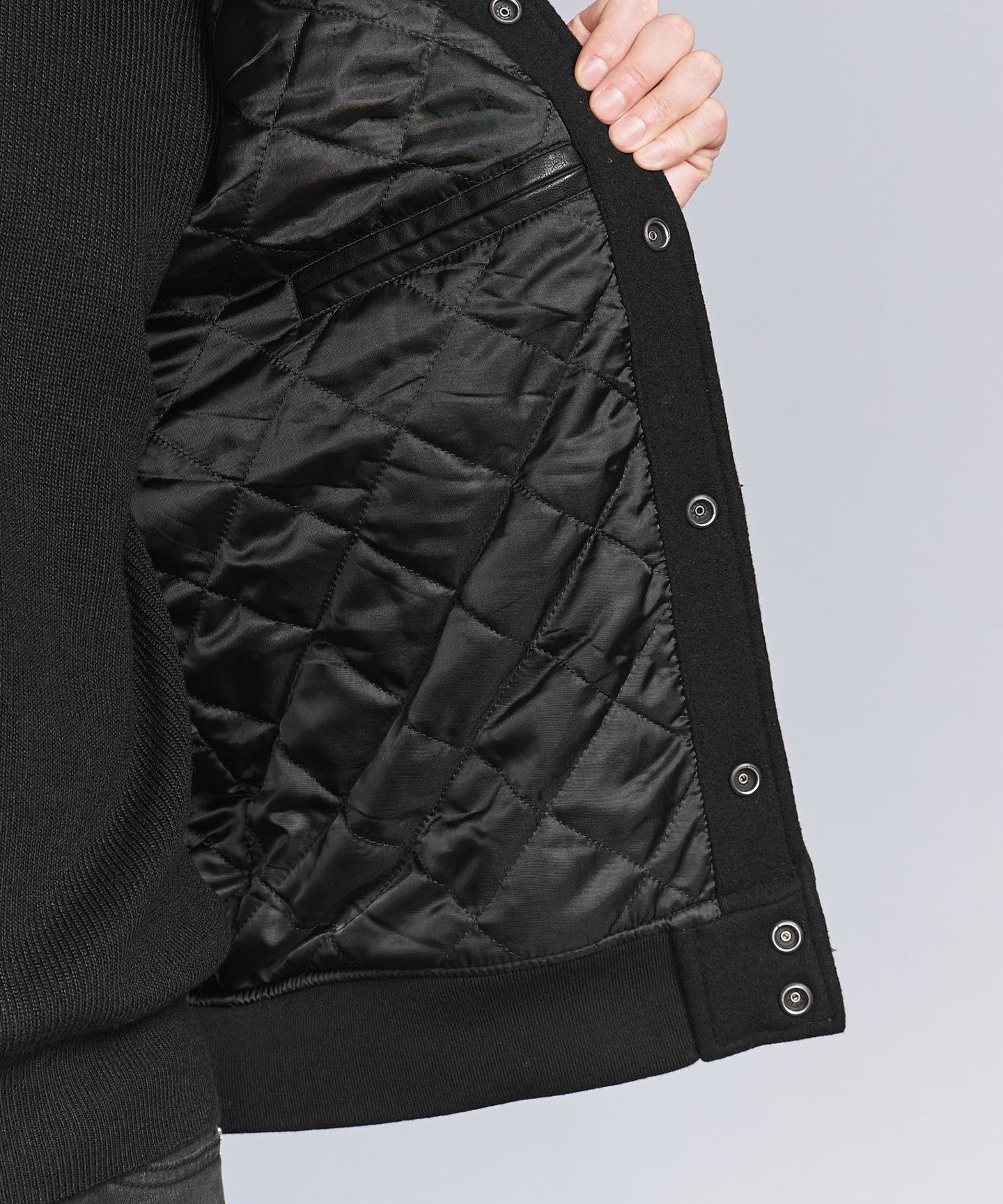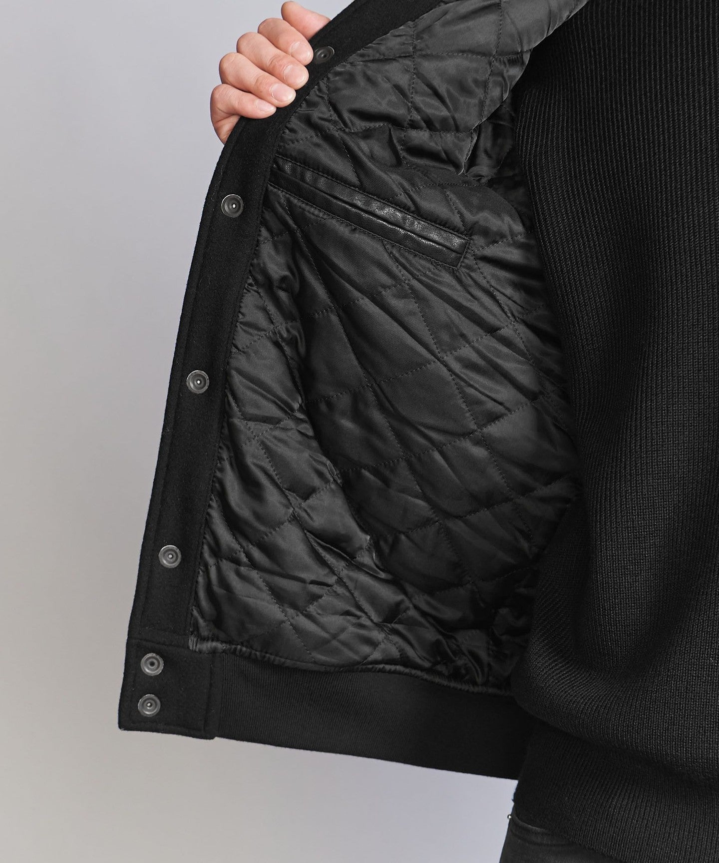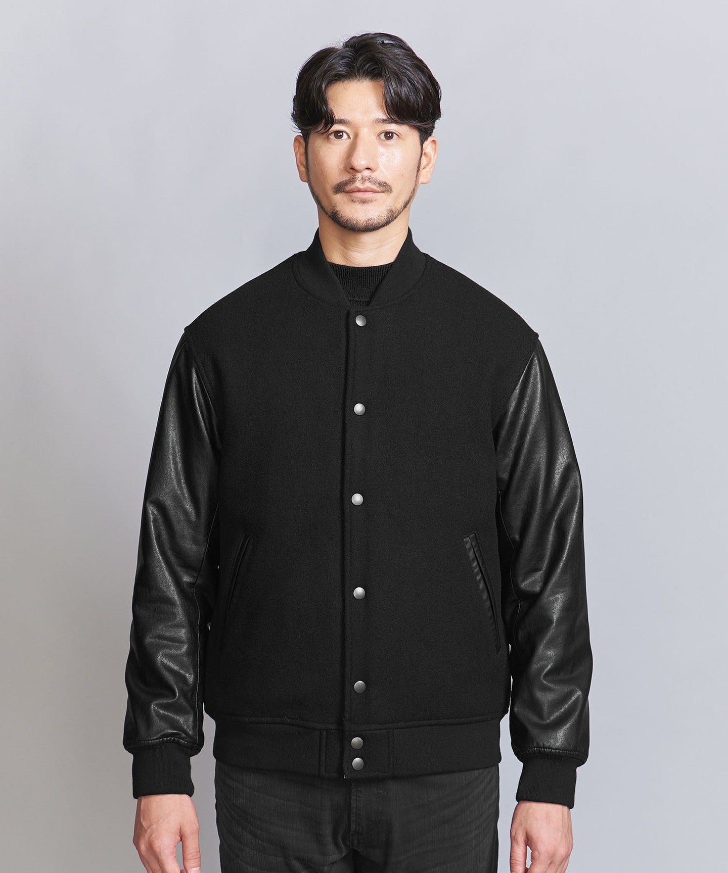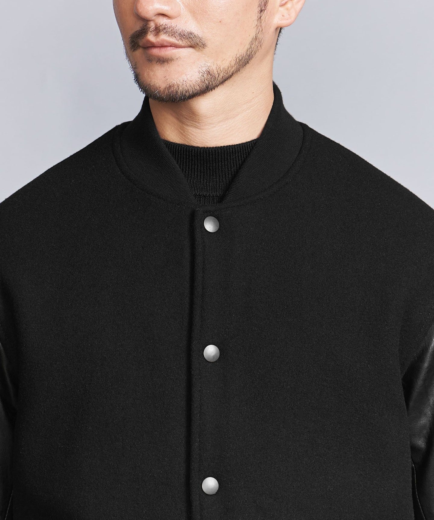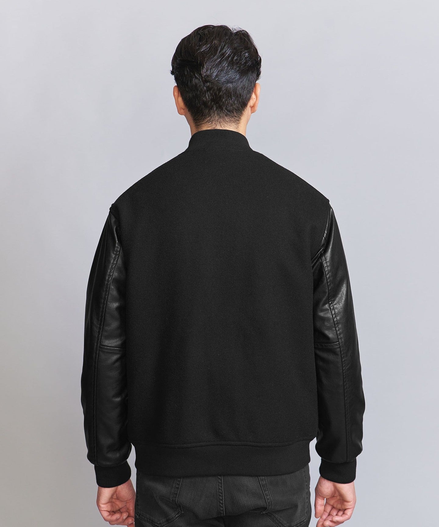 [WARDROBE SMART] Black Melton Leather-Like Stadium Jacket
