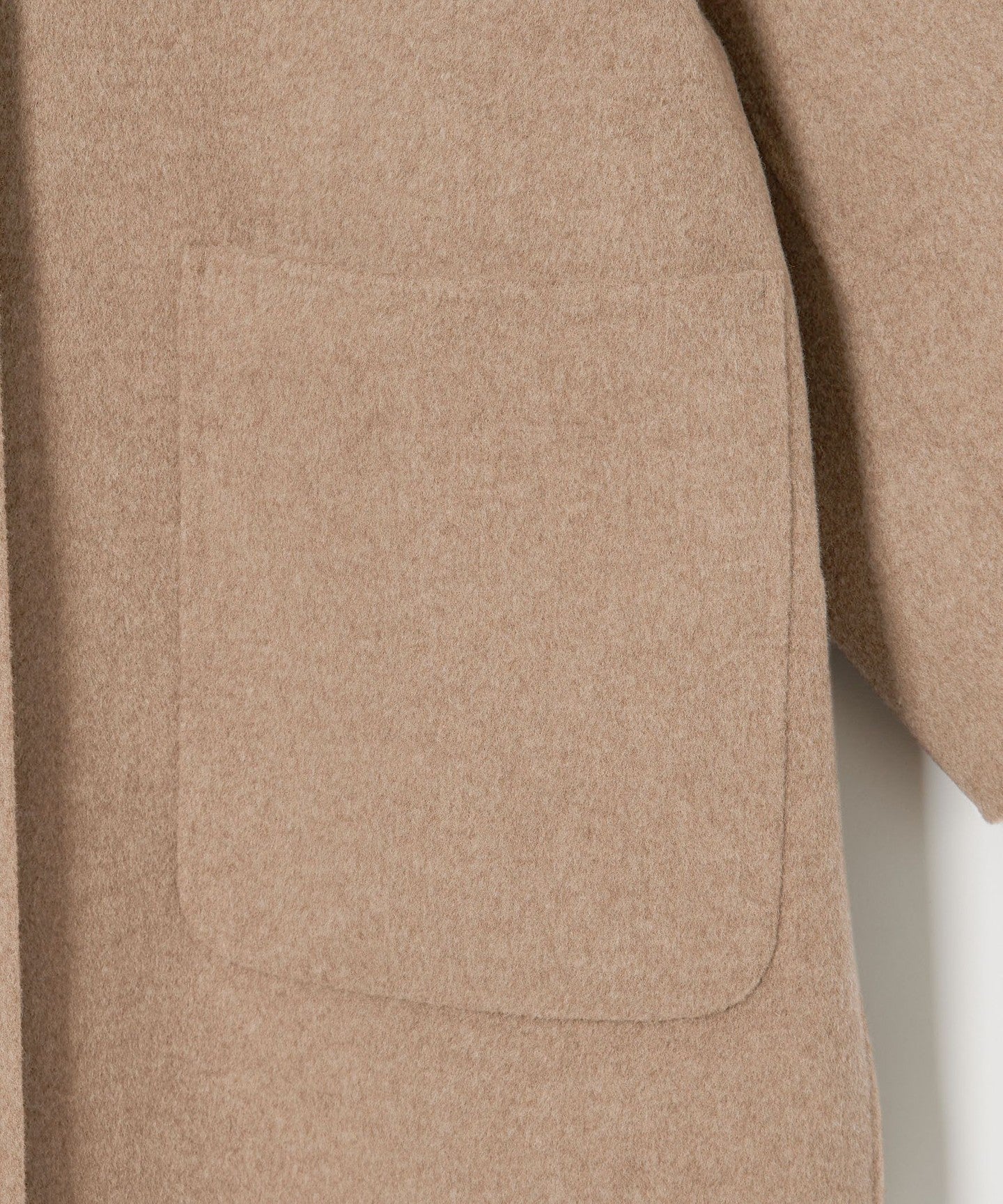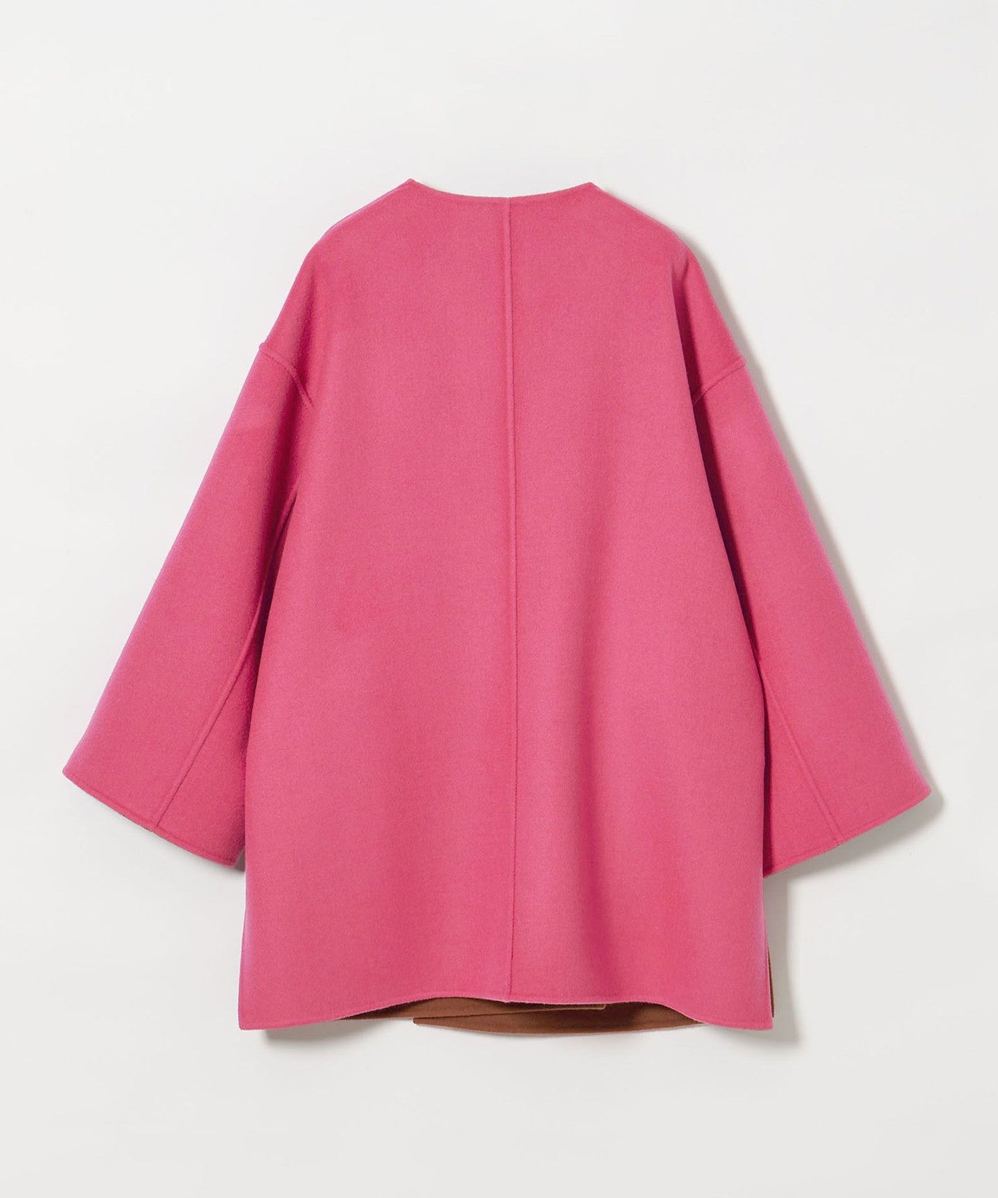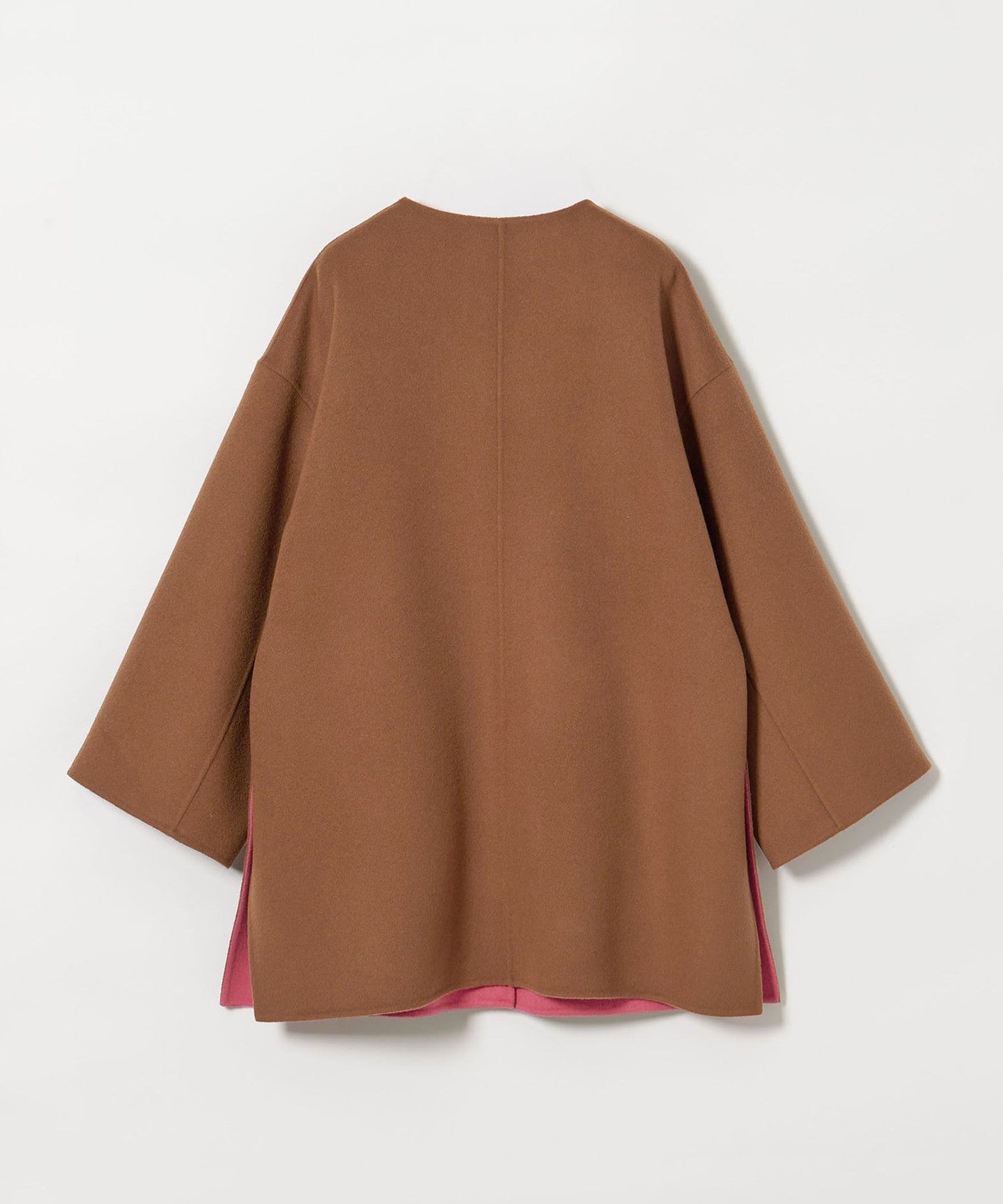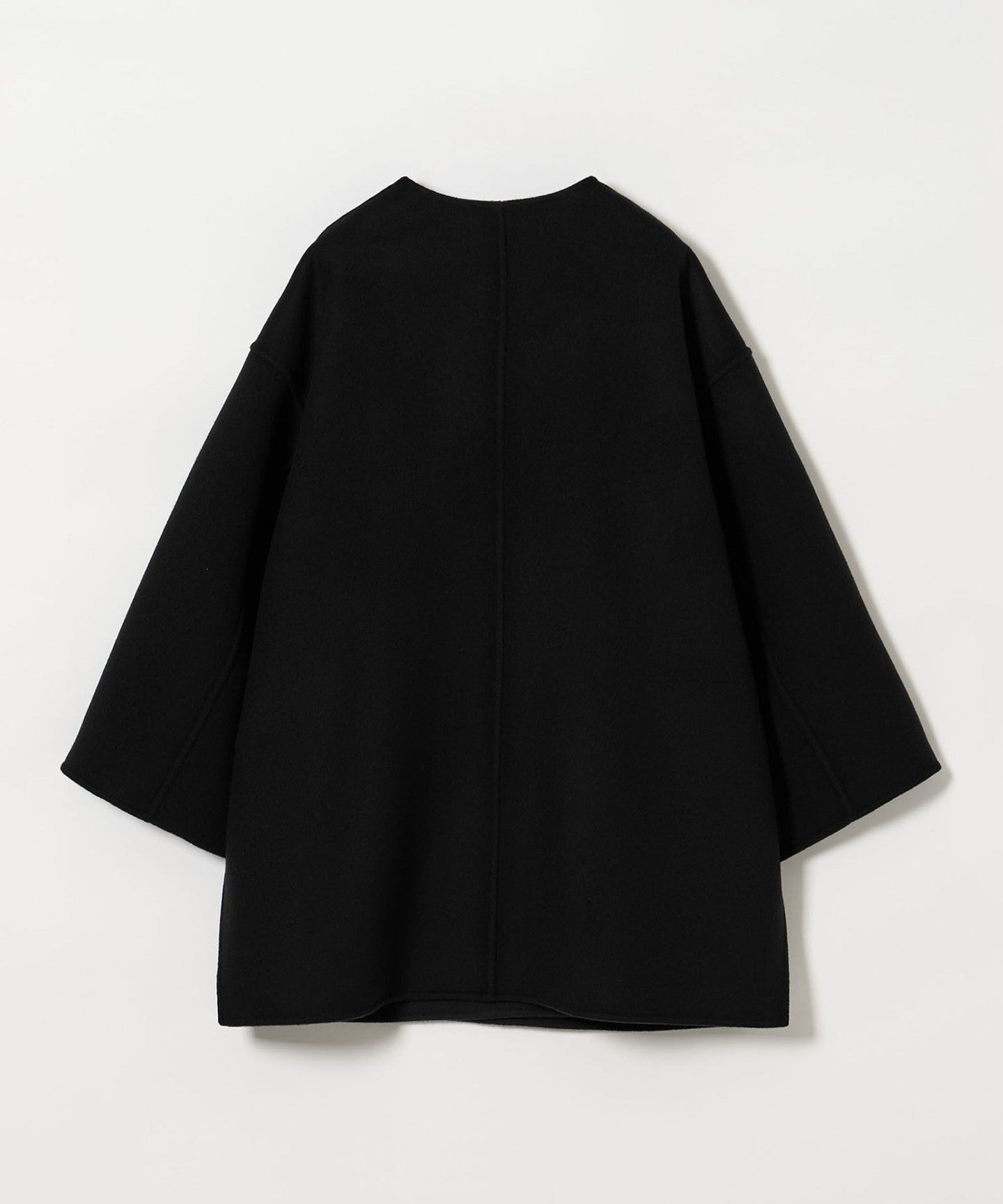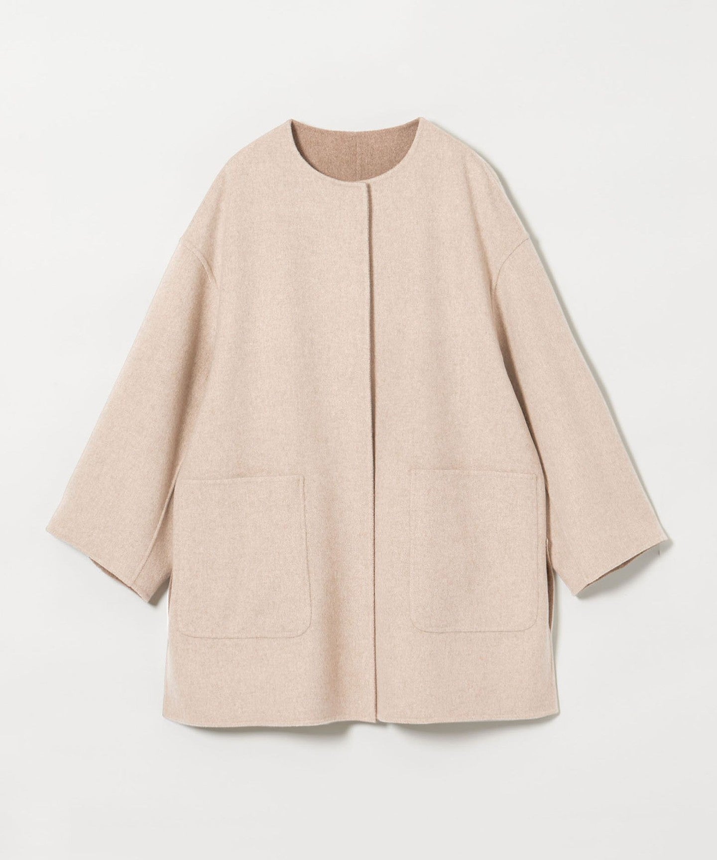 This collarless coat is as light as a scarf and has an attractive mid-length that makes it easy to wear early in the season.
