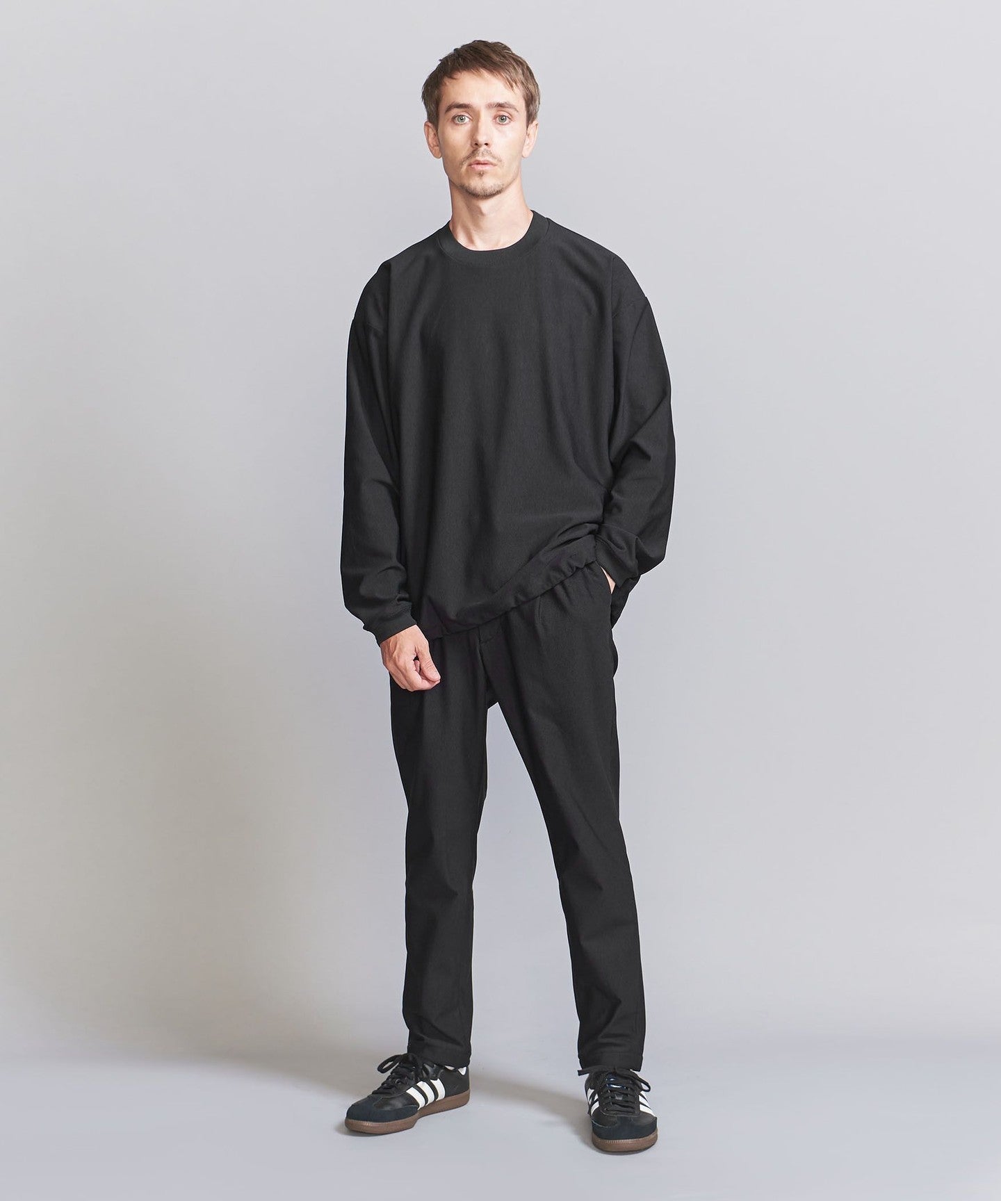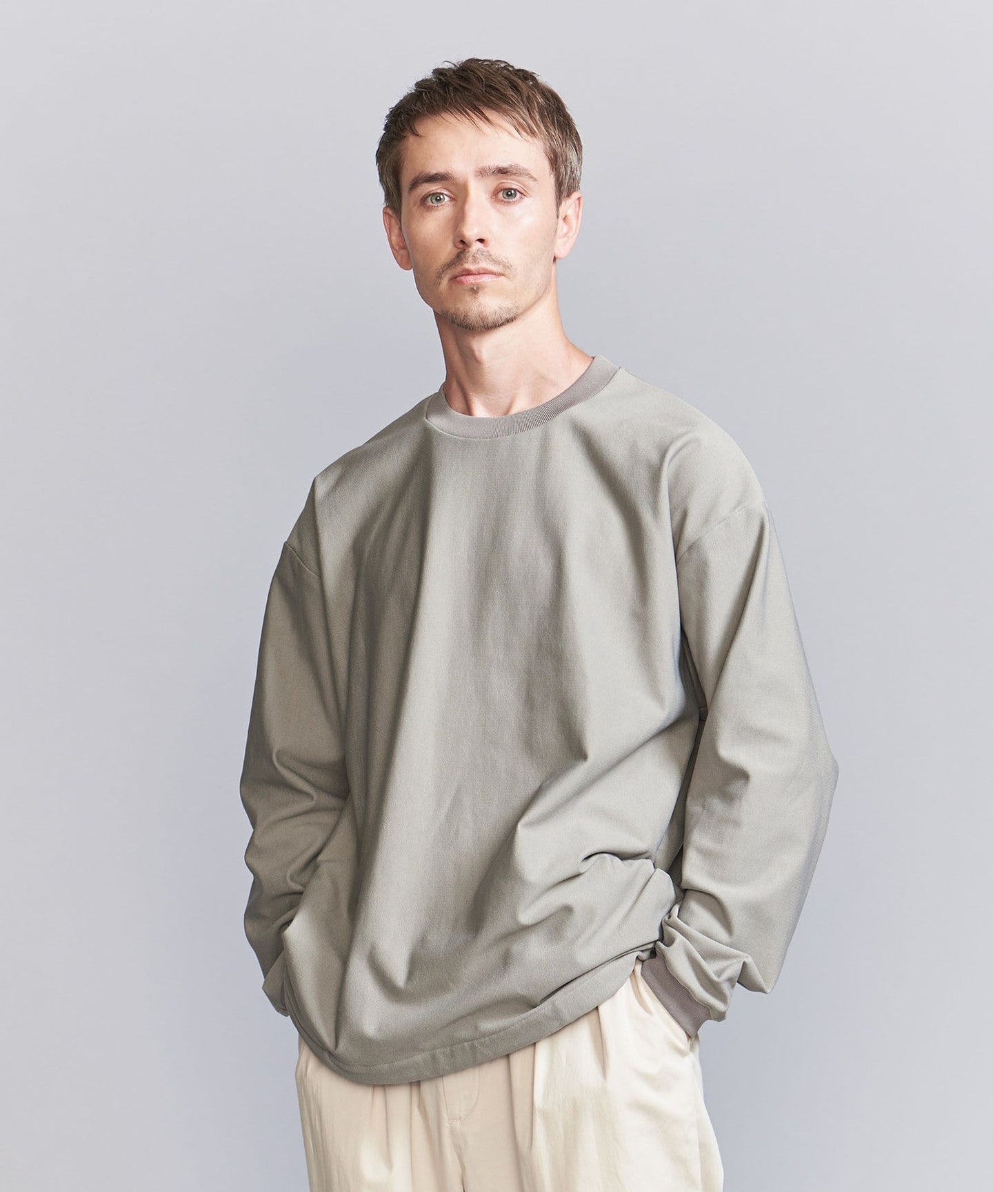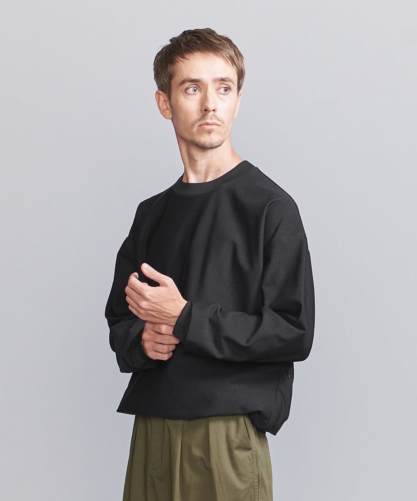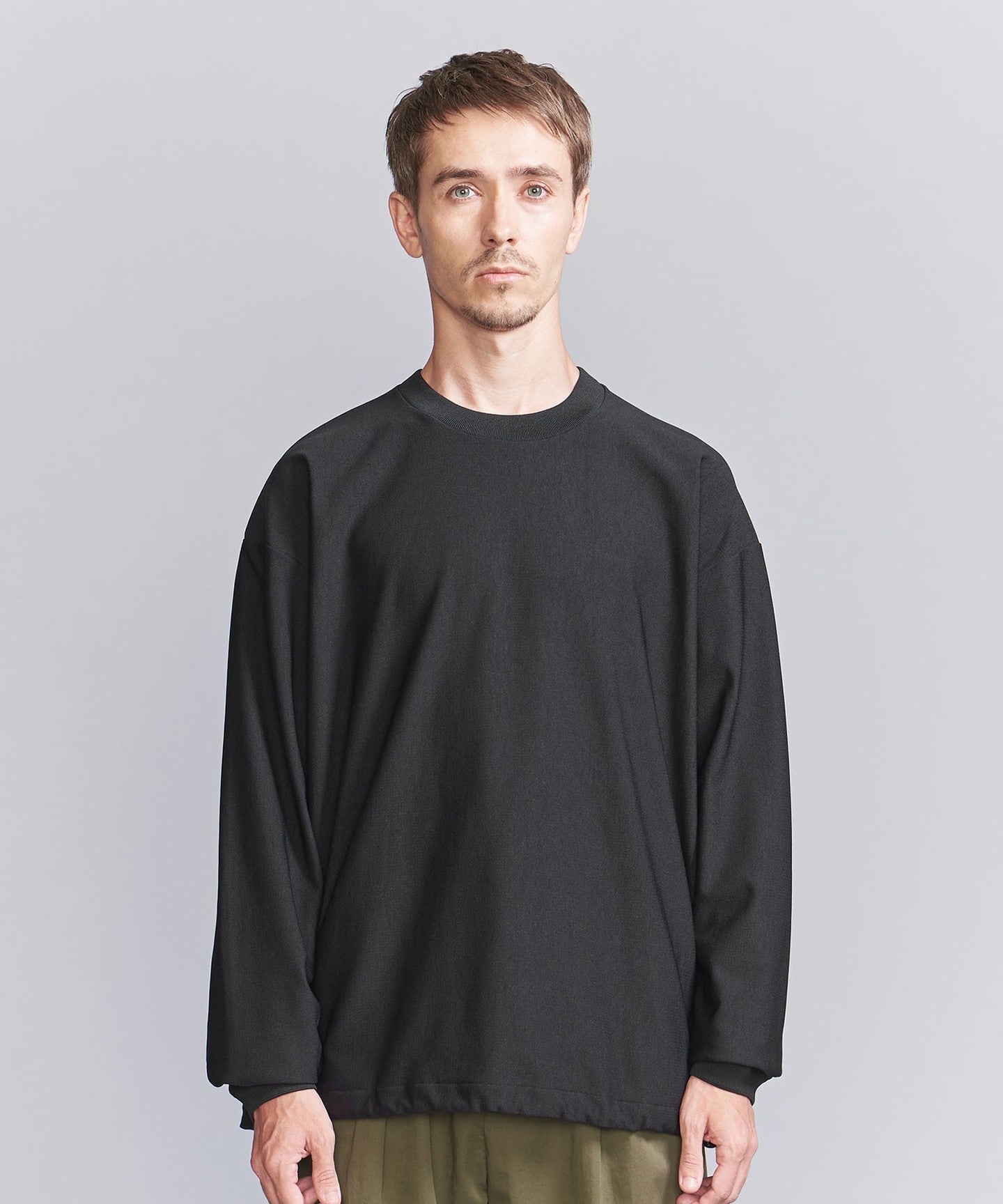 It can be worn with a straight silhouette like a T-shirt, or by tightening the hem it can be worn with a rounded silhouette like a sweatshirt.