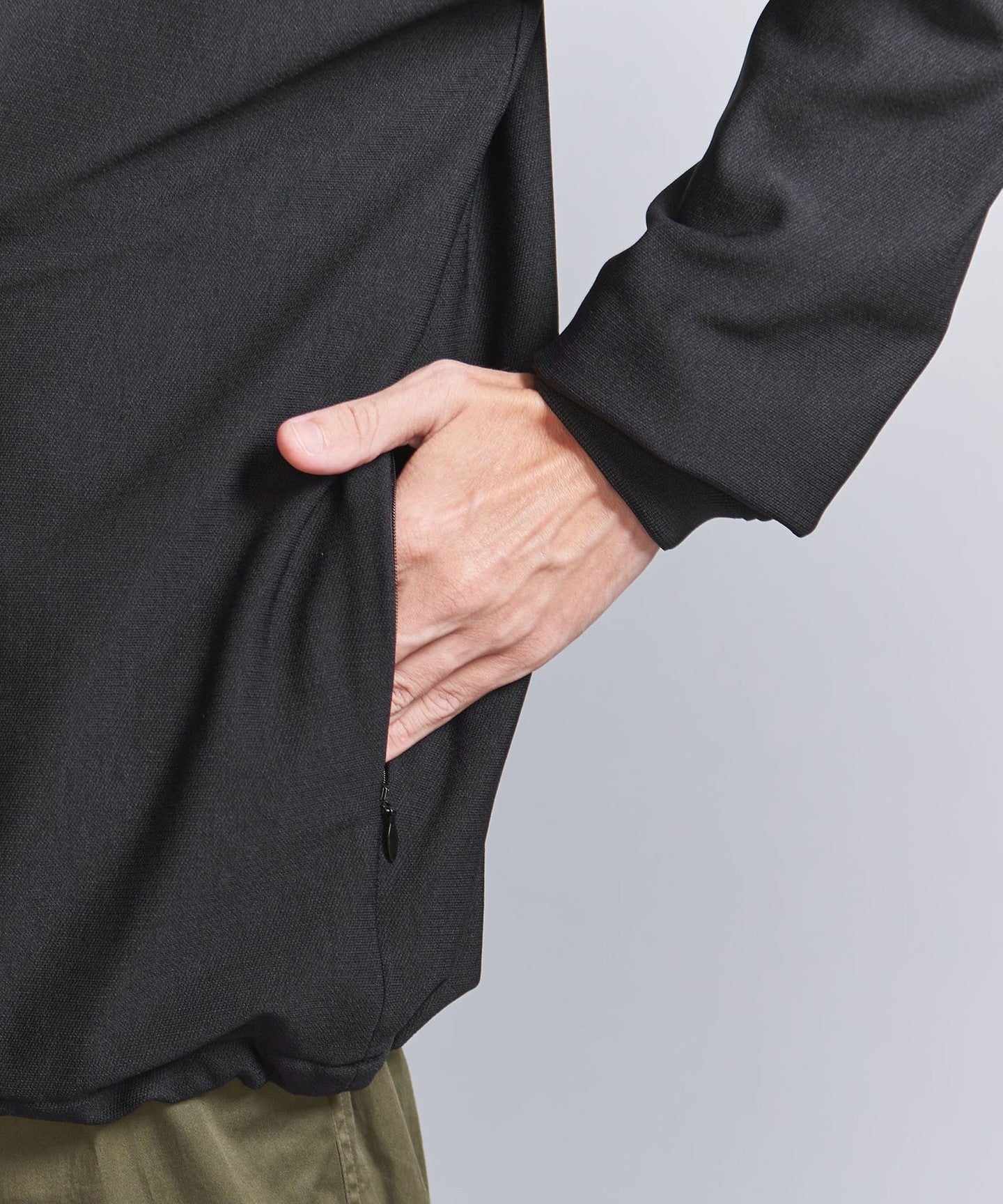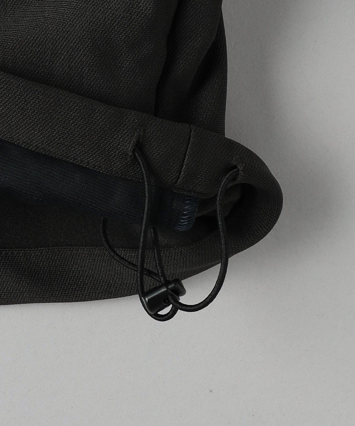 This top is equipped with stretch spindles and stoppers around the hem, allowing you to change the silhouette by tightening it.