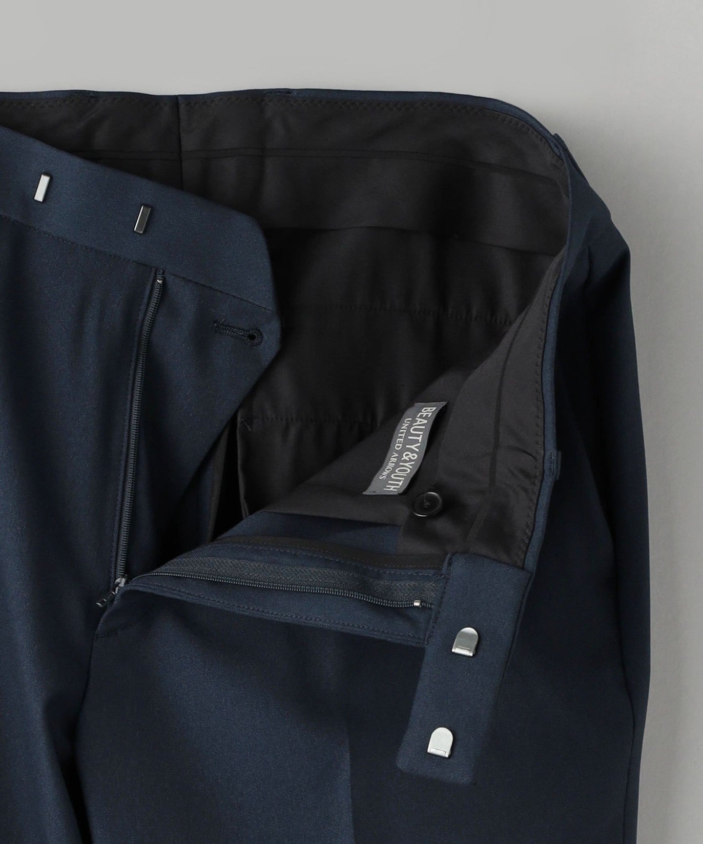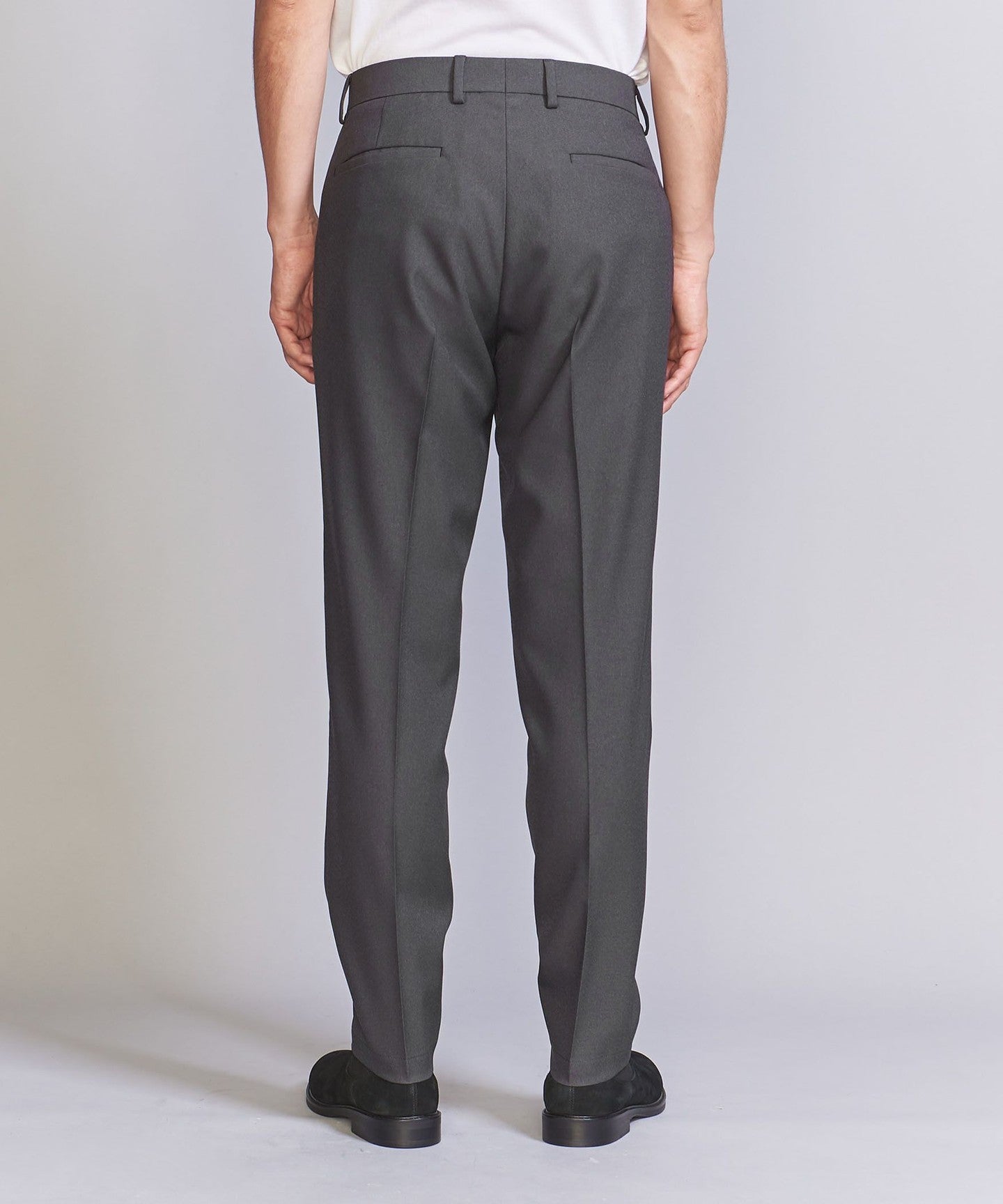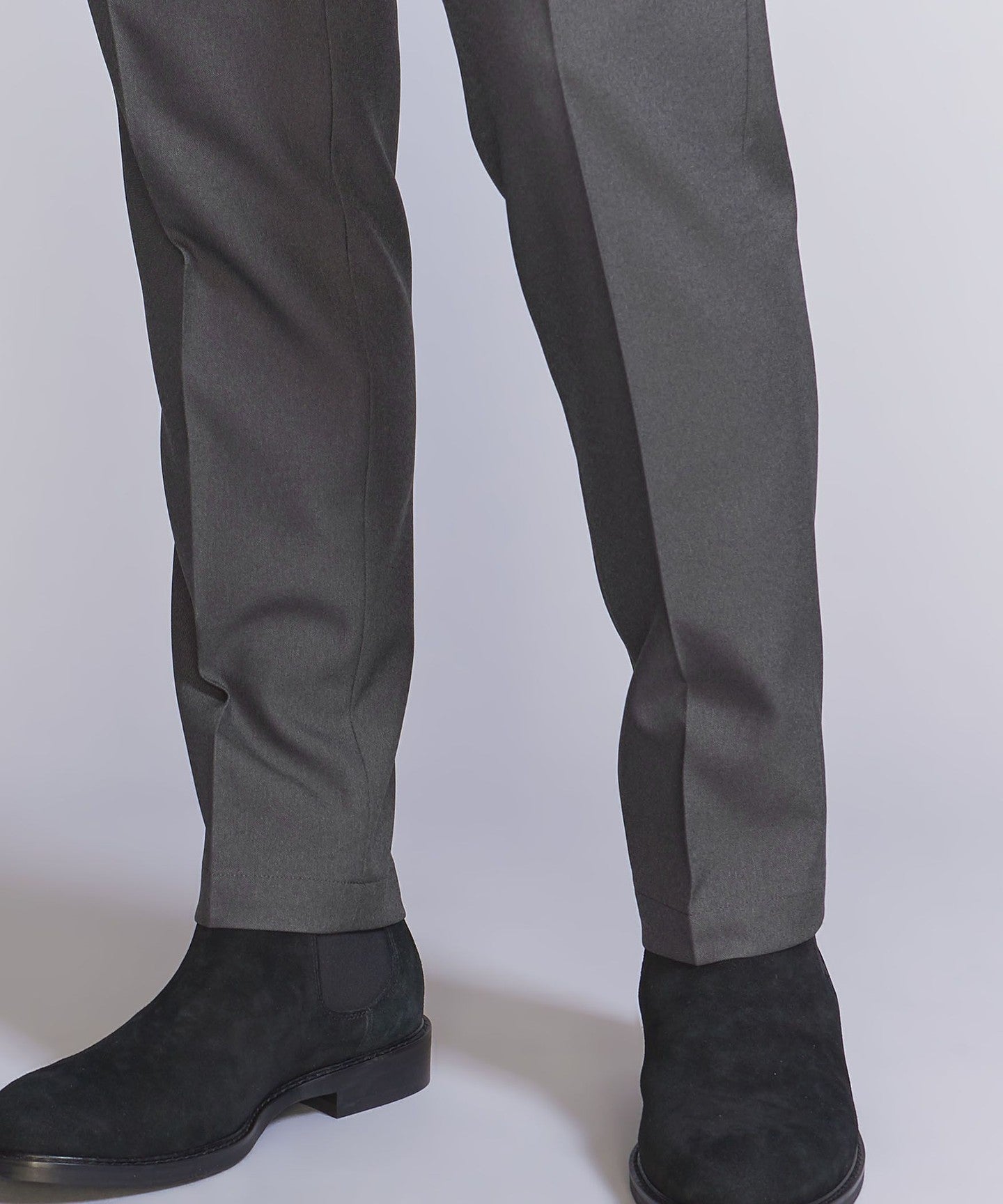 These are simple, basic no-pleat slacks that are not affected by trends.