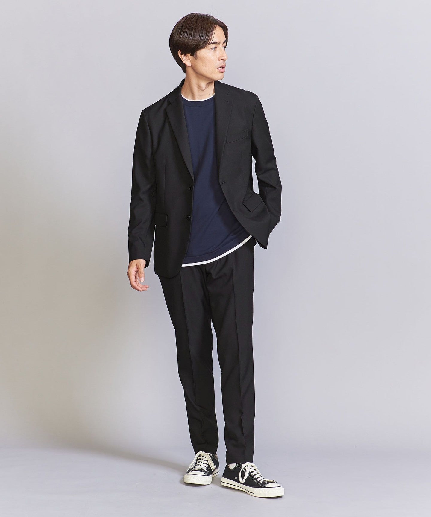 In addition to leather shoes, light and casual sneakers also go well with this outfit.