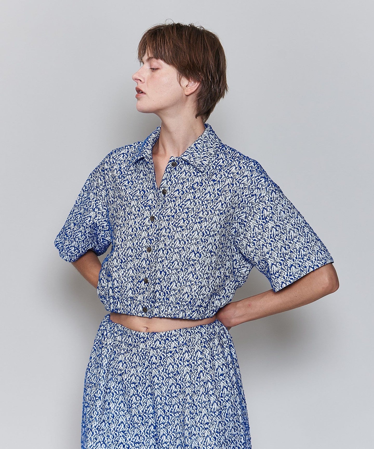 <6(ROKU)>Jacquard Short Sleeve Shirt