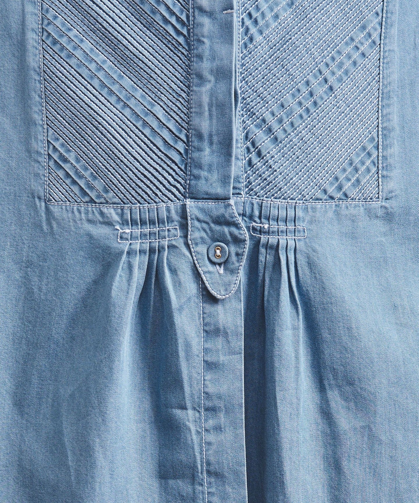 Made from lightweight 5 oz denim, it has been washed to a lighter color.