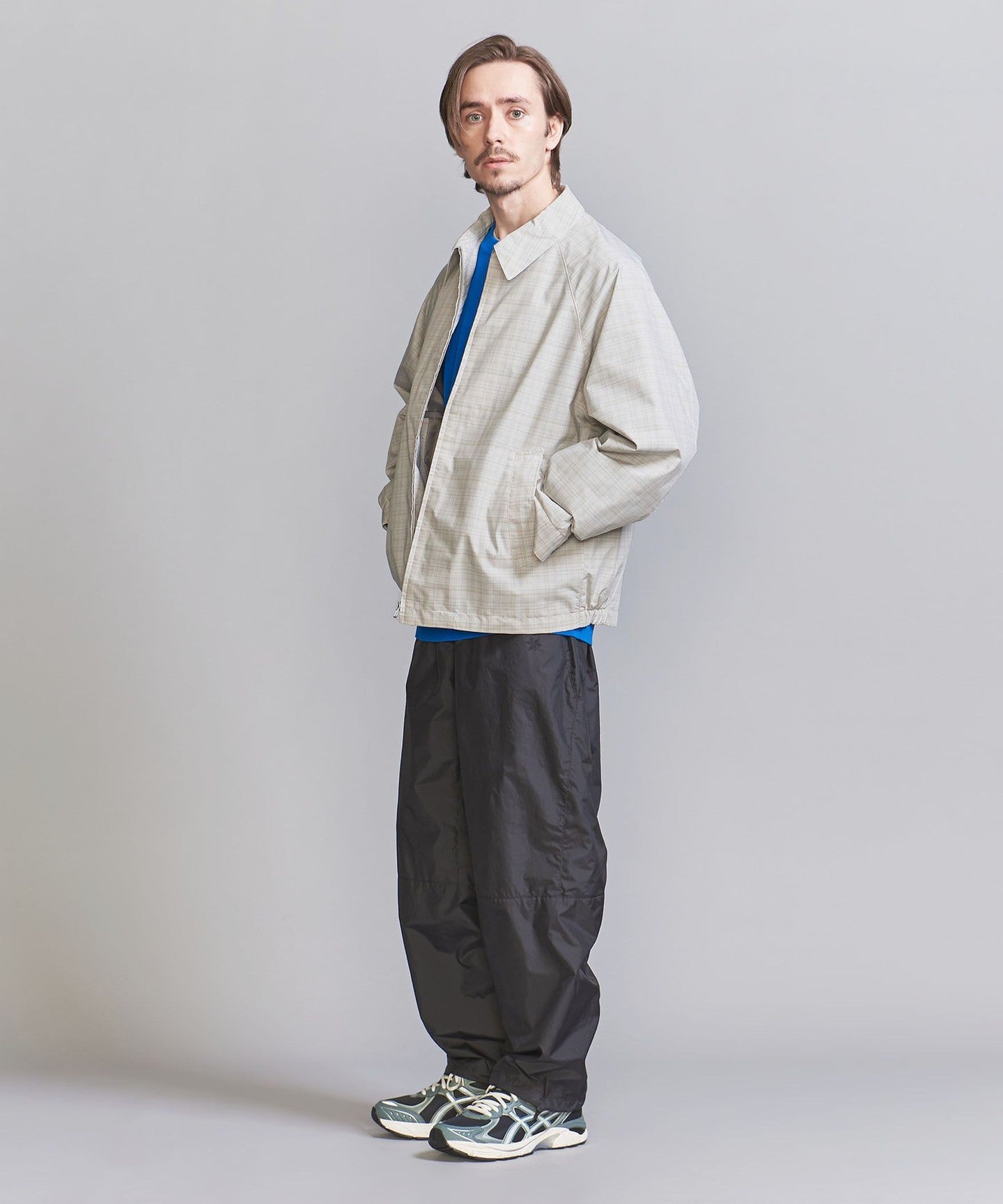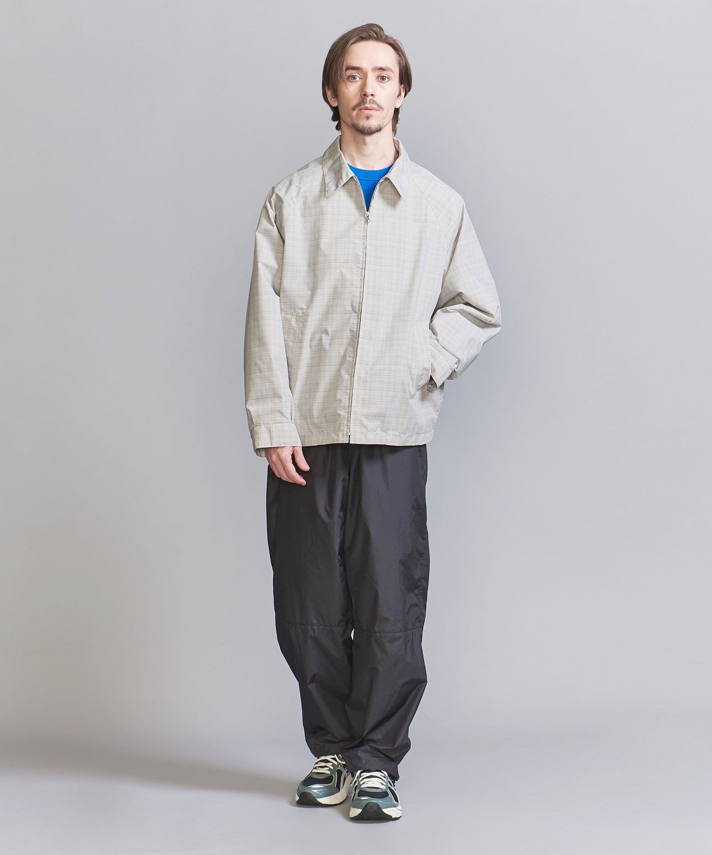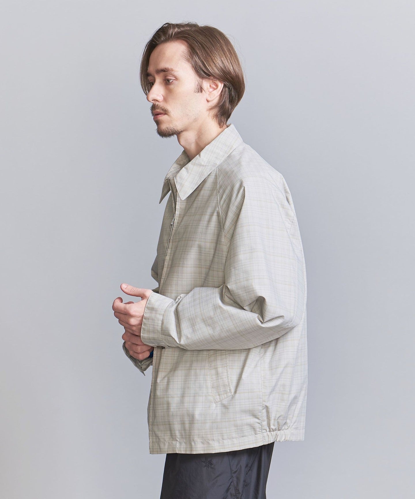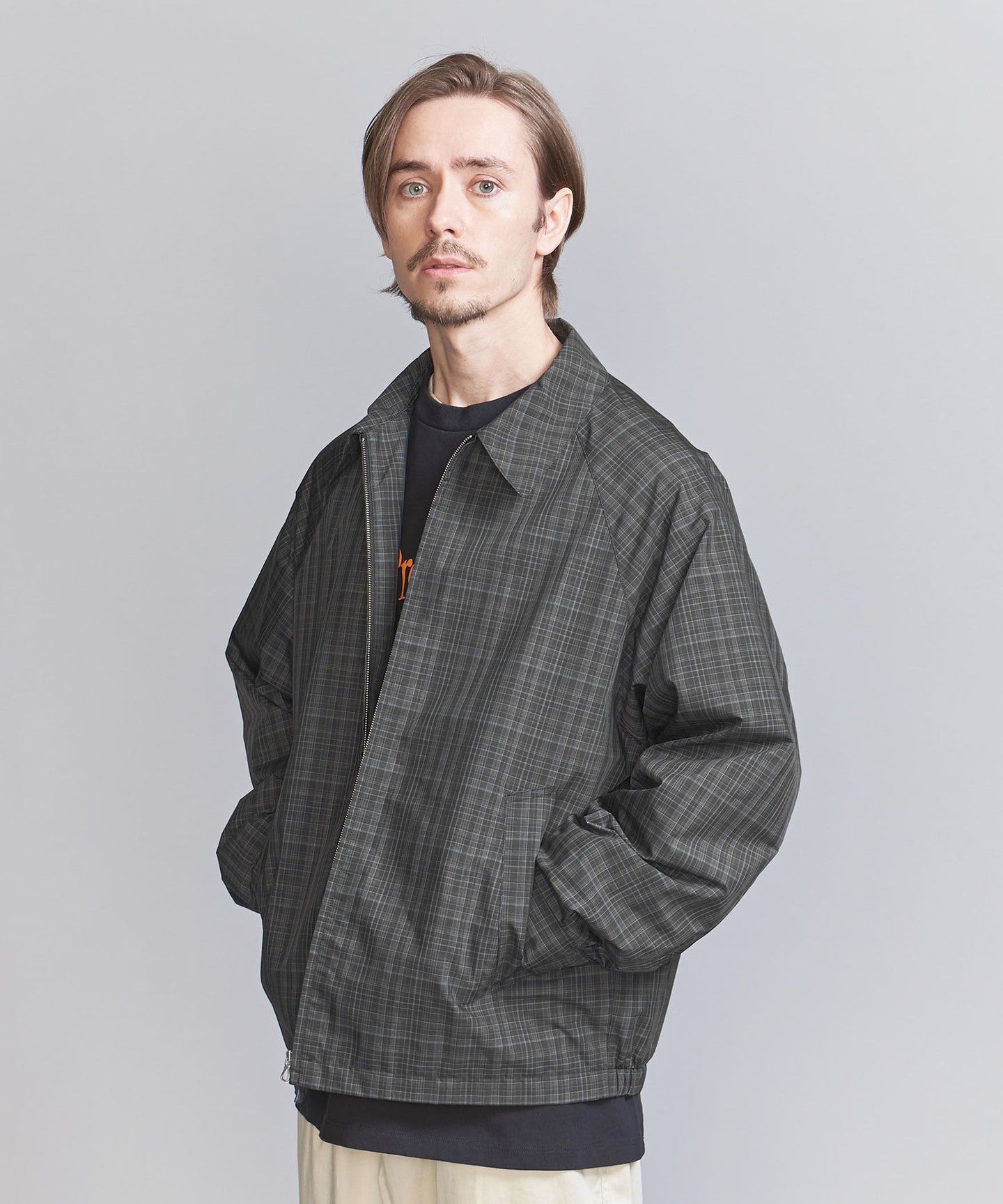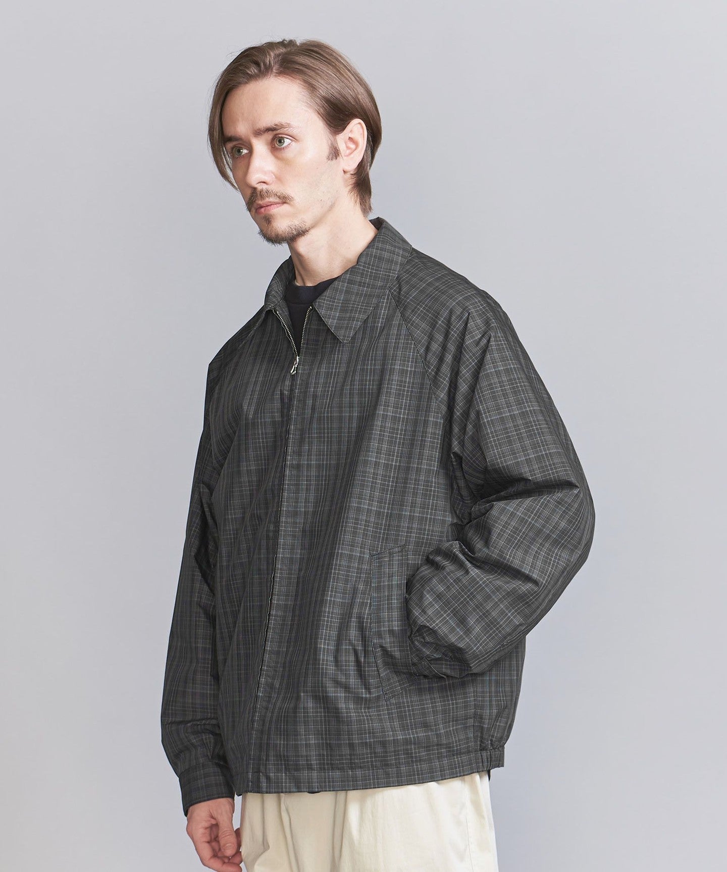 A traditional Harrington jacket made with a subdued check pattern.