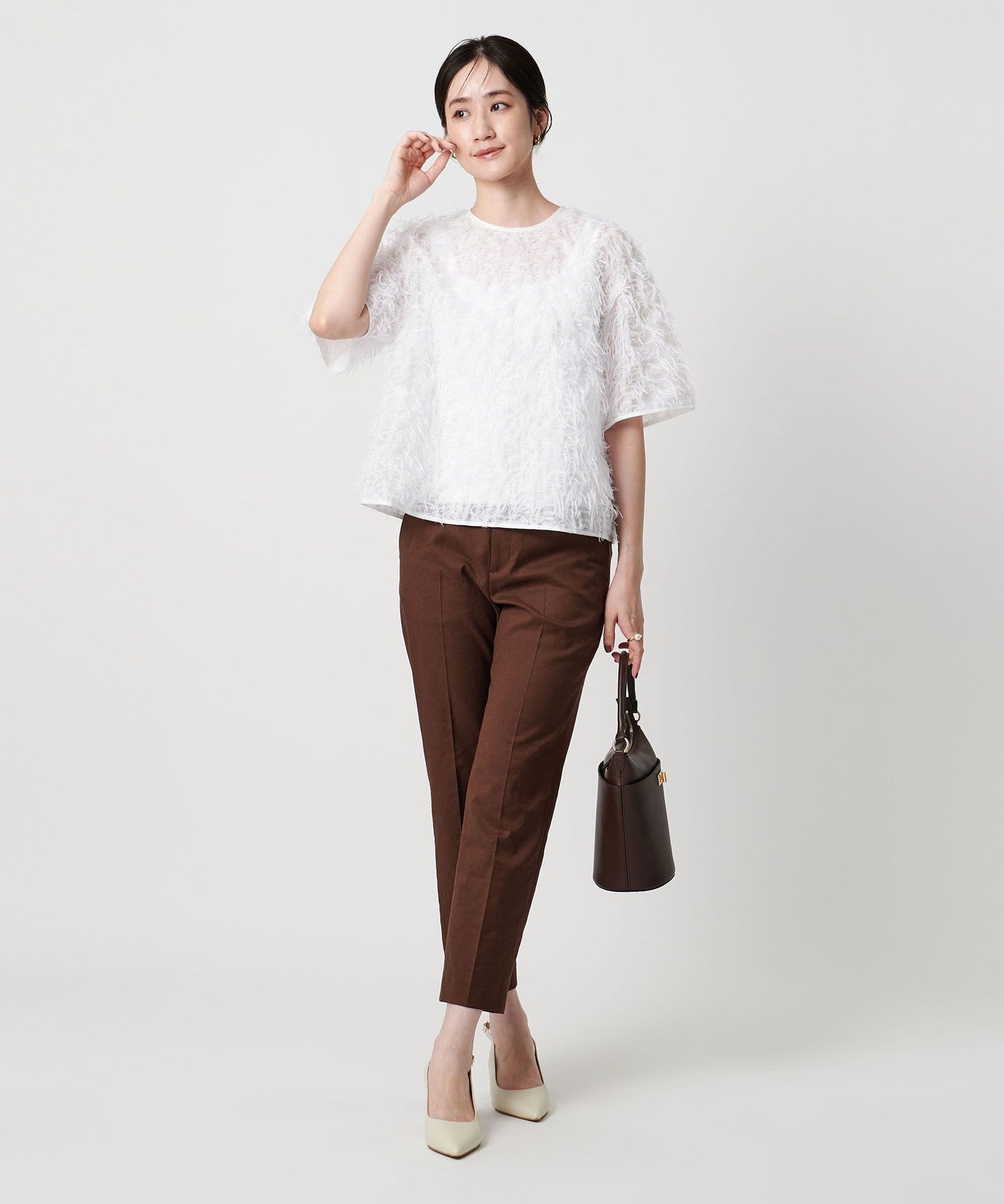 When worn as an inner layer under a jacket, the texture of the material stands out, creating a glamorous and elegant look.