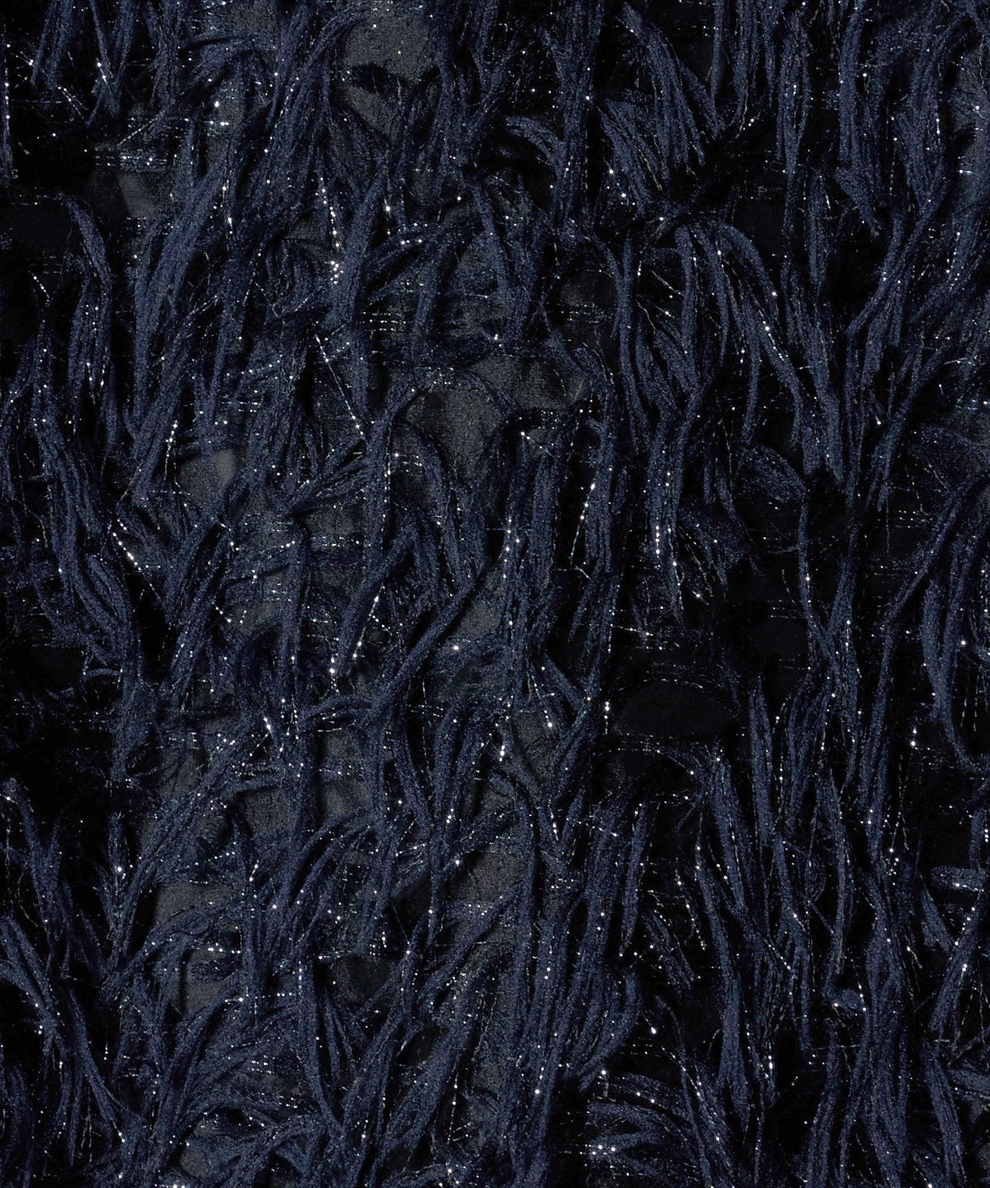 A wide layer of woolly polyester in several colors is woven onto a sheer base and carefully cut.
