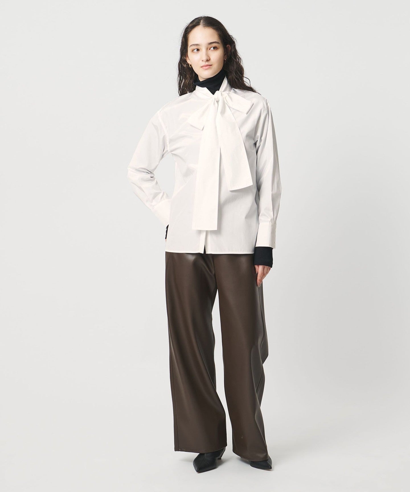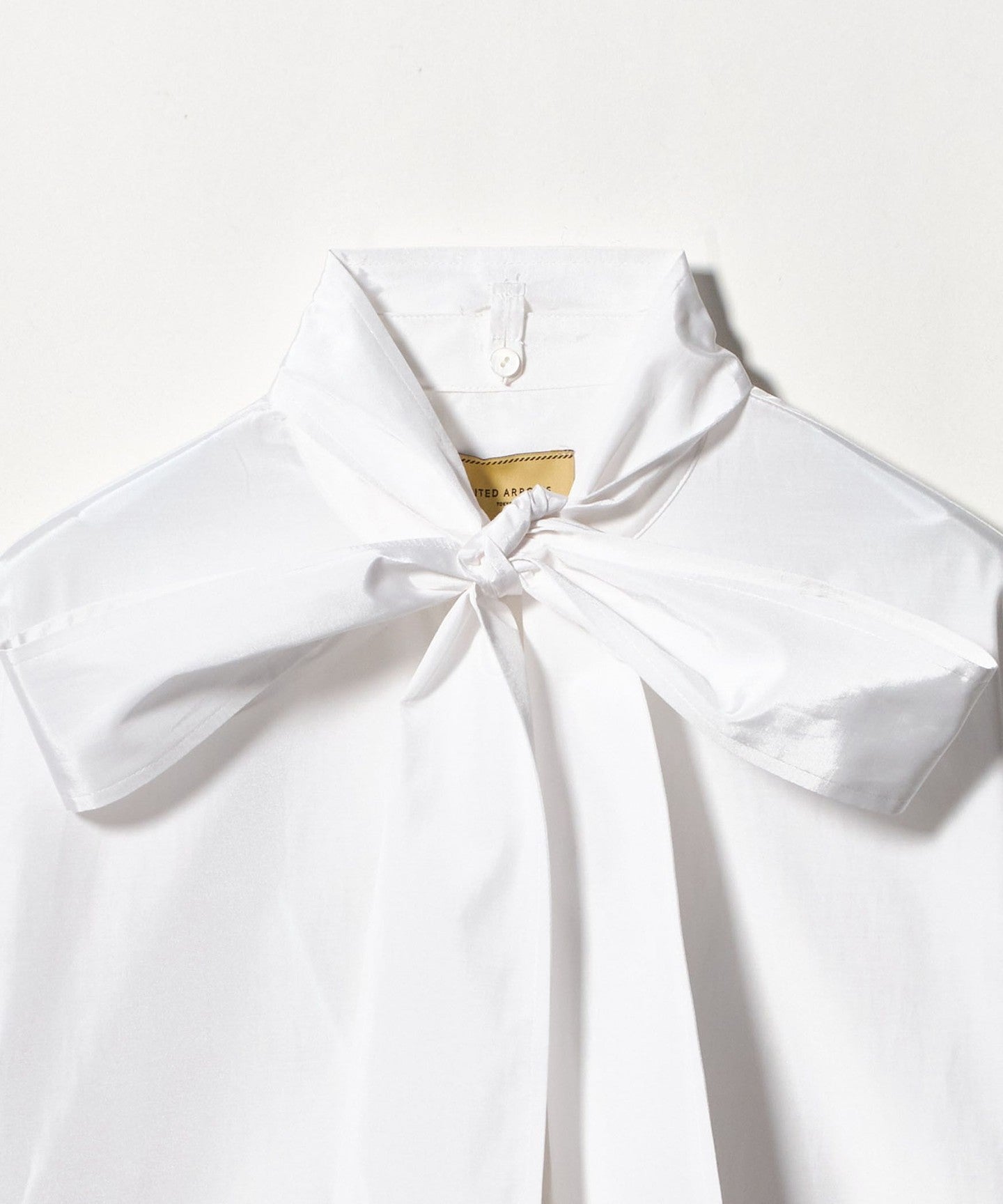 ステッチワークがポイントのボウタイブラウス。