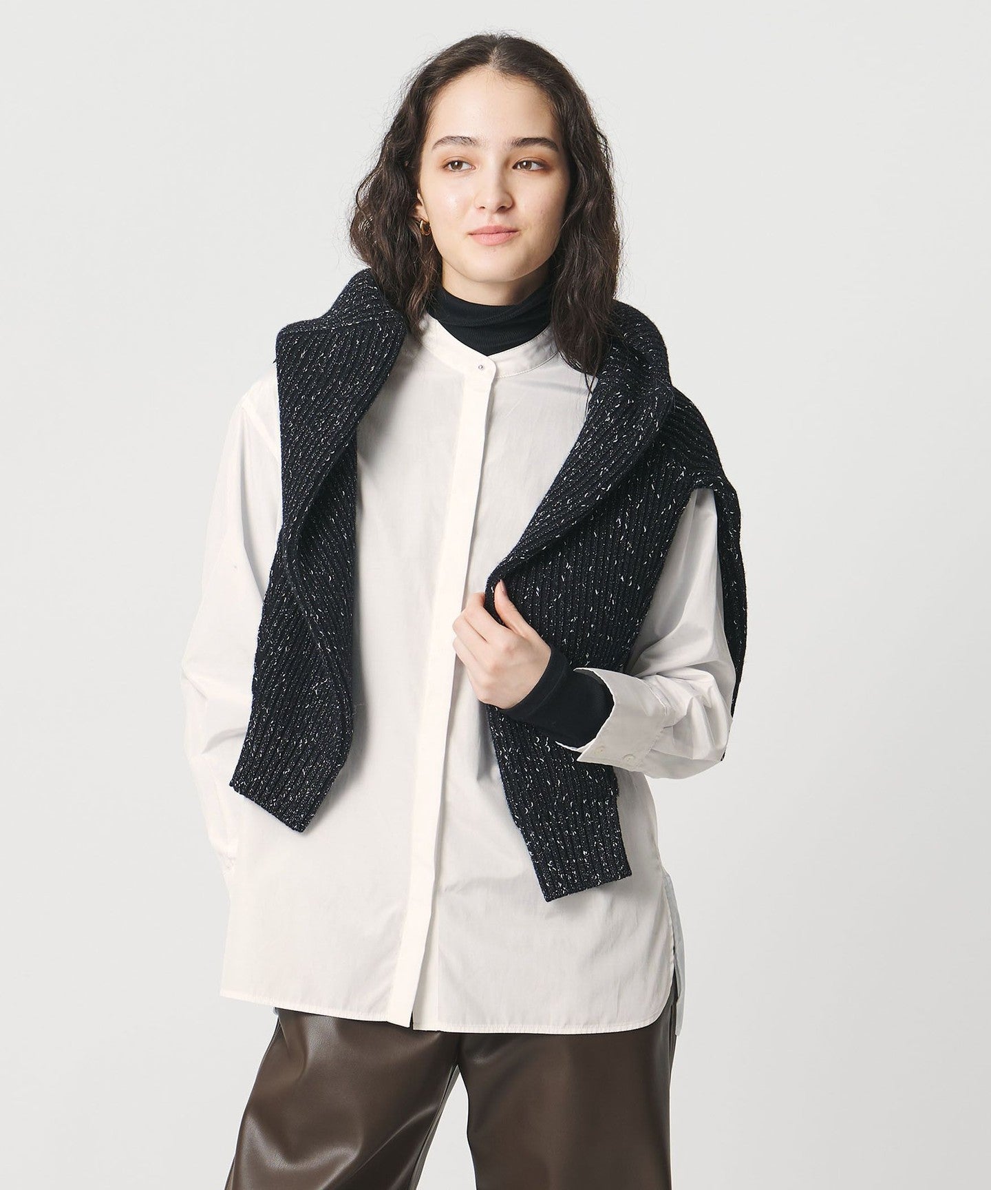 1枚着はもちろん、ジャケットのインナーとして合わせてオフィススタイルにも。