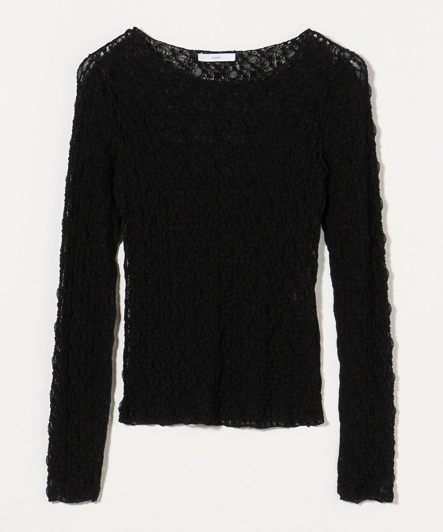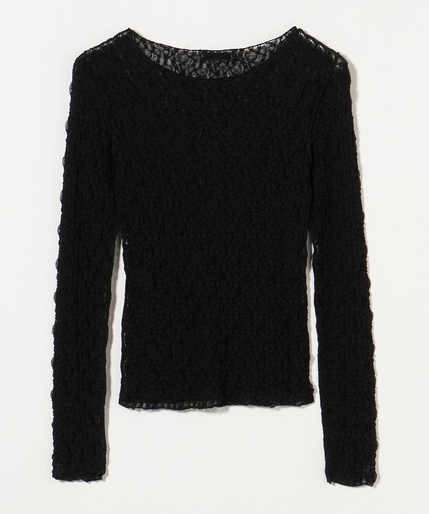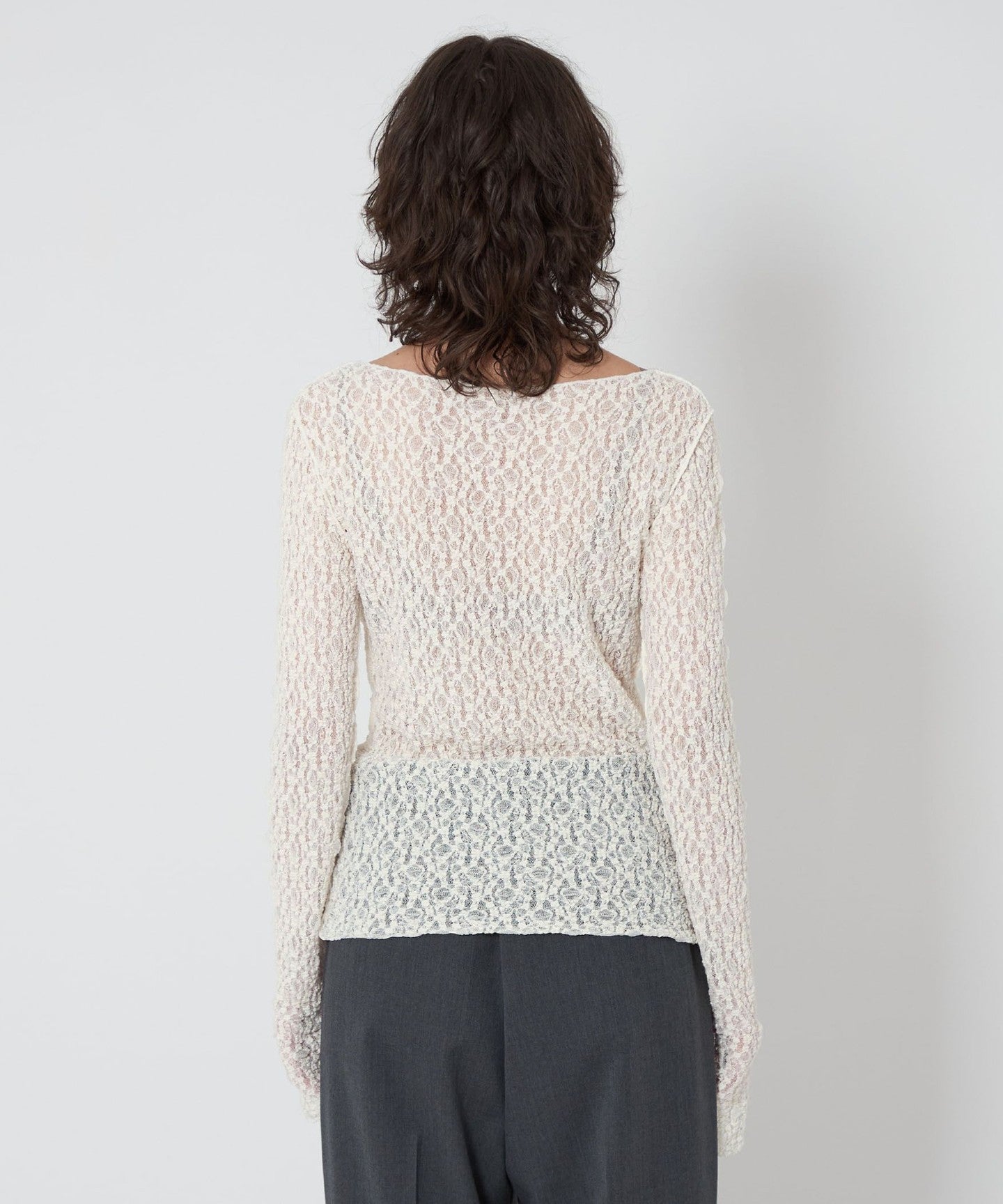 A long-sleeved cut-and-sew top with a gorgeous sheer lace look.