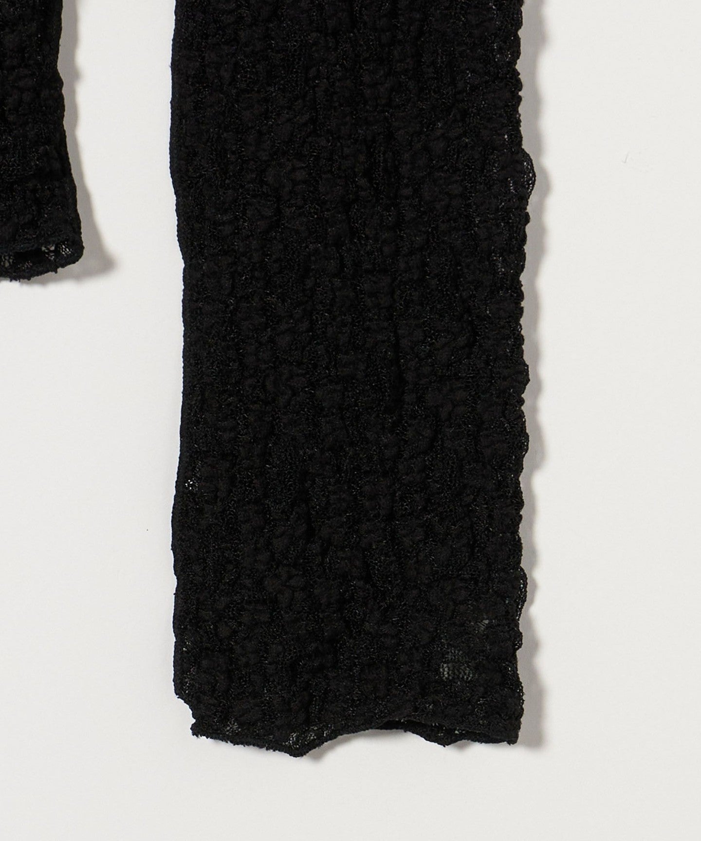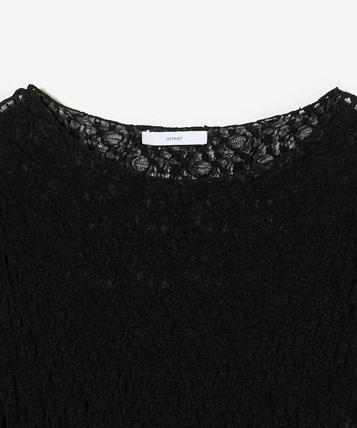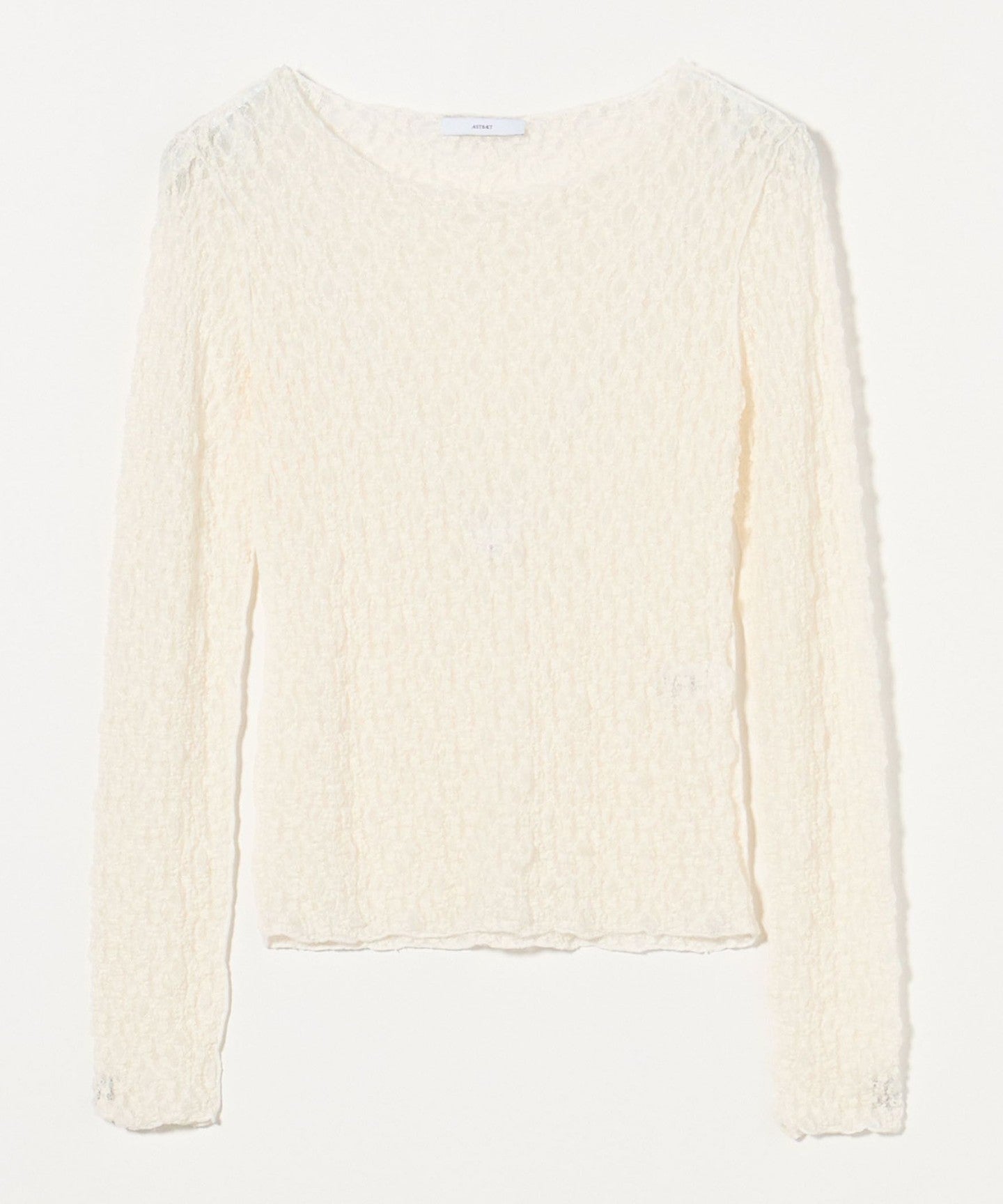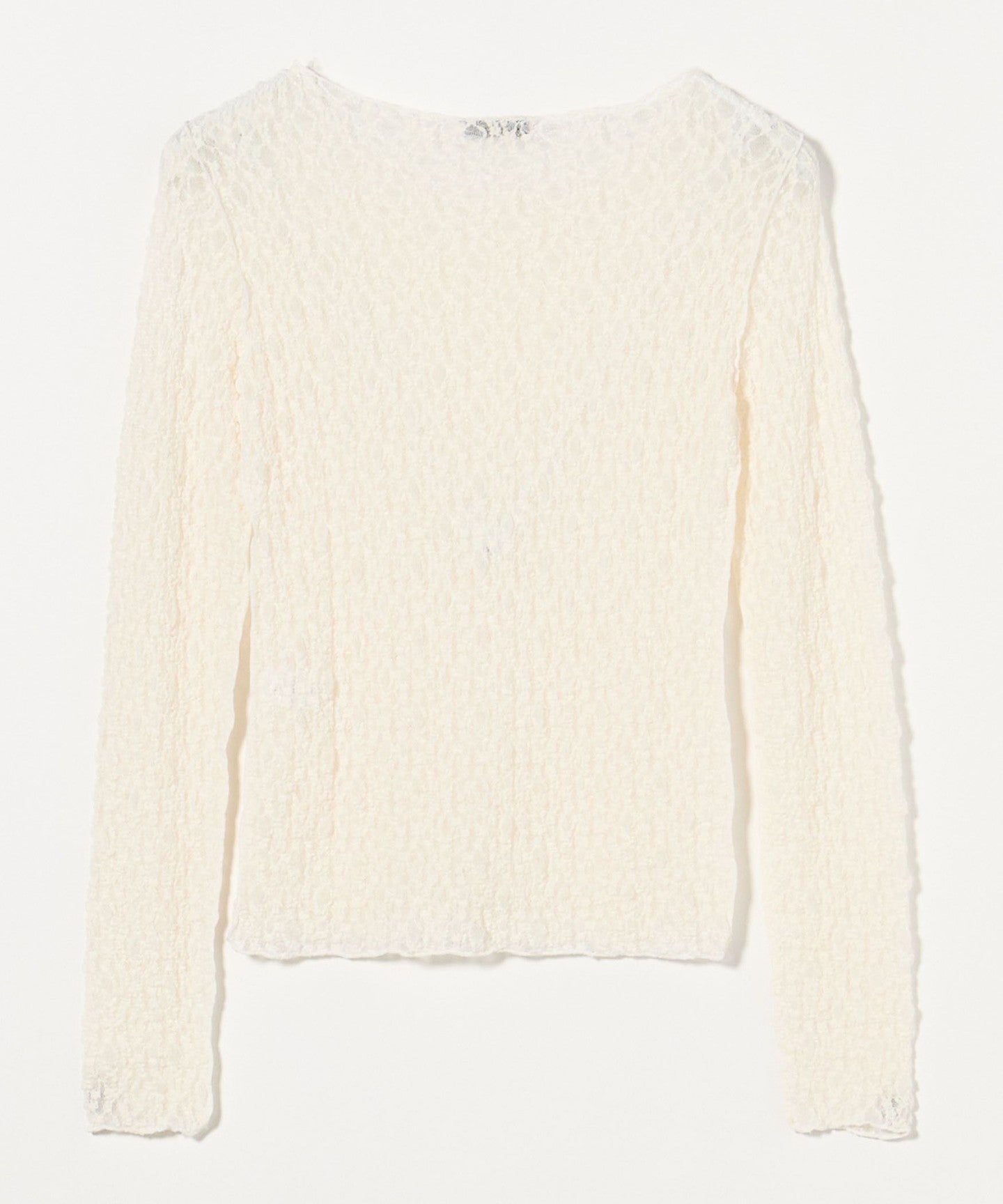 A long-sleeved cut-and-sew top with a gorgeous sheer lace look.