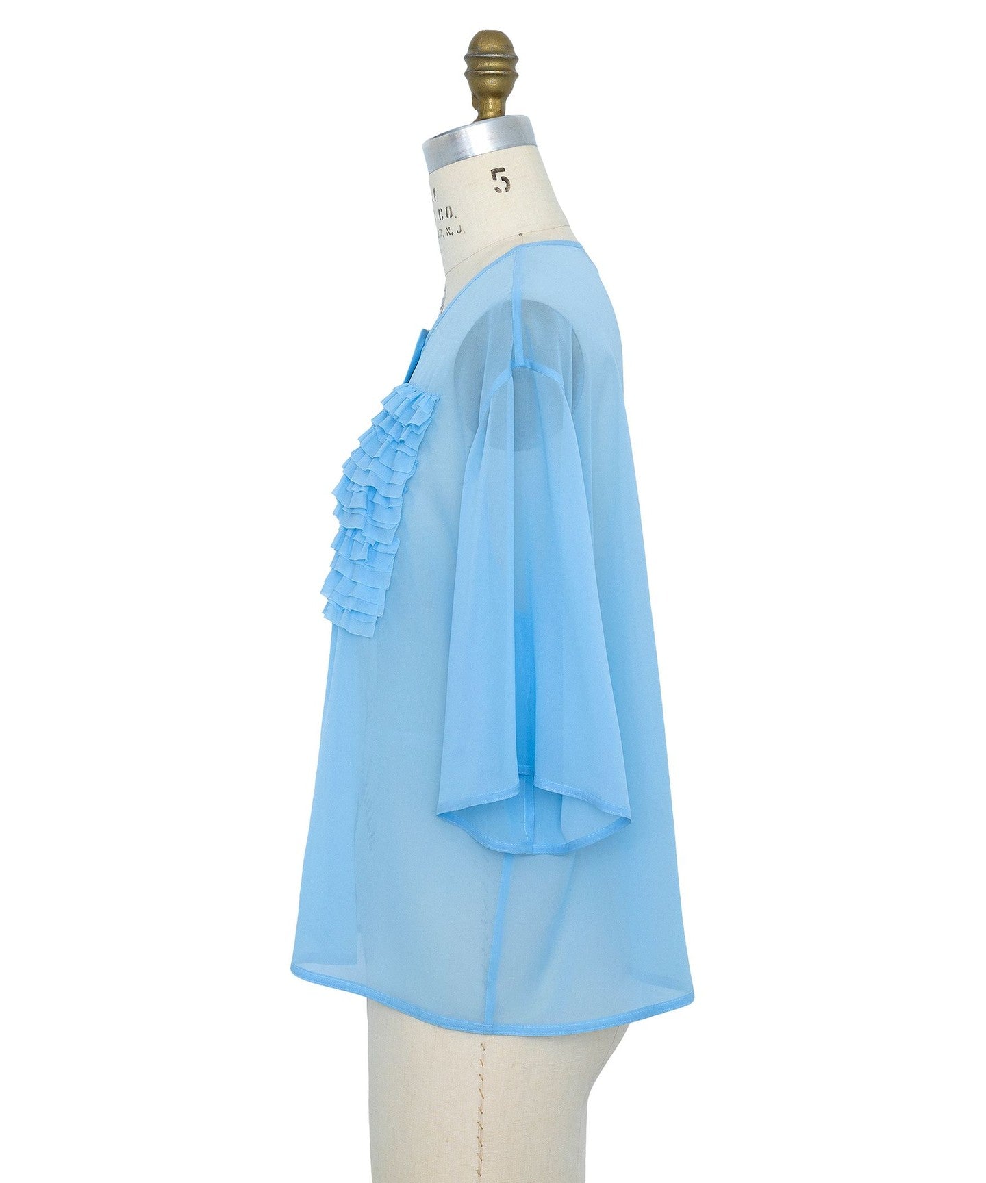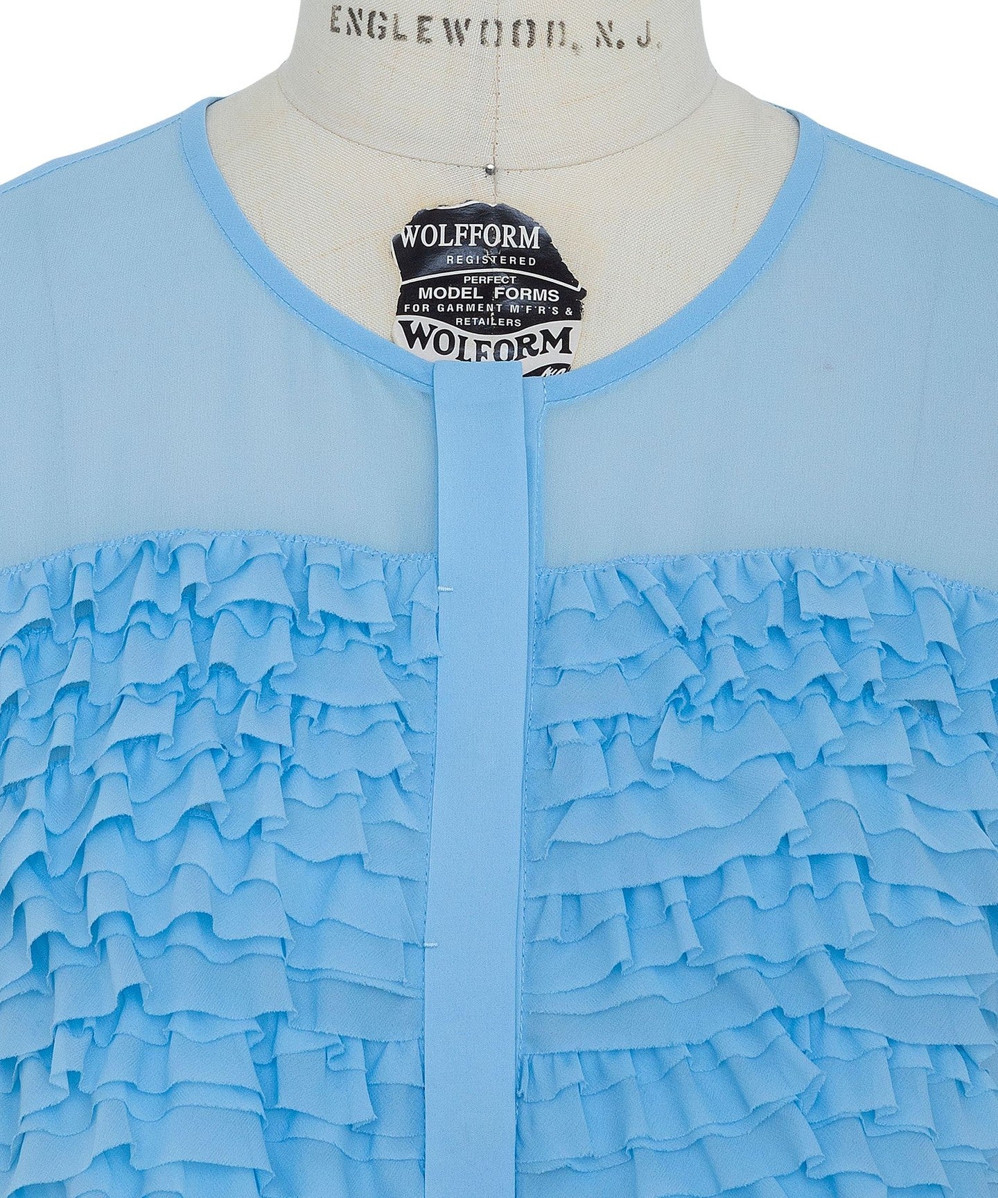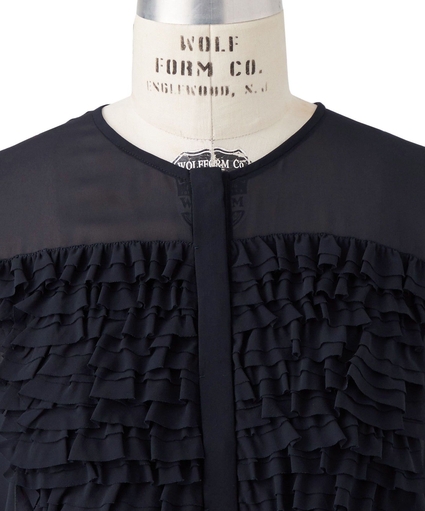 The cut-off ruffles on the front are arranged randomly, creating a rhythmic design.