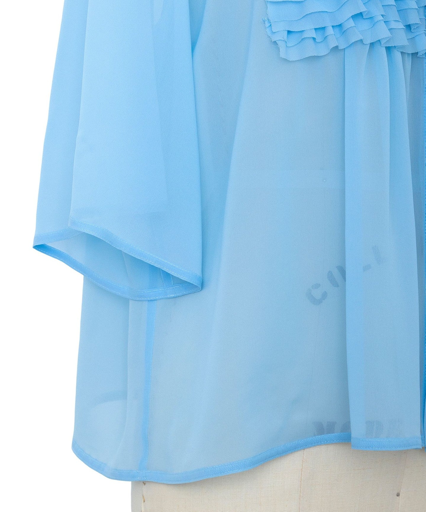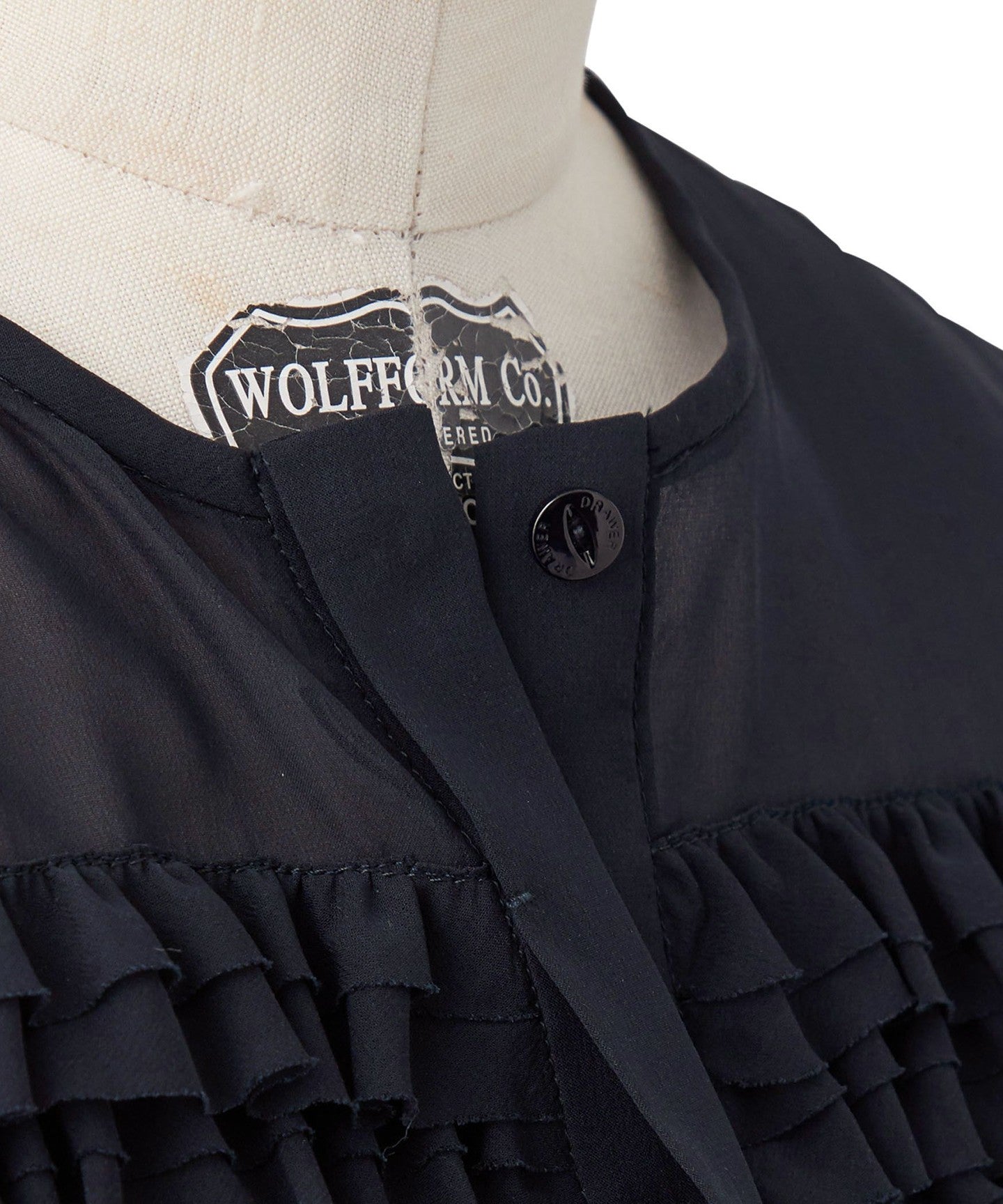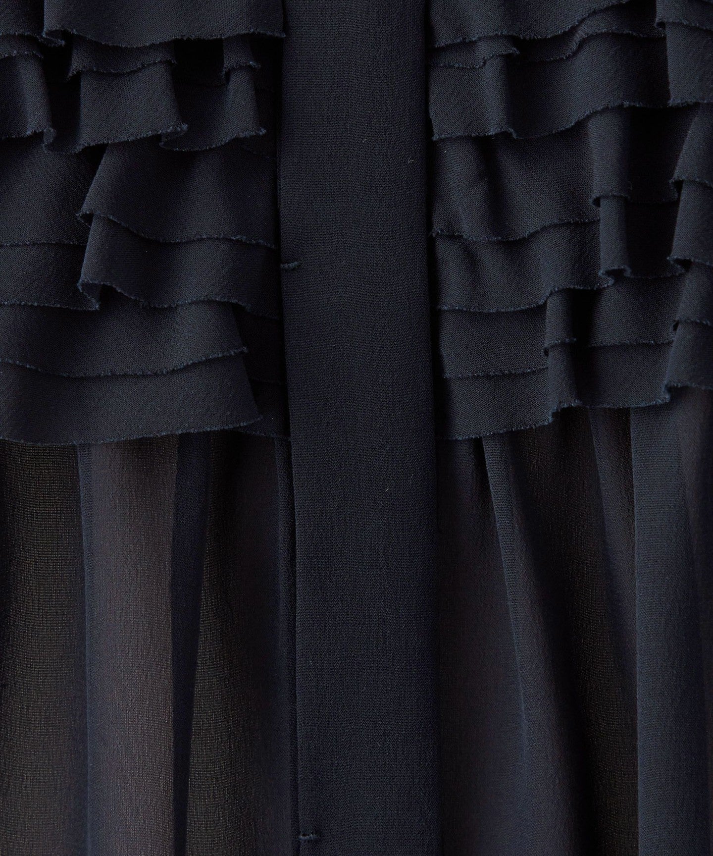 The cut-off ruffles on the front are arranged randomly, creating a rhythmic design.