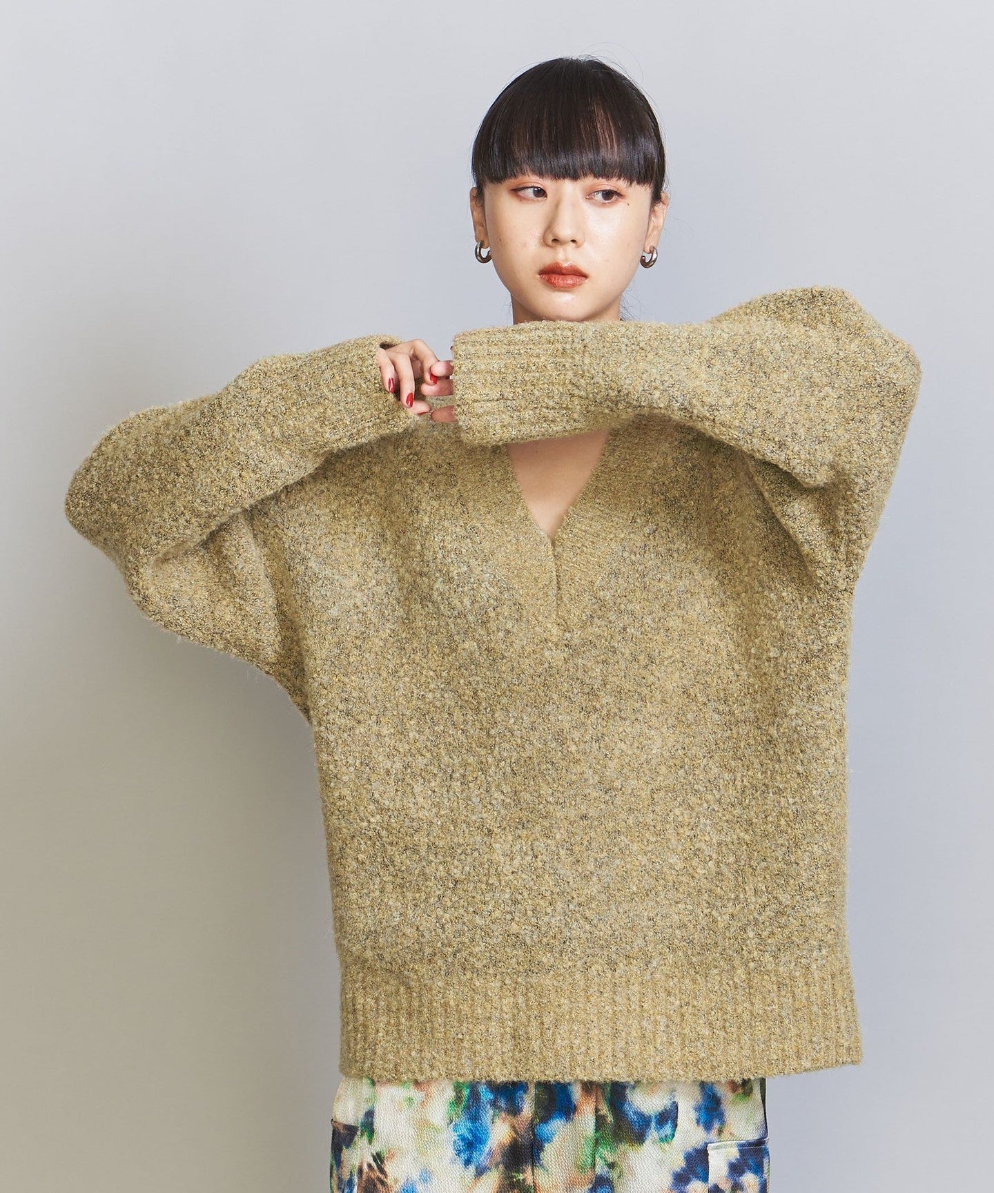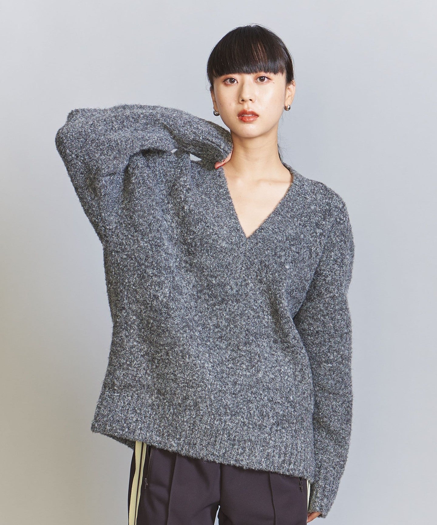 BEAUTY&YOUTHBack volume V-neck boucle KNIT pullover
