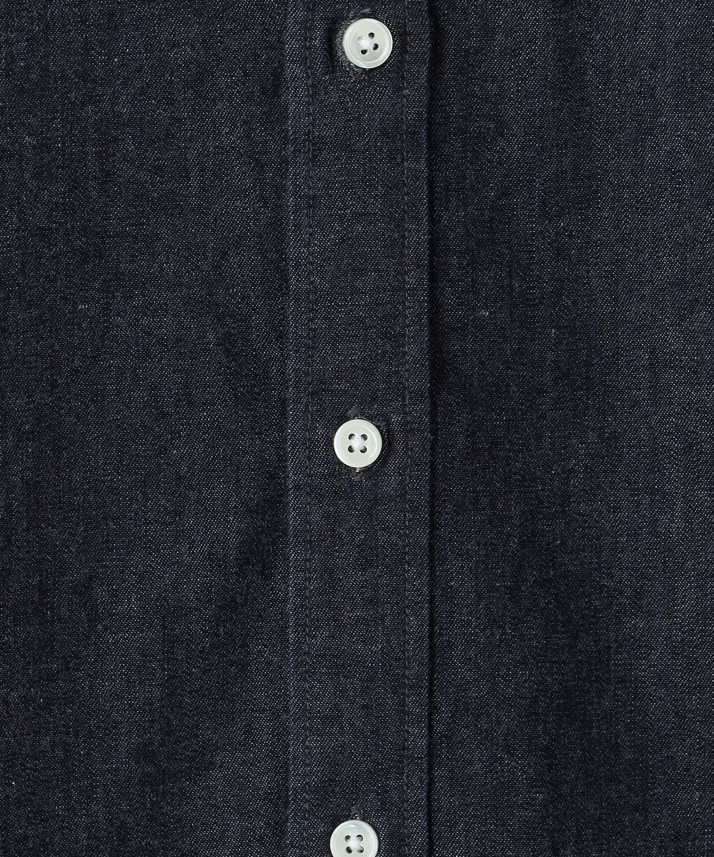 An authentic denim shirt with attention to detail, including thick shell buttons and fine stitching.