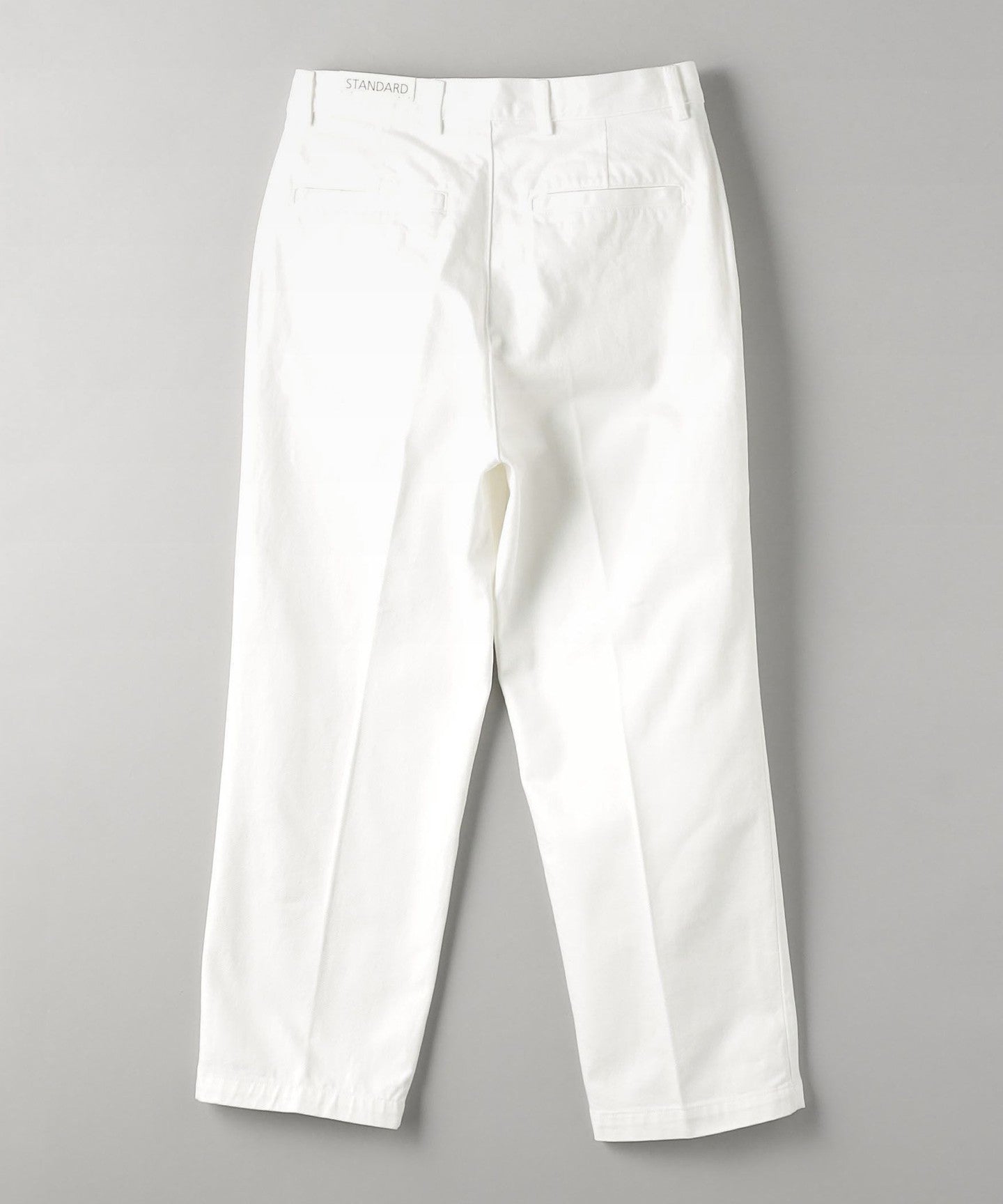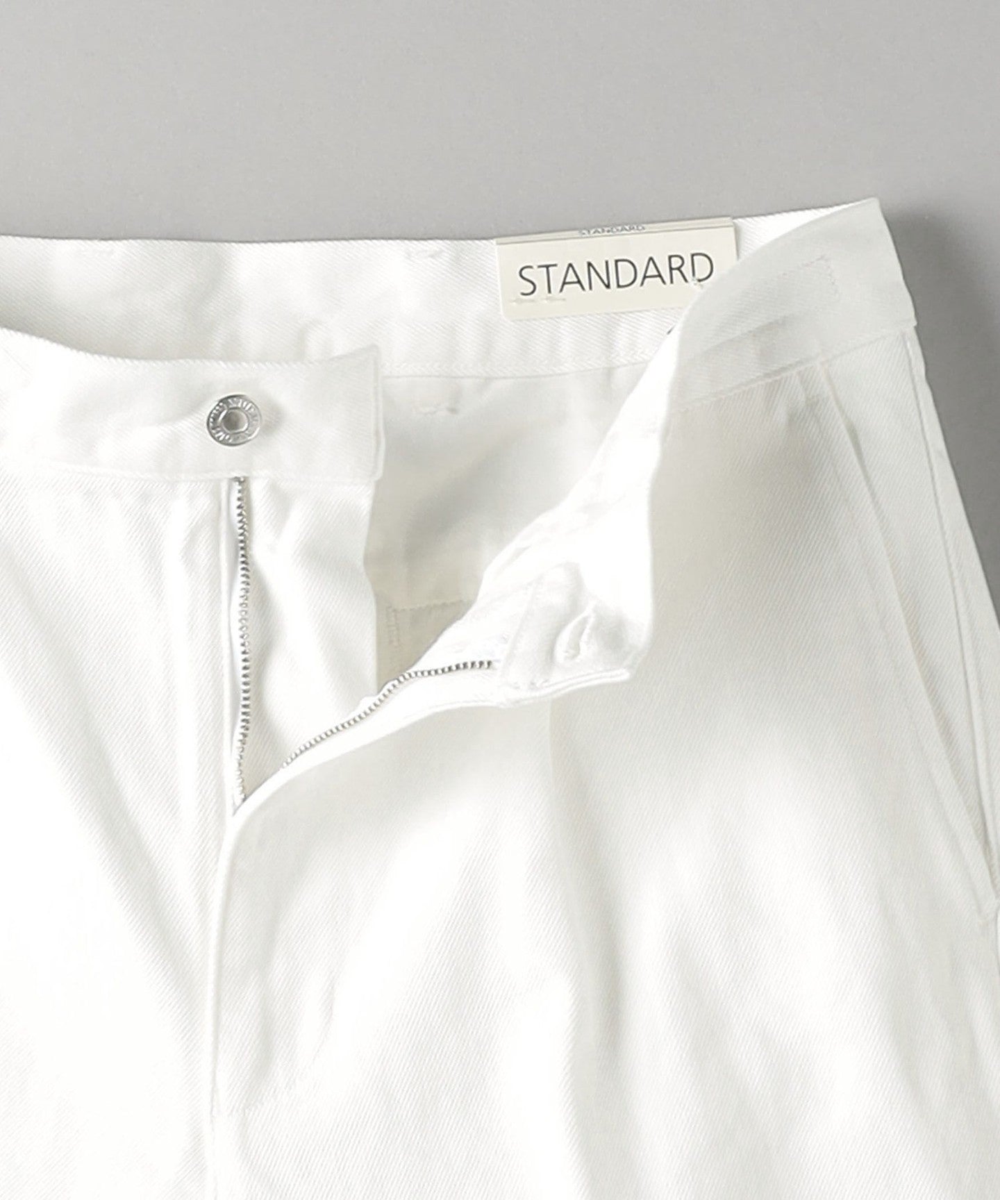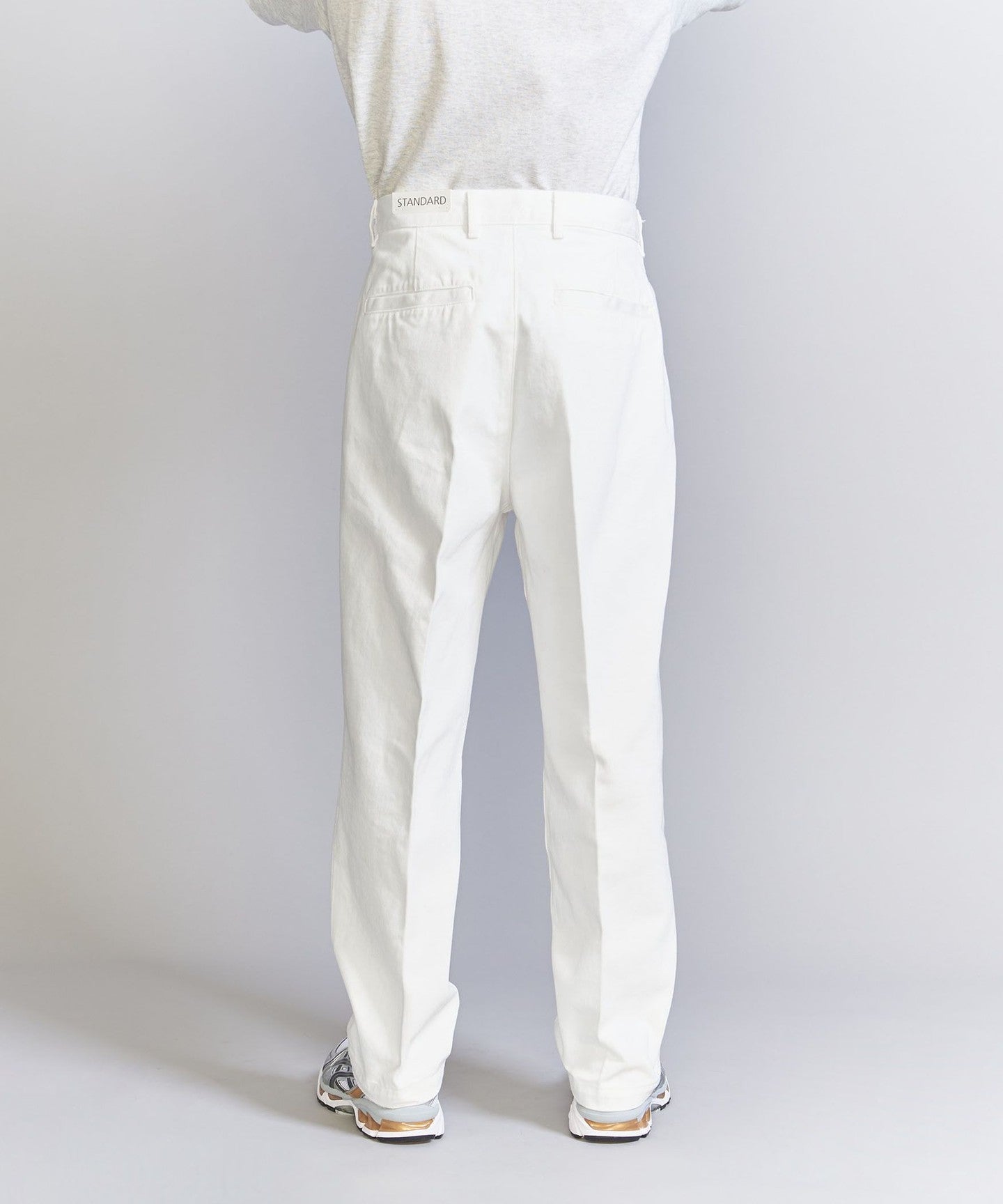 It has a deep rise and wide straight silhouette that gives it the feel of traditional American slacks.