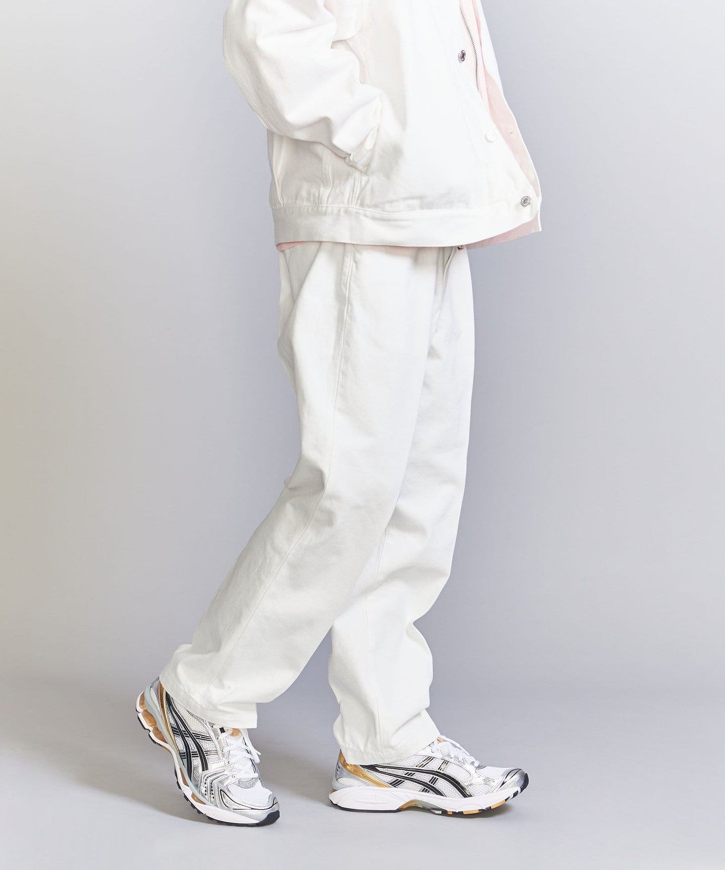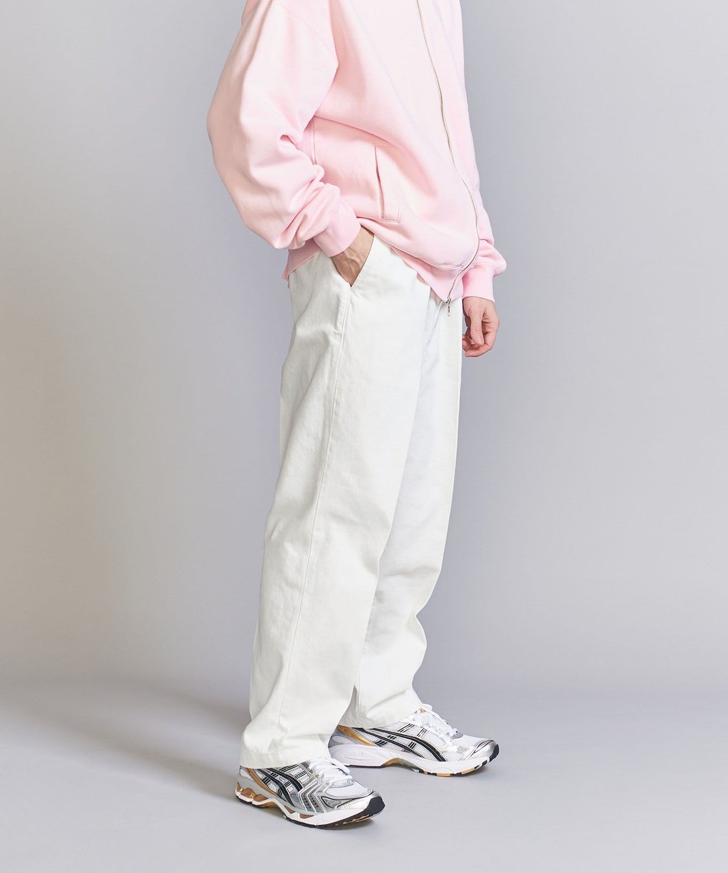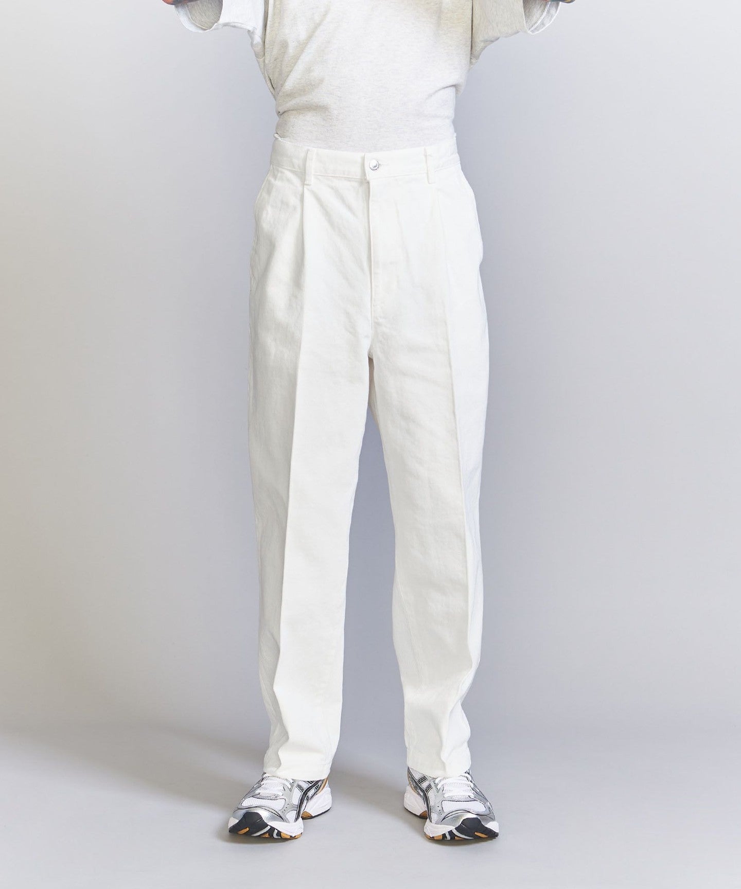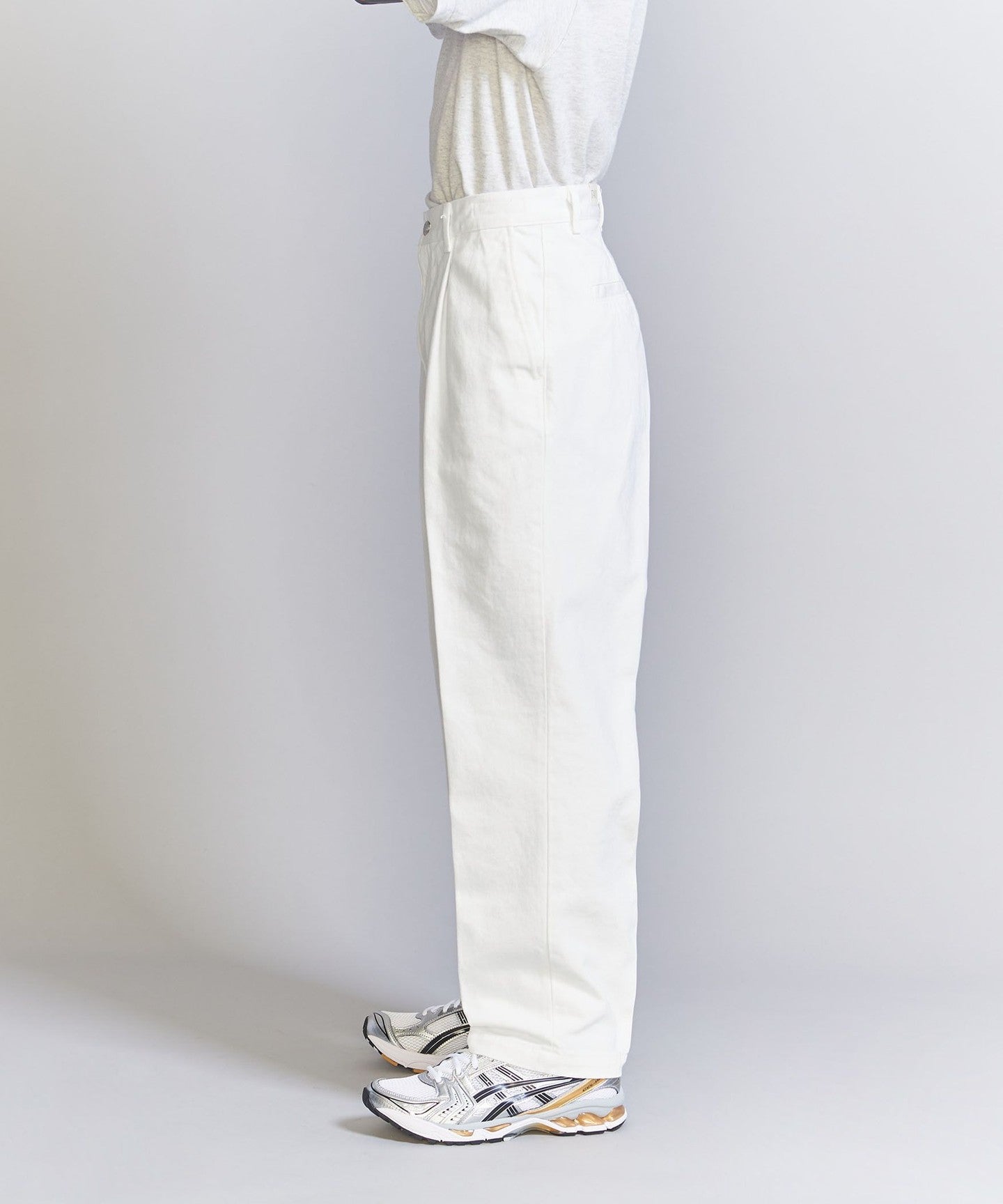 It has a deep rise and wide straight silhouette that gives it the feel of traditional American slacks.