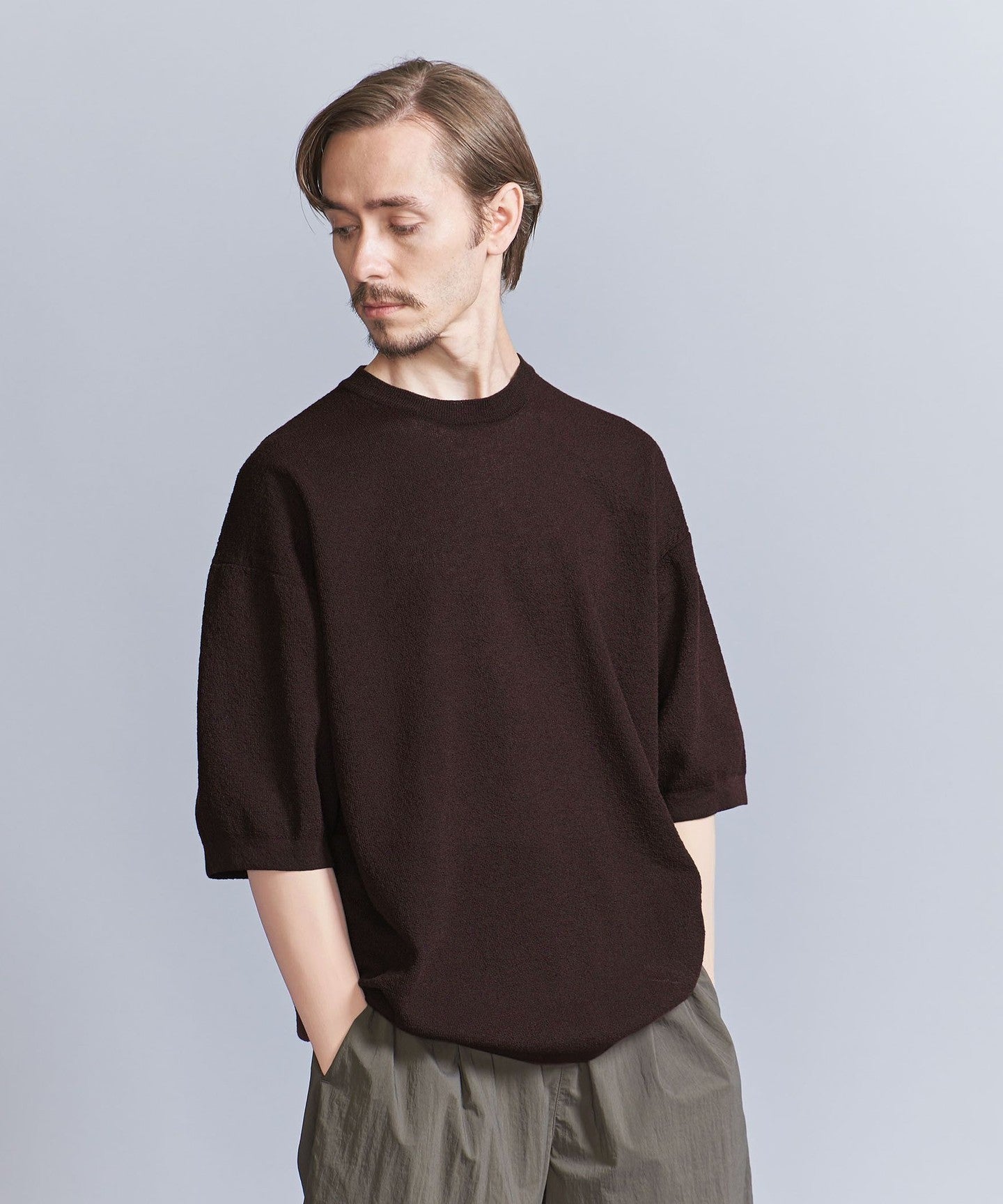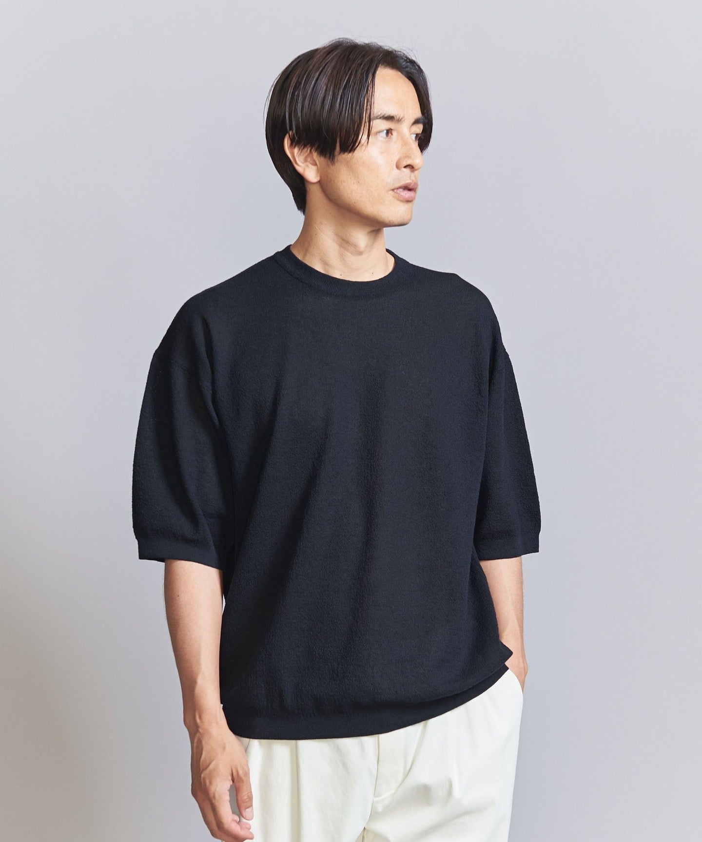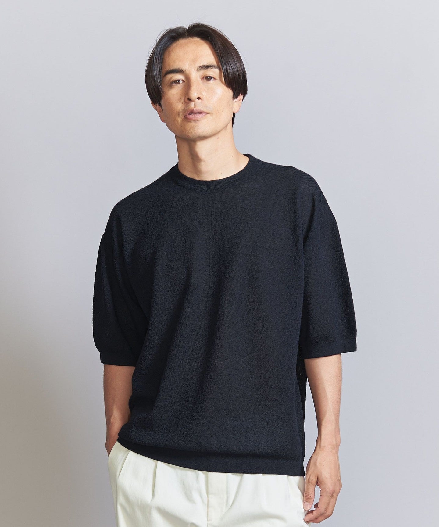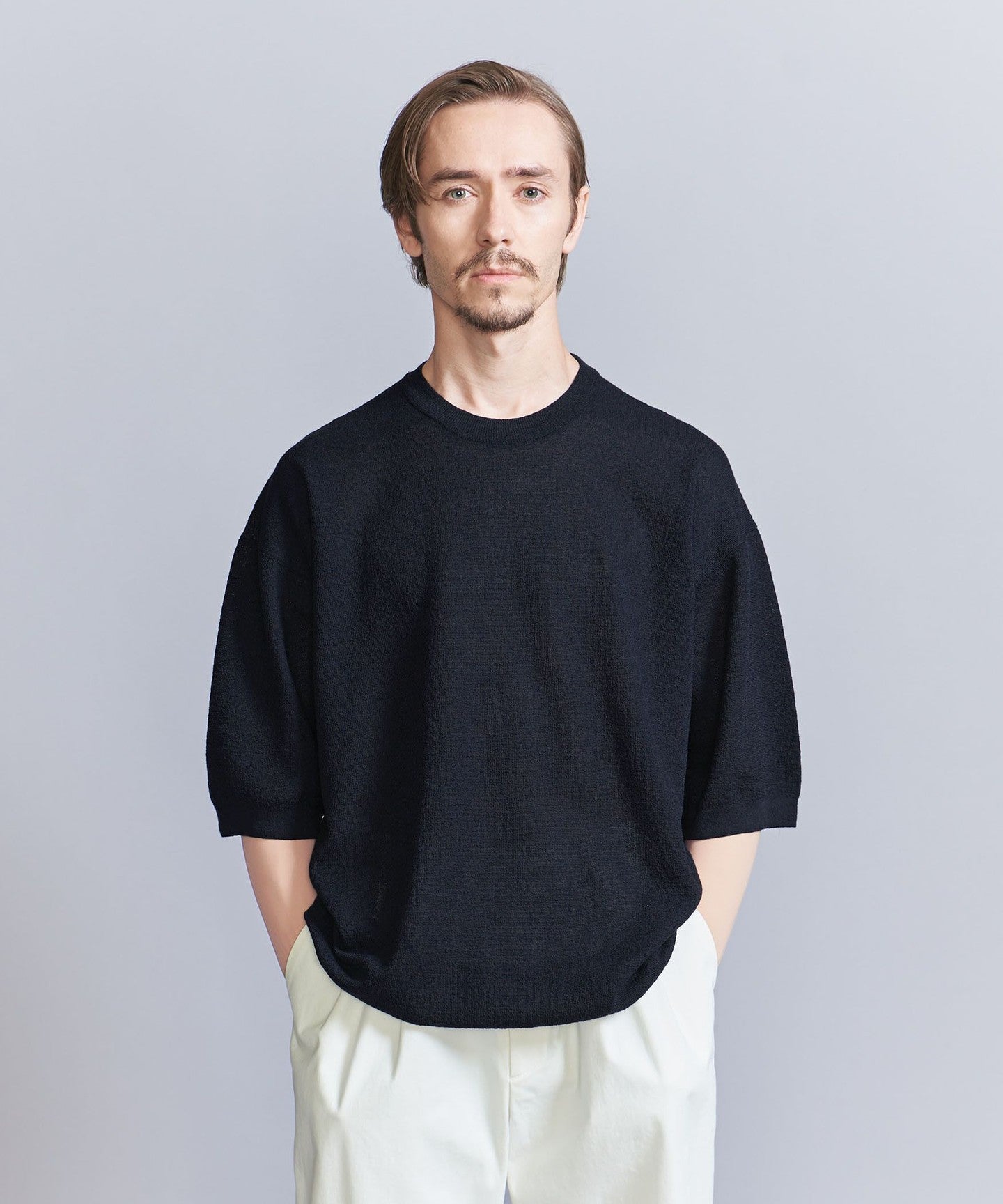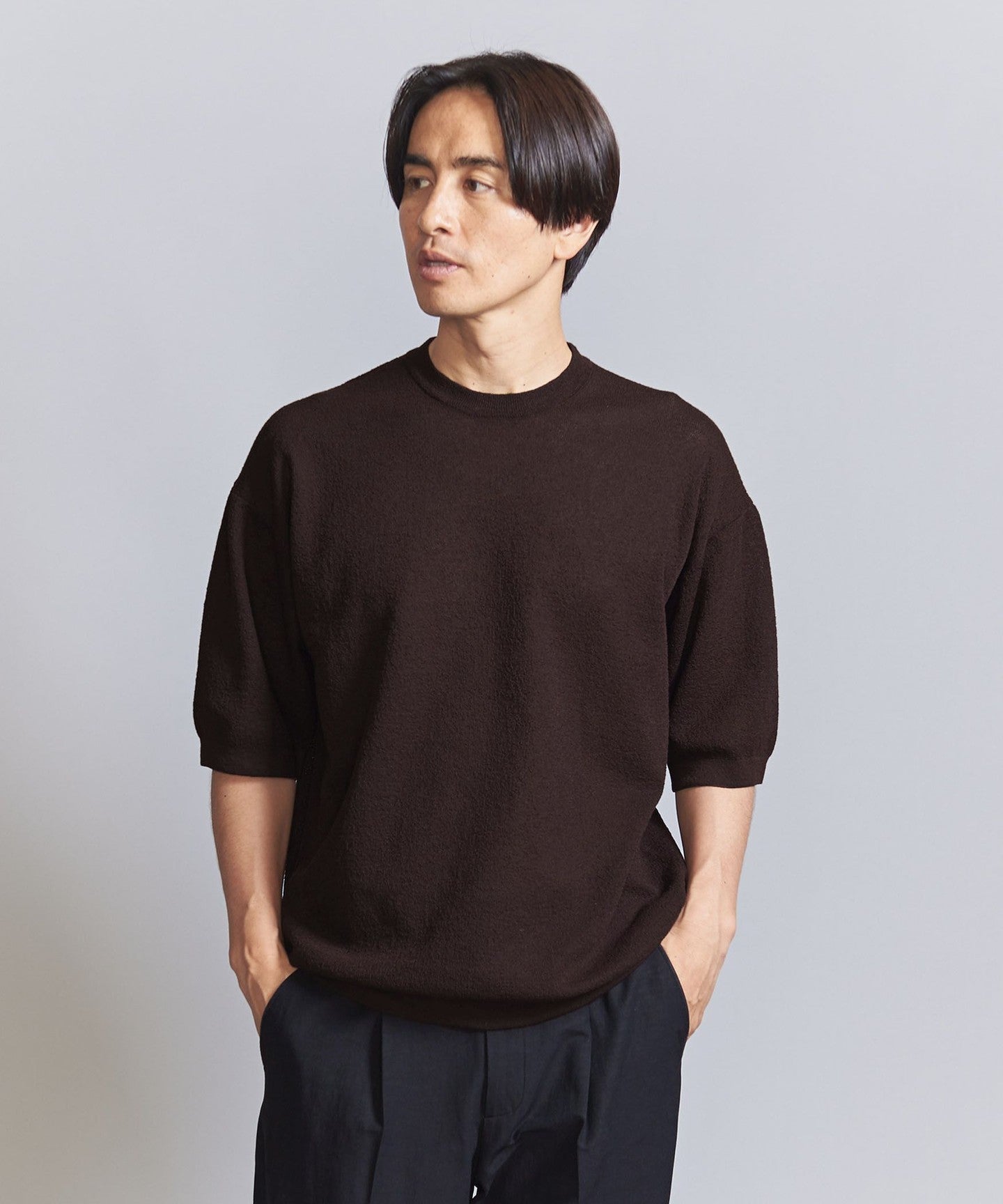 A minimalist crew neck knit that can be easily coordinated with a variety of outfits.