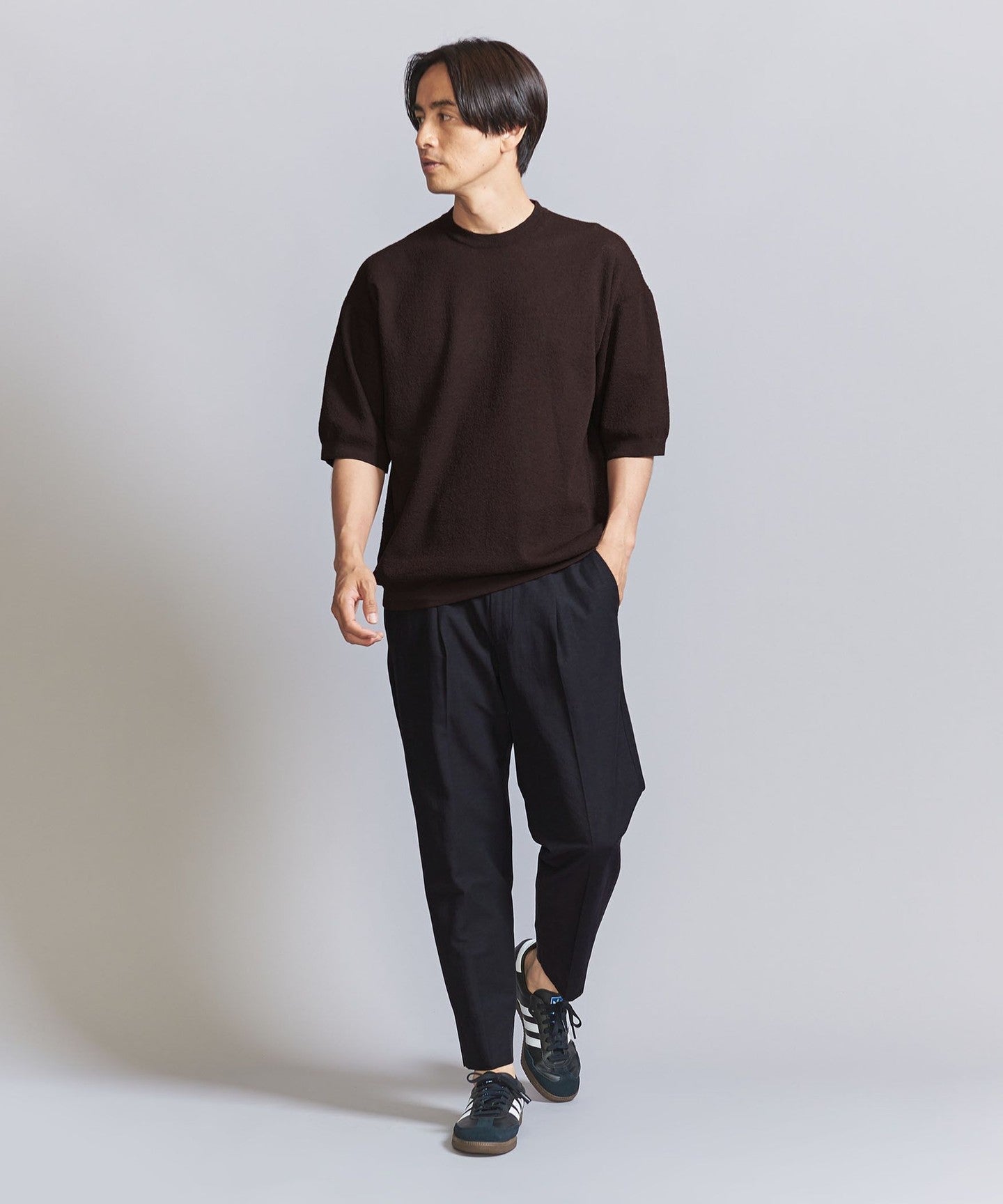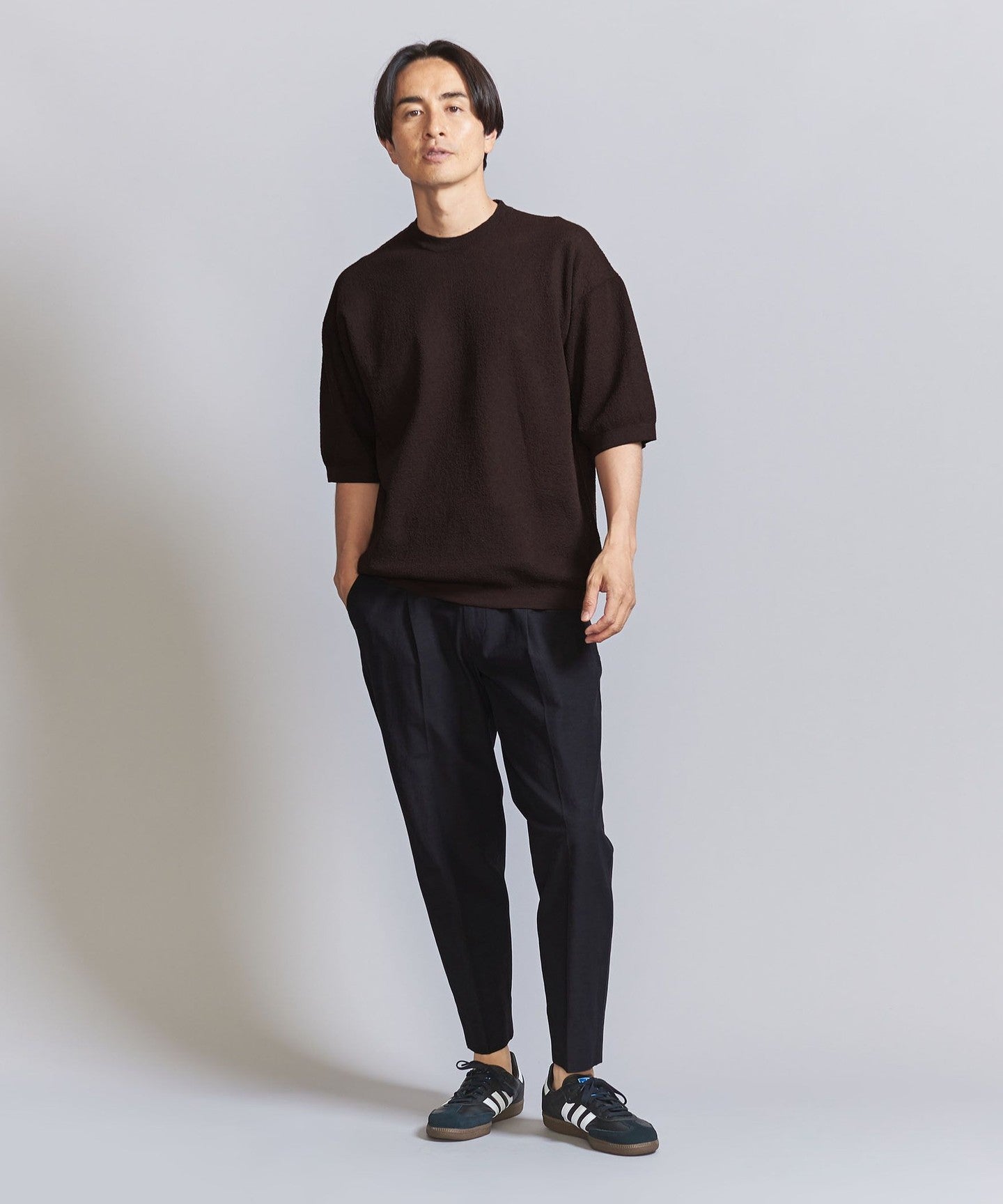 It goes well with neat styling such as pairing with slacks, leather shoes, or leather sandals, as well as sporty looks such as pairing tech pants or chinos with sneakers.
