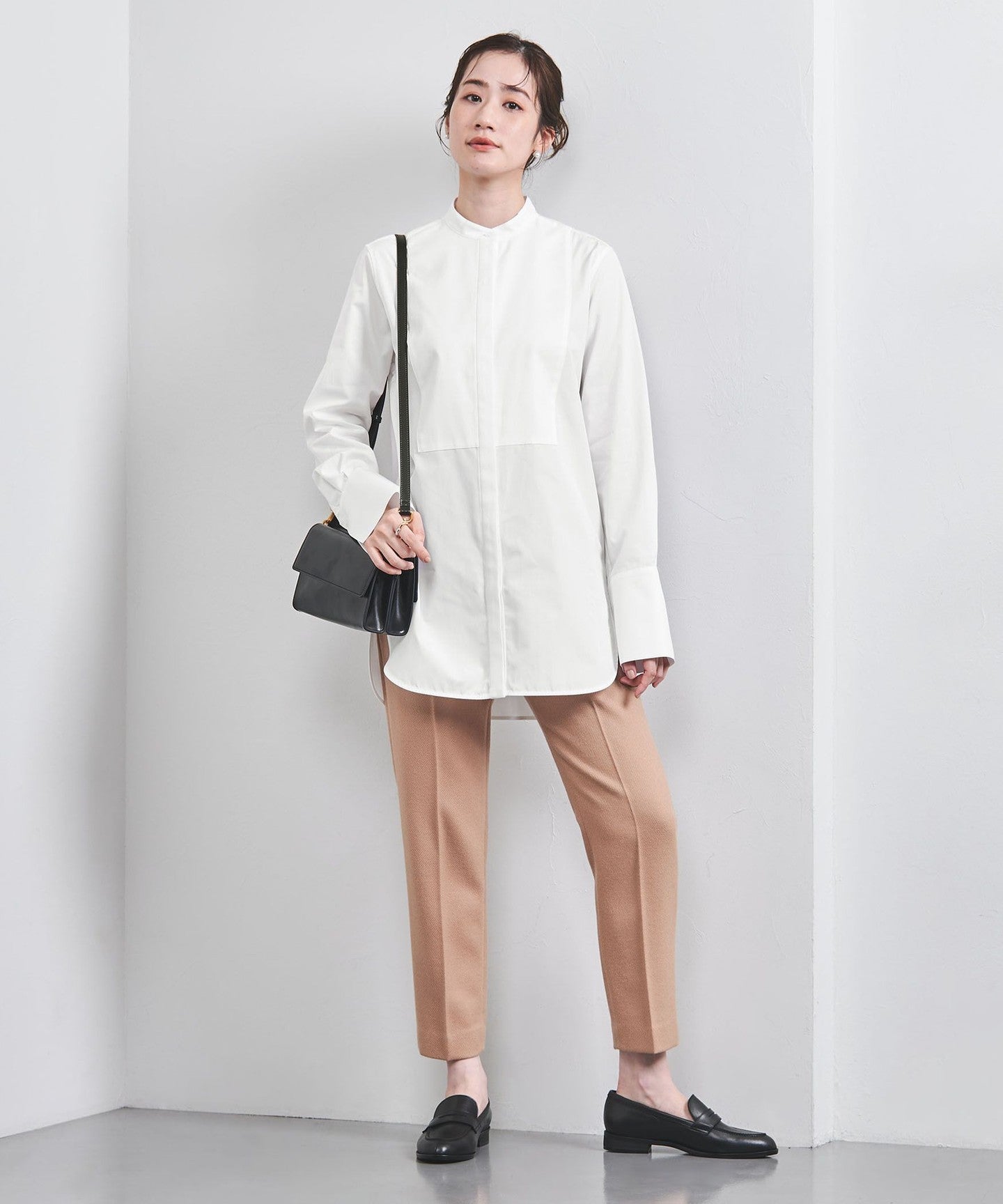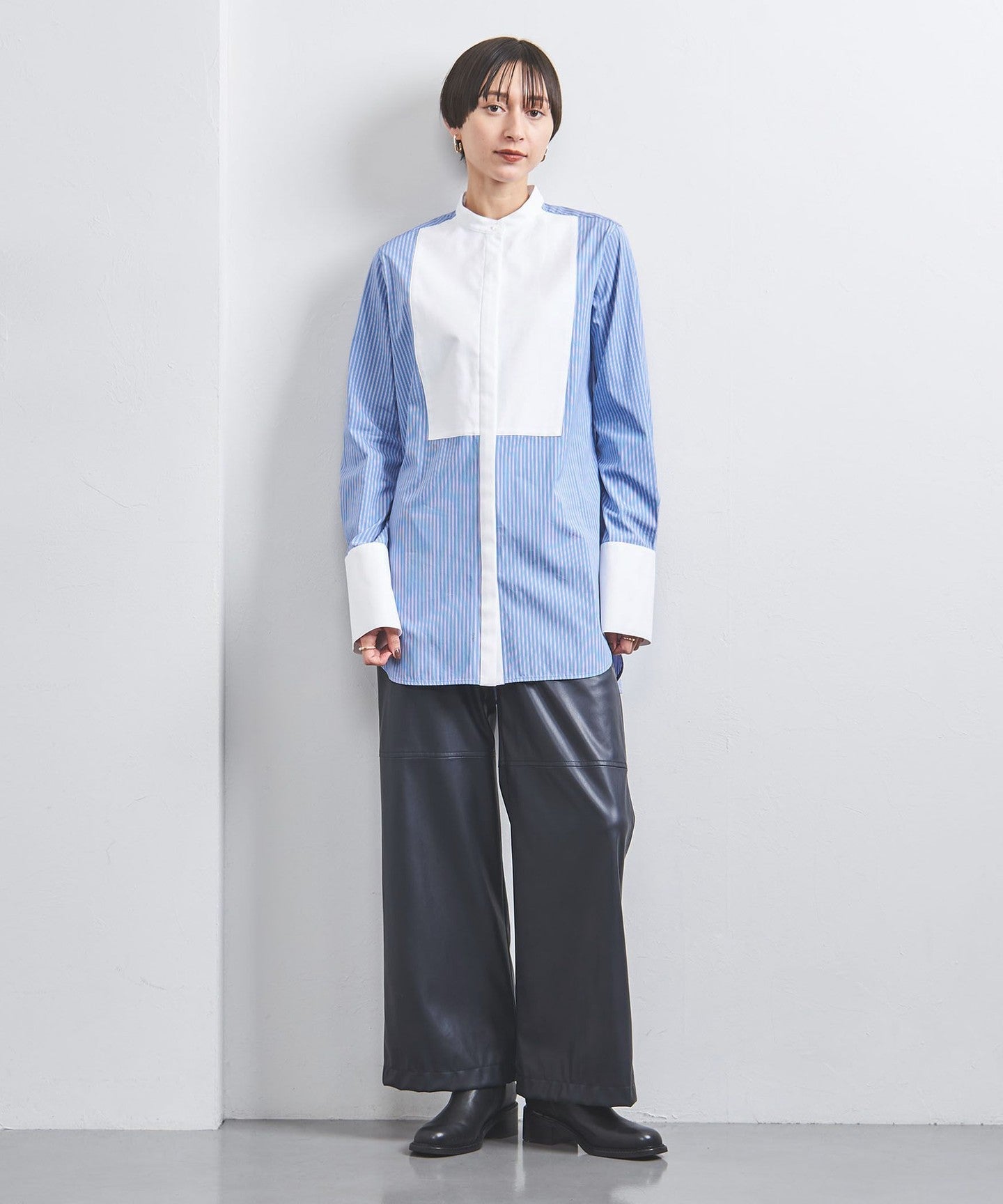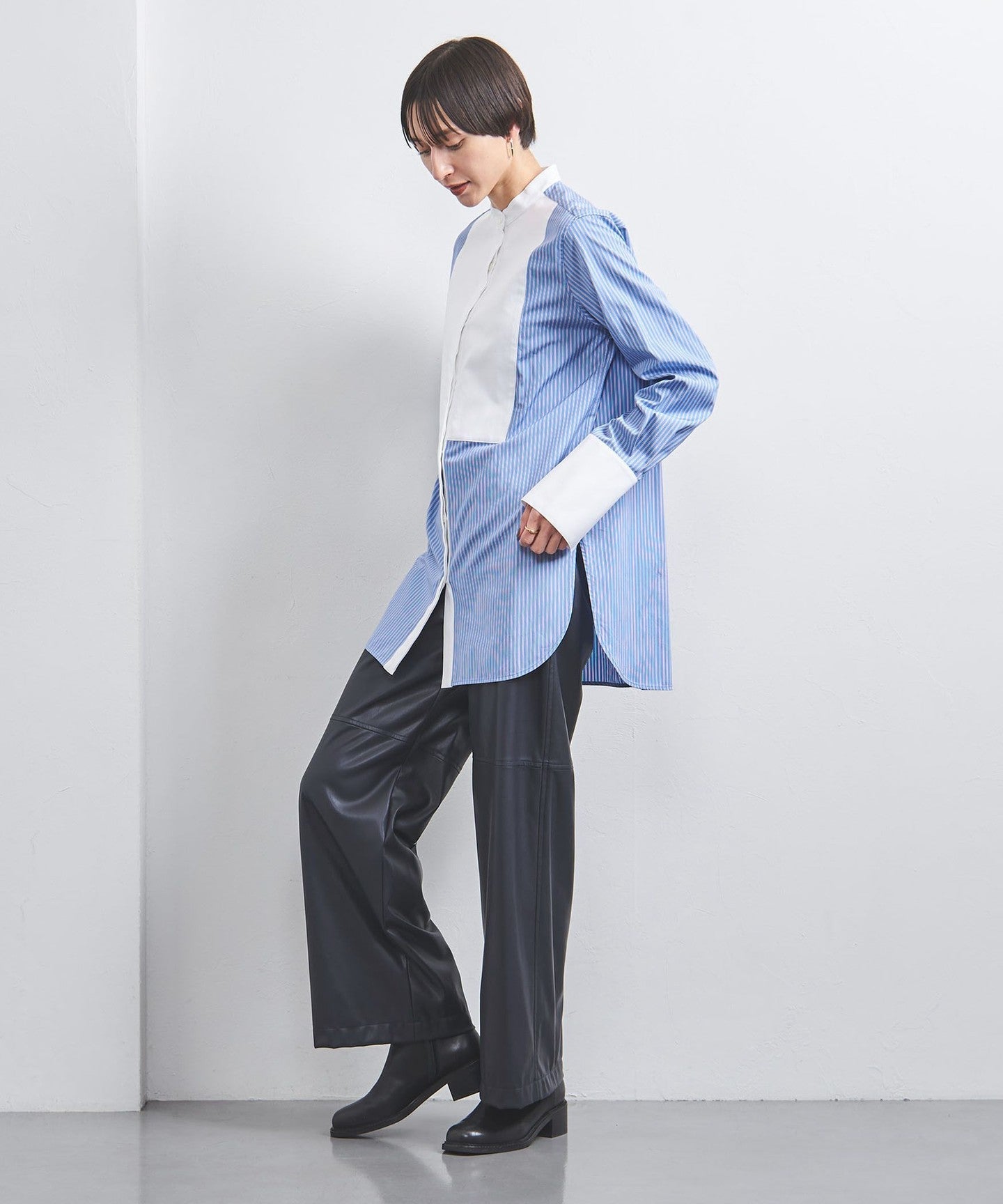In addition to the classic style of pairing it with dress pants, you can also pair it with sharp leather-look bottoms.