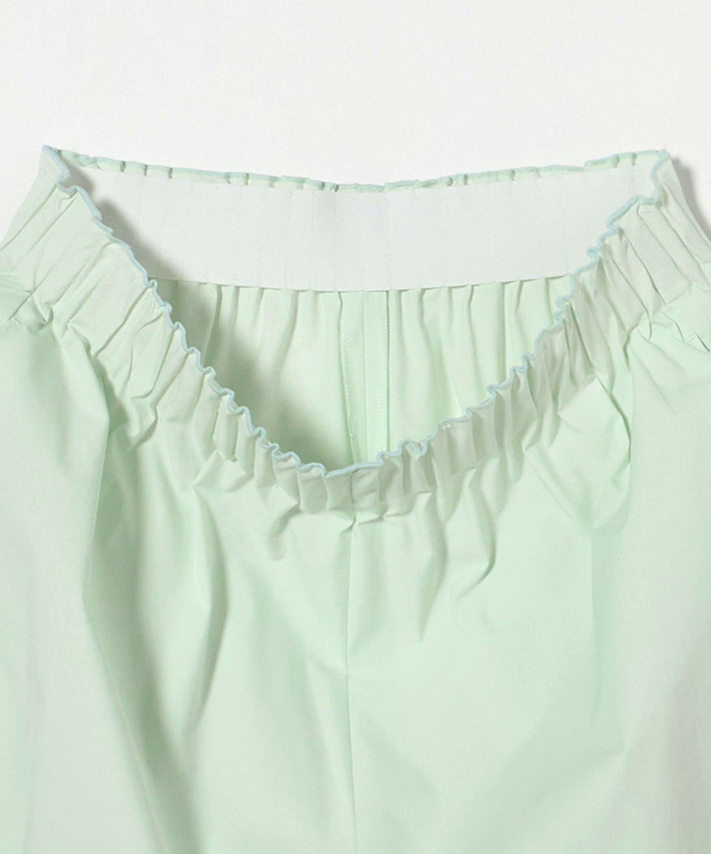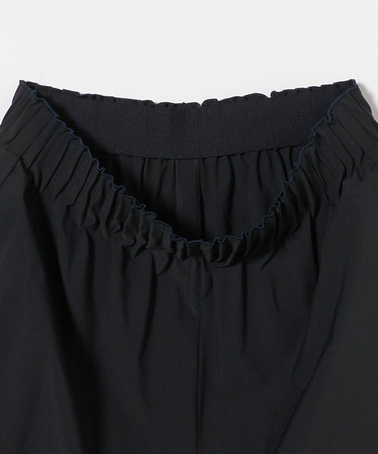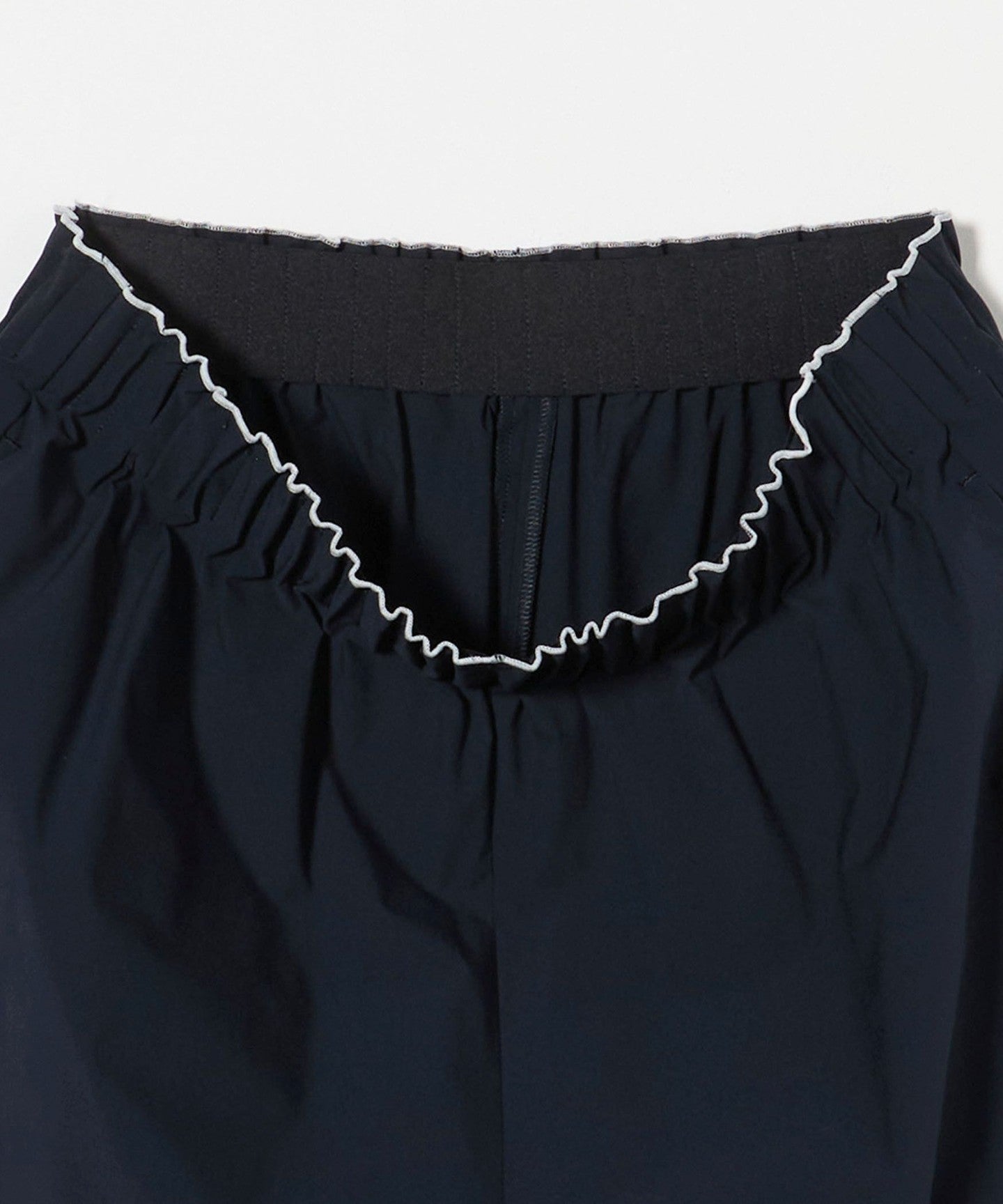 The waist is made of flat elastic with tucks and stitching for a three-dimensional look, and the scalloped detail at the top is also a design point.