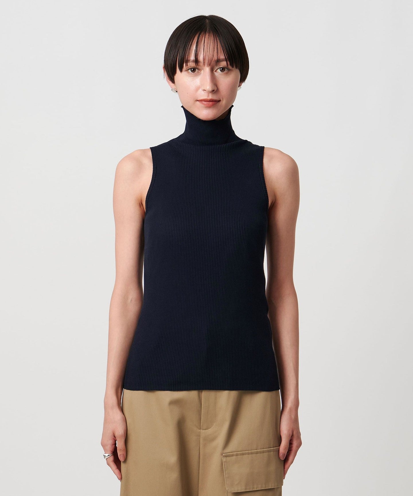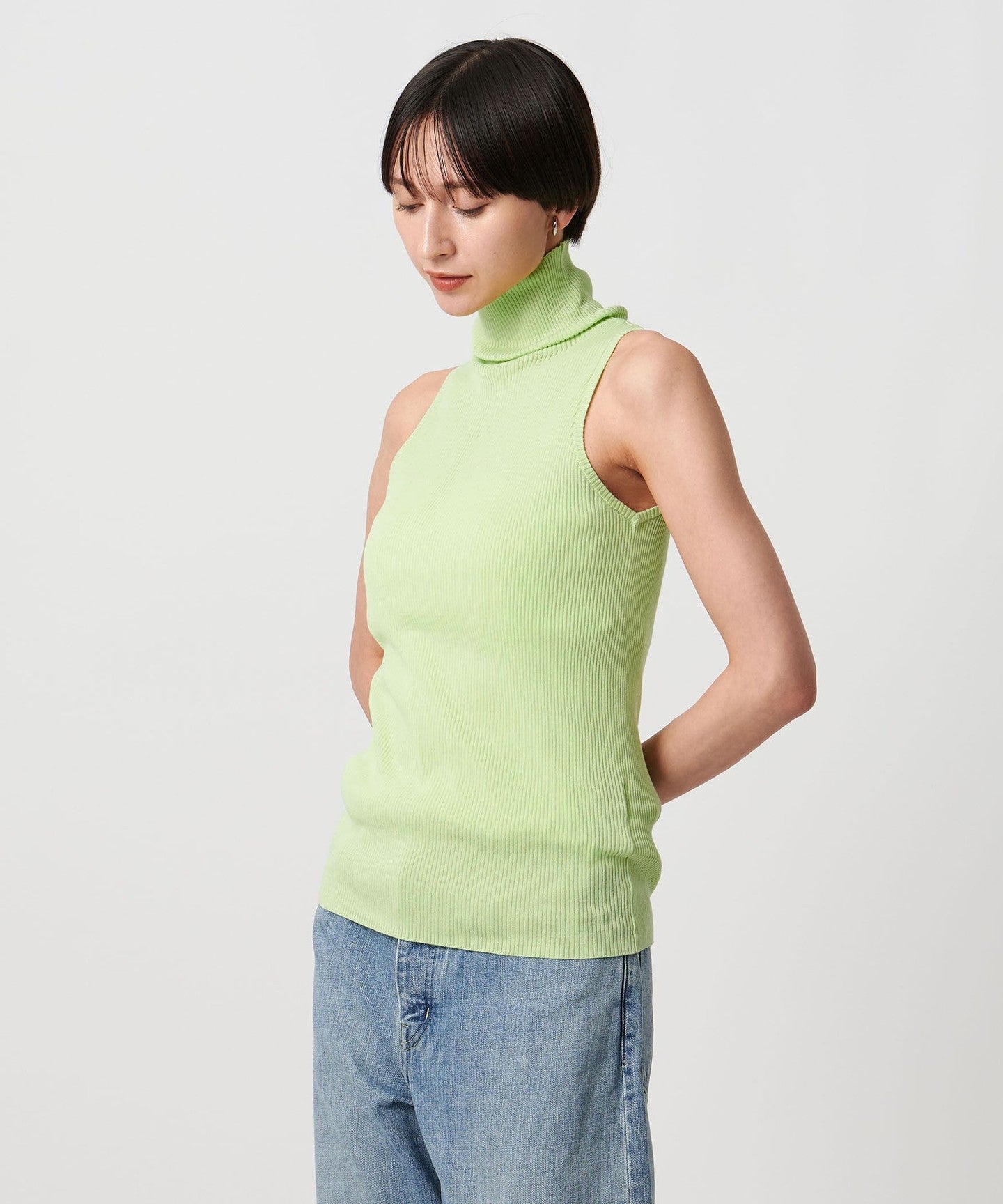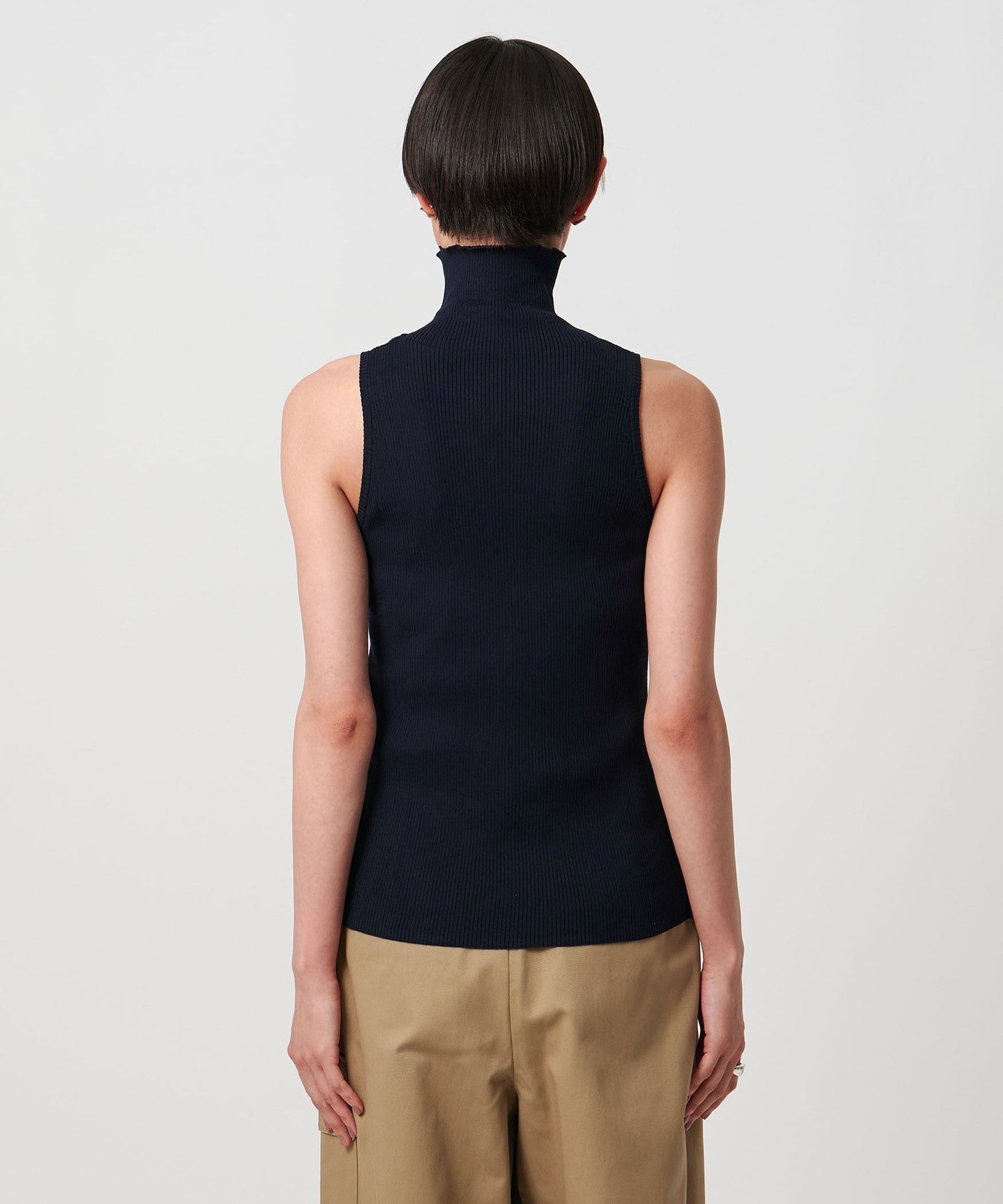 Cotton Rib Sleeveless Turtleneck - Washable