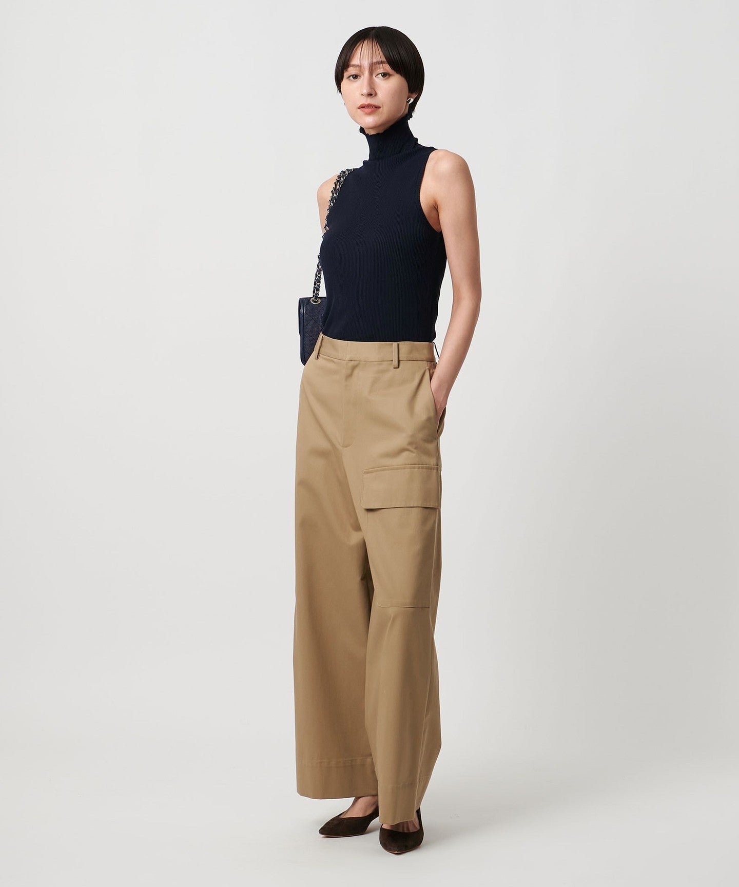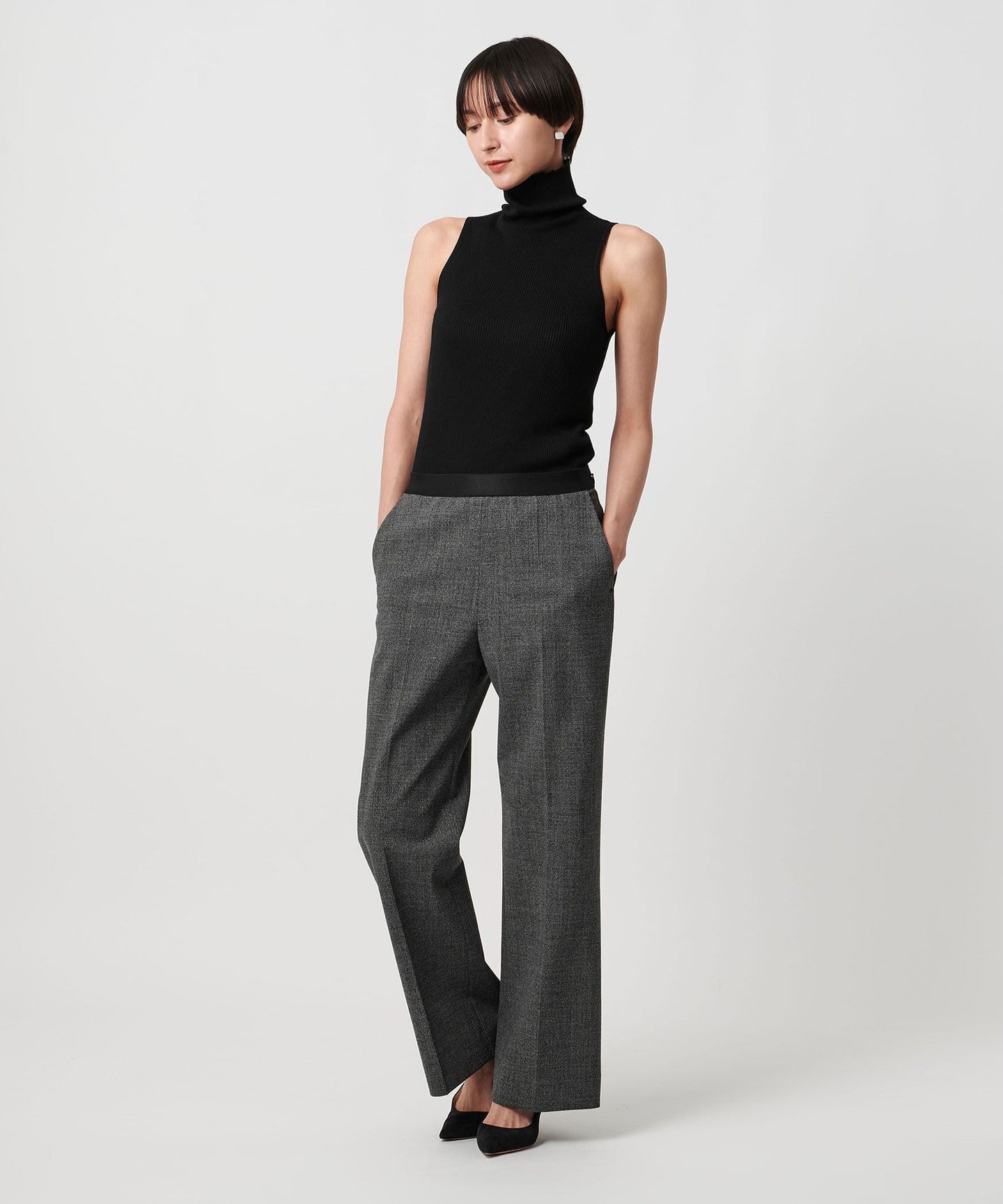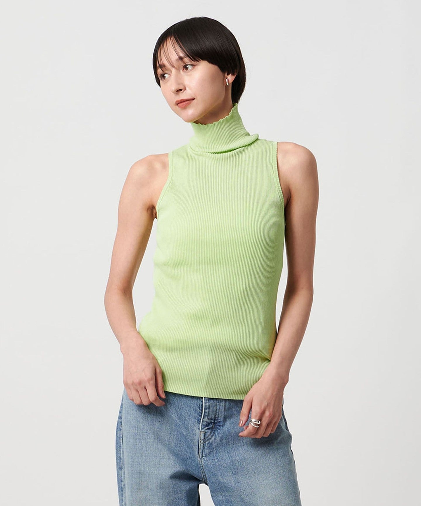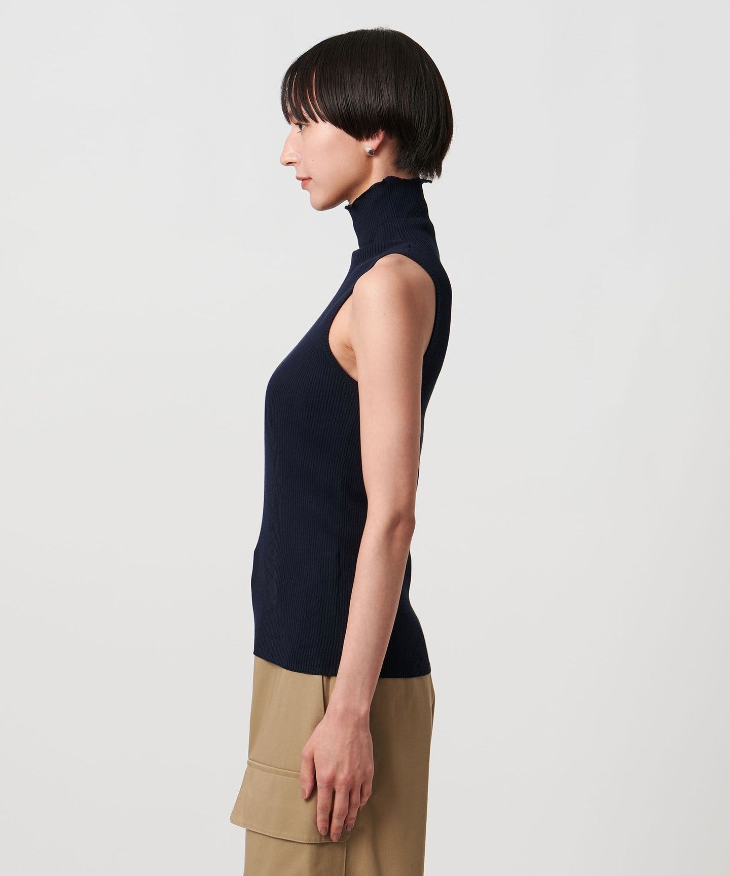 Cotton Rib Sleeveless Turtleneck - Washable