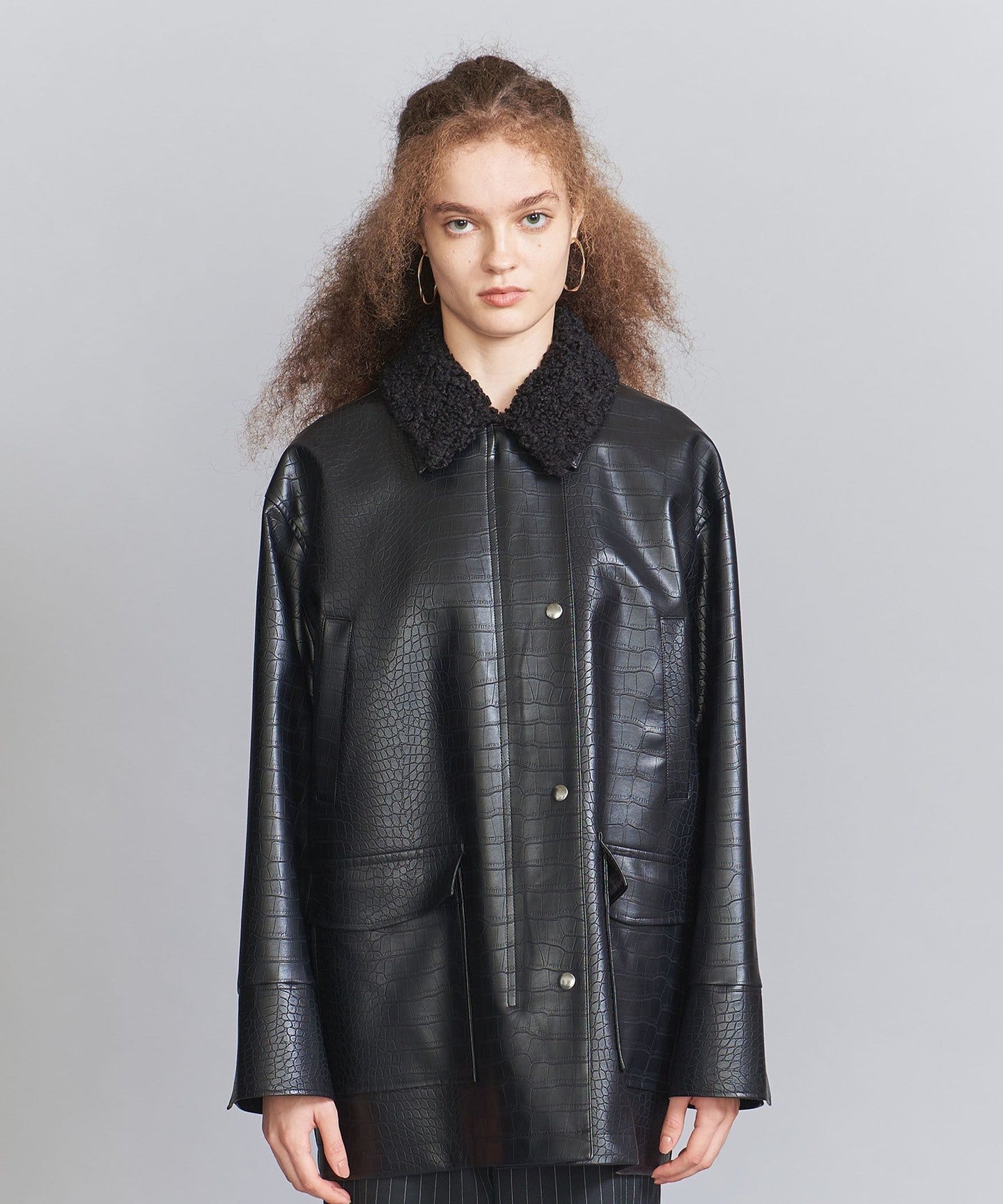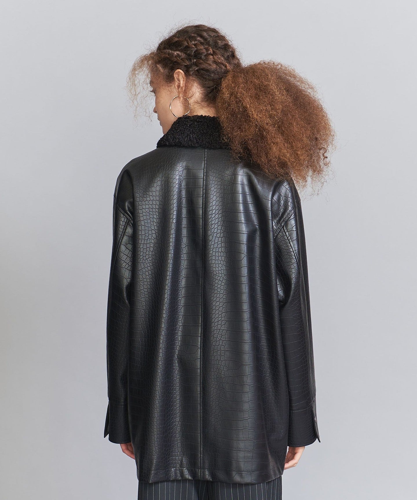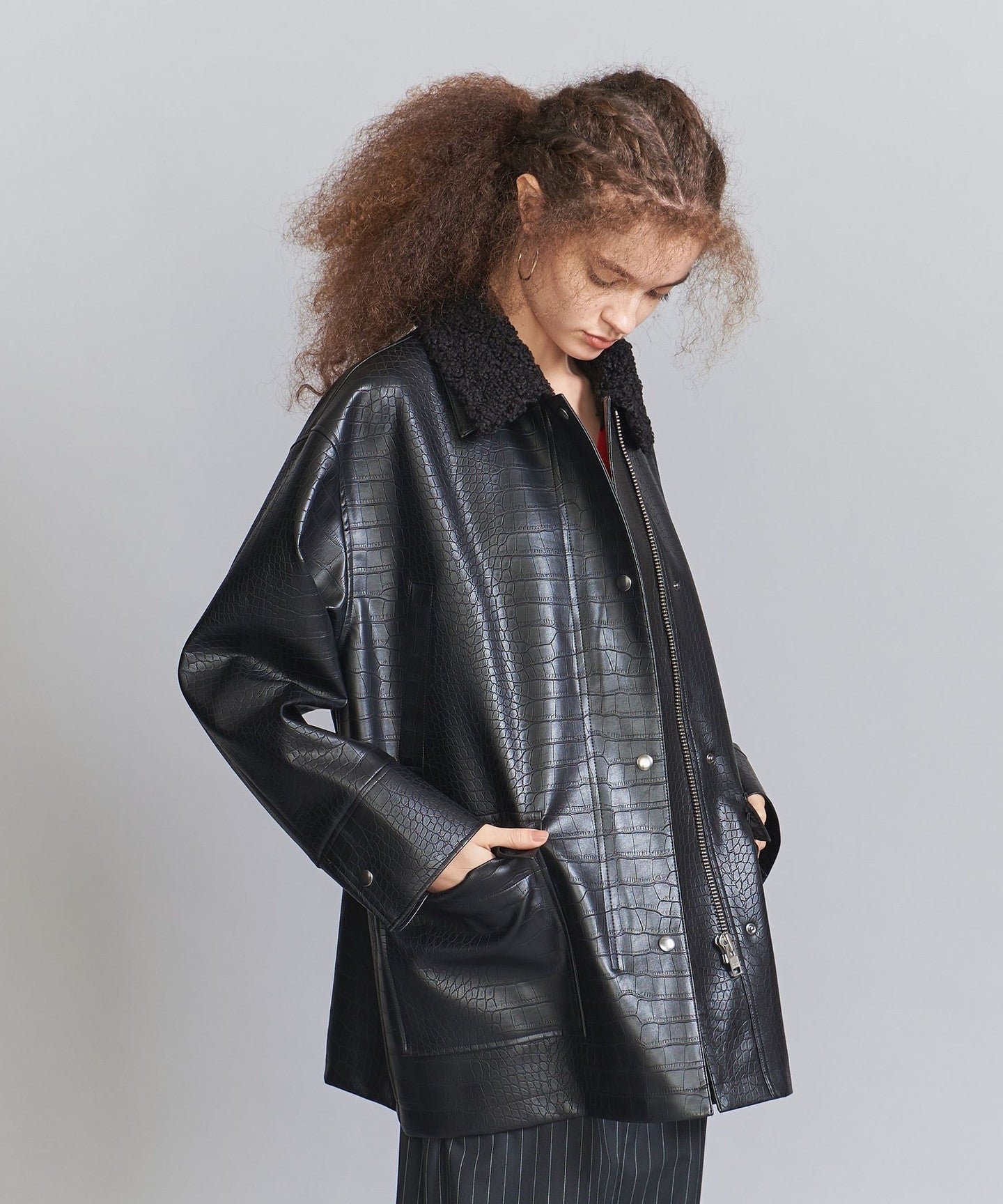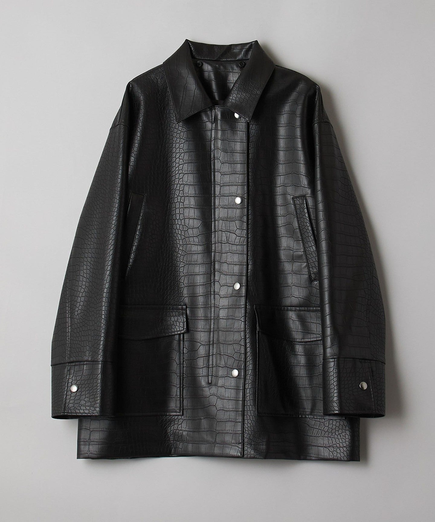 A leather-like jacket that gives a sophisticated and fashionable work look.