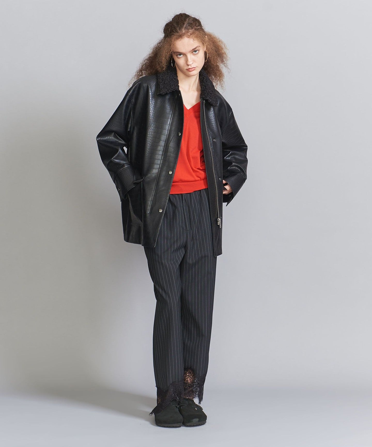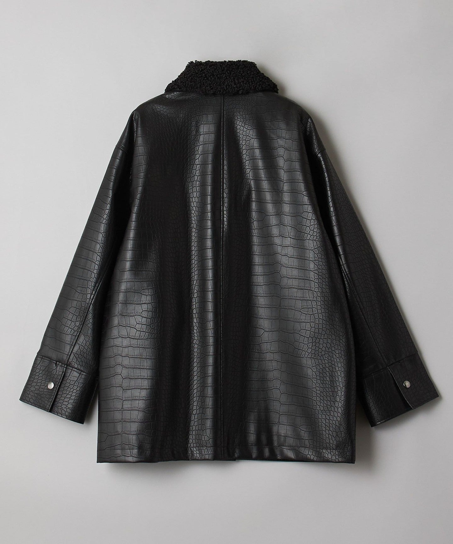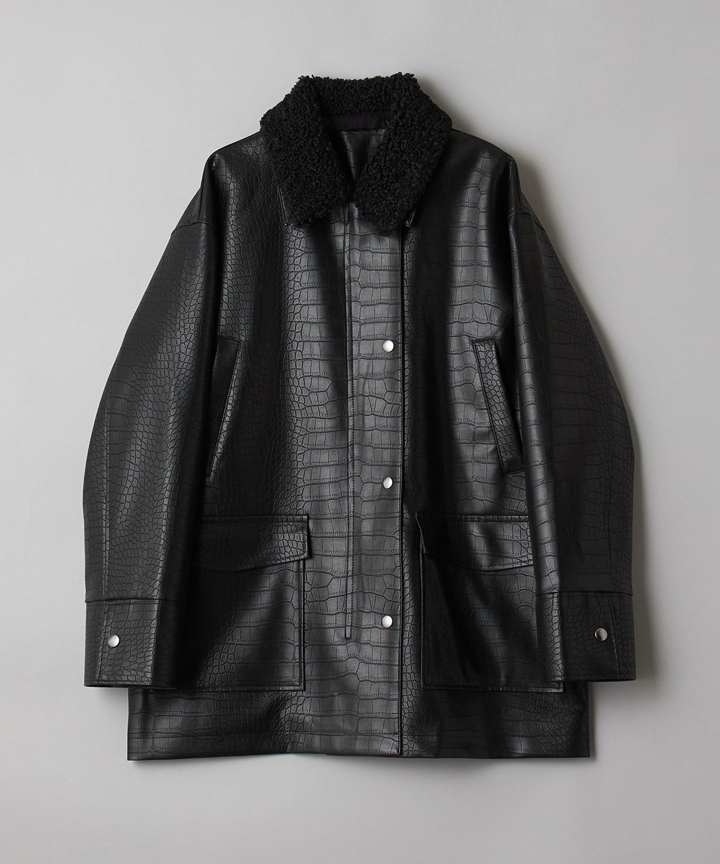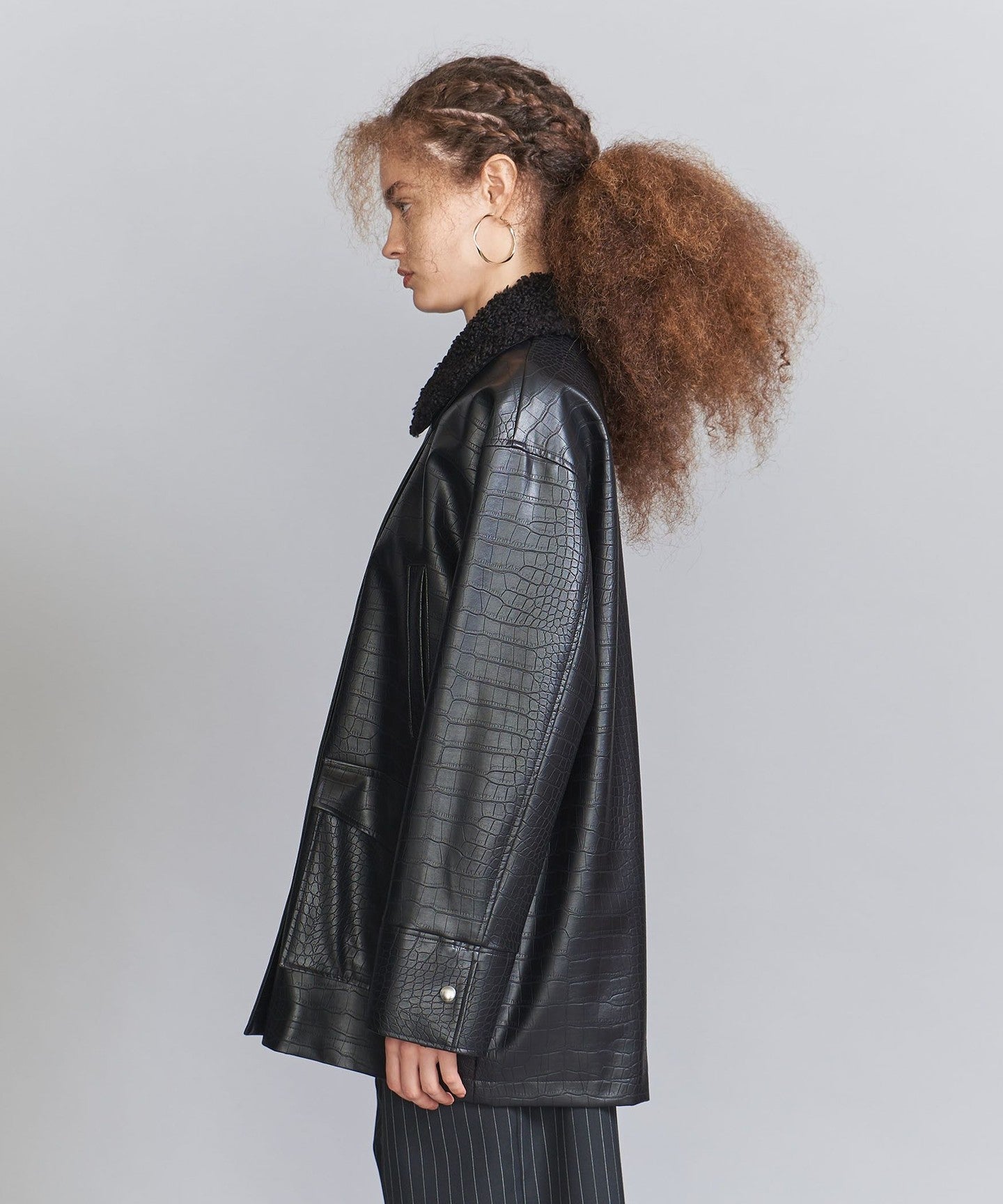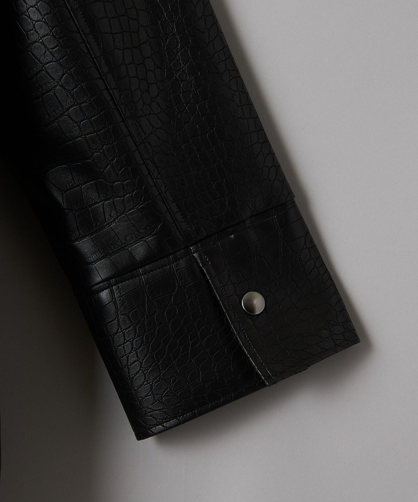 A leather-like jacket that gives a sophisticated and fashionable work look.