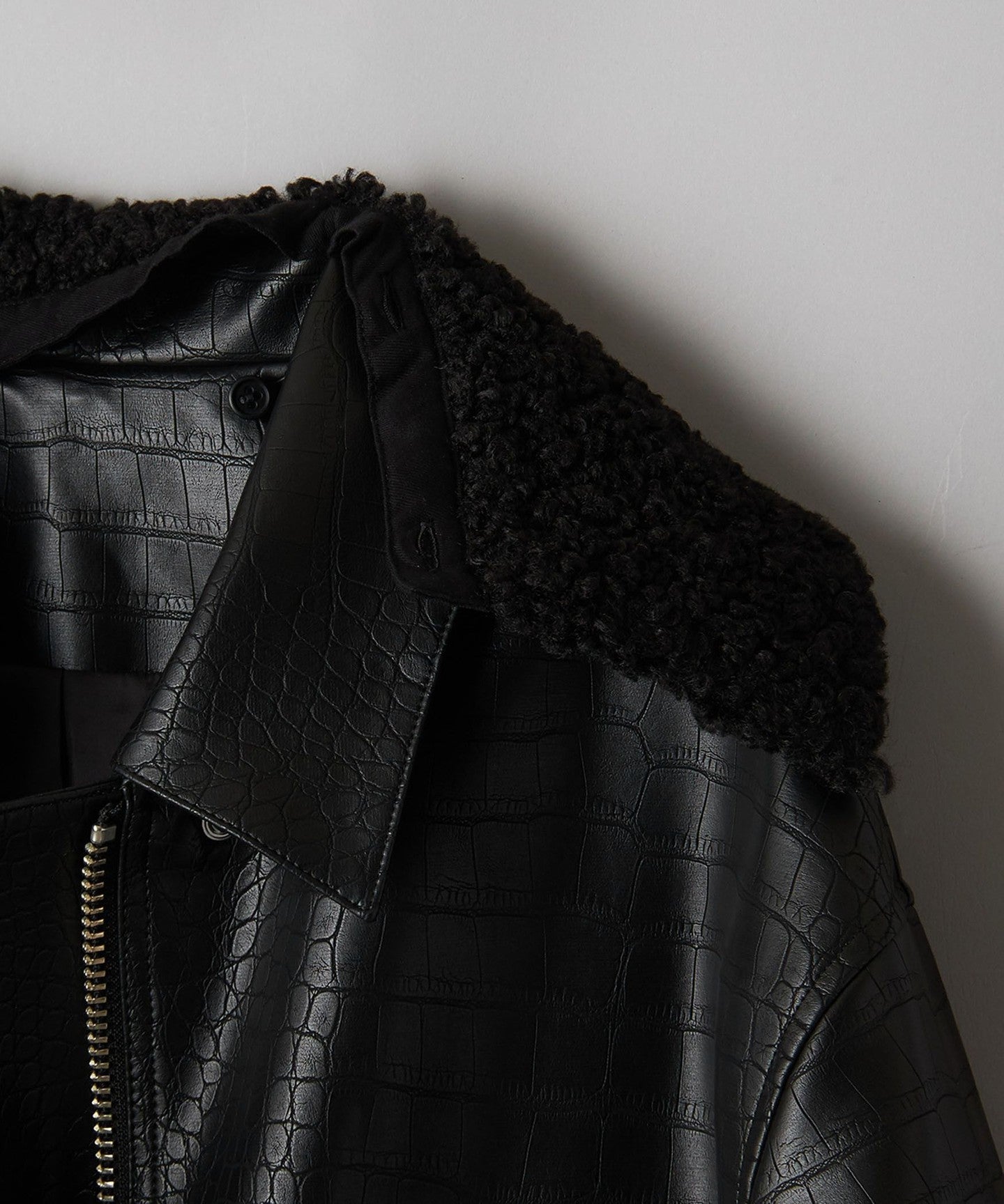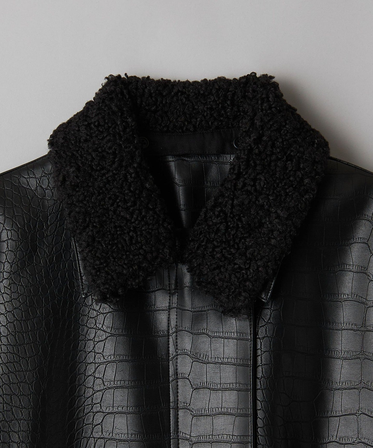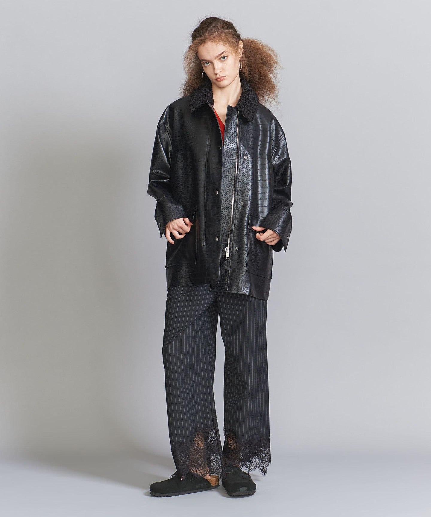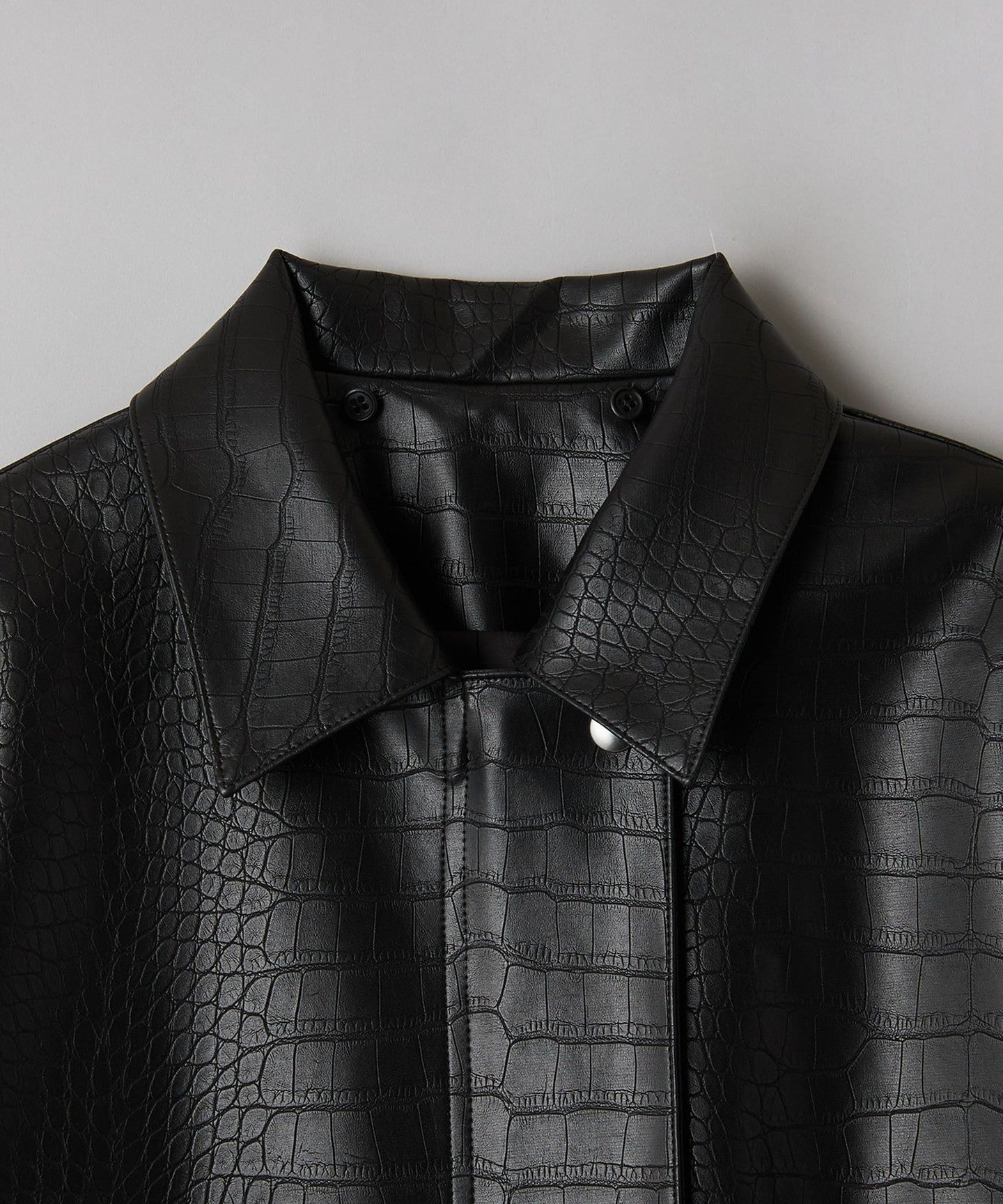 A leather-like jacket that gives a sophisticated and fashionable work look.