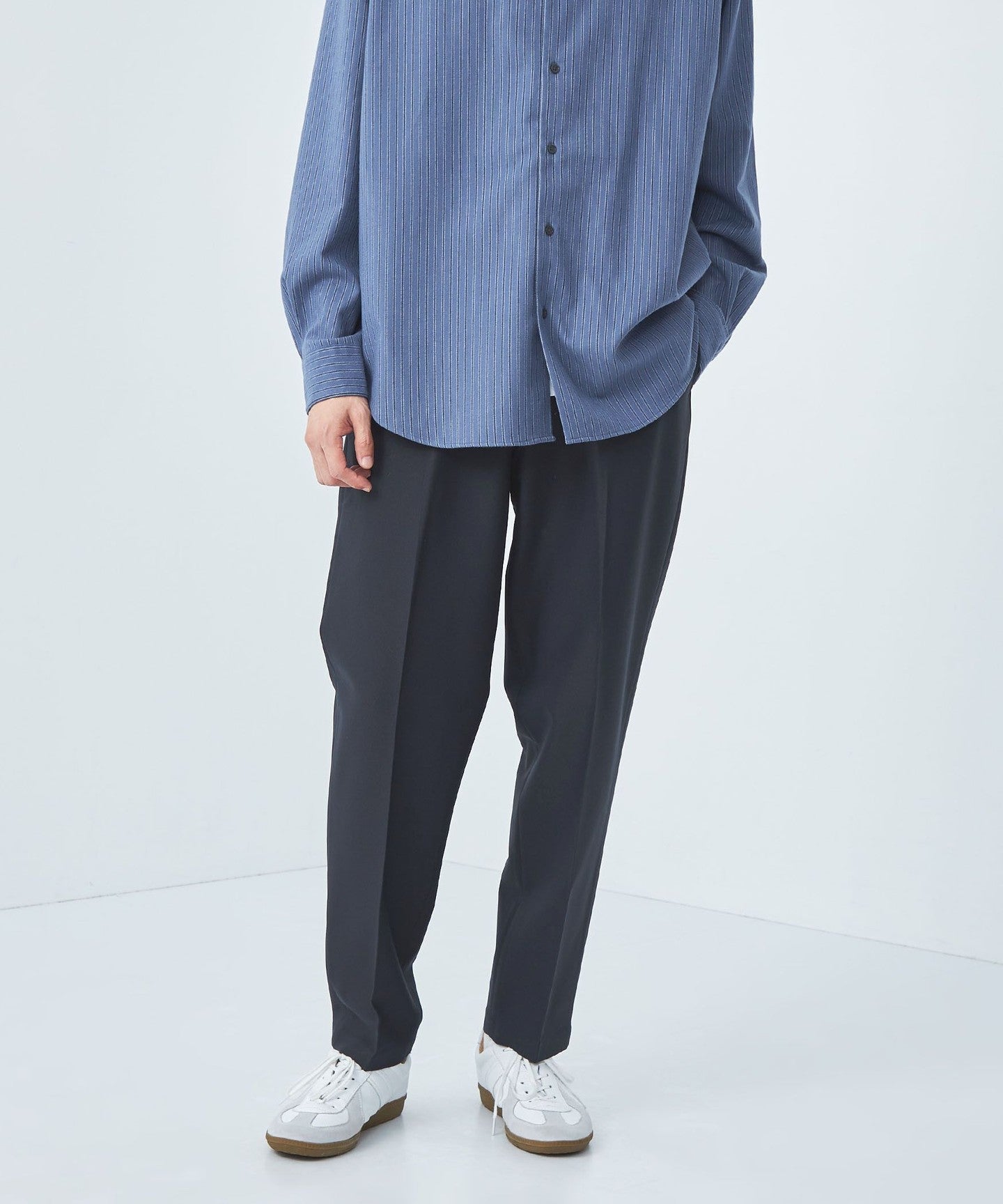 The beautiful silhouette with center crease gives an elegant look to tops such as sweatshirts and knitwear.
