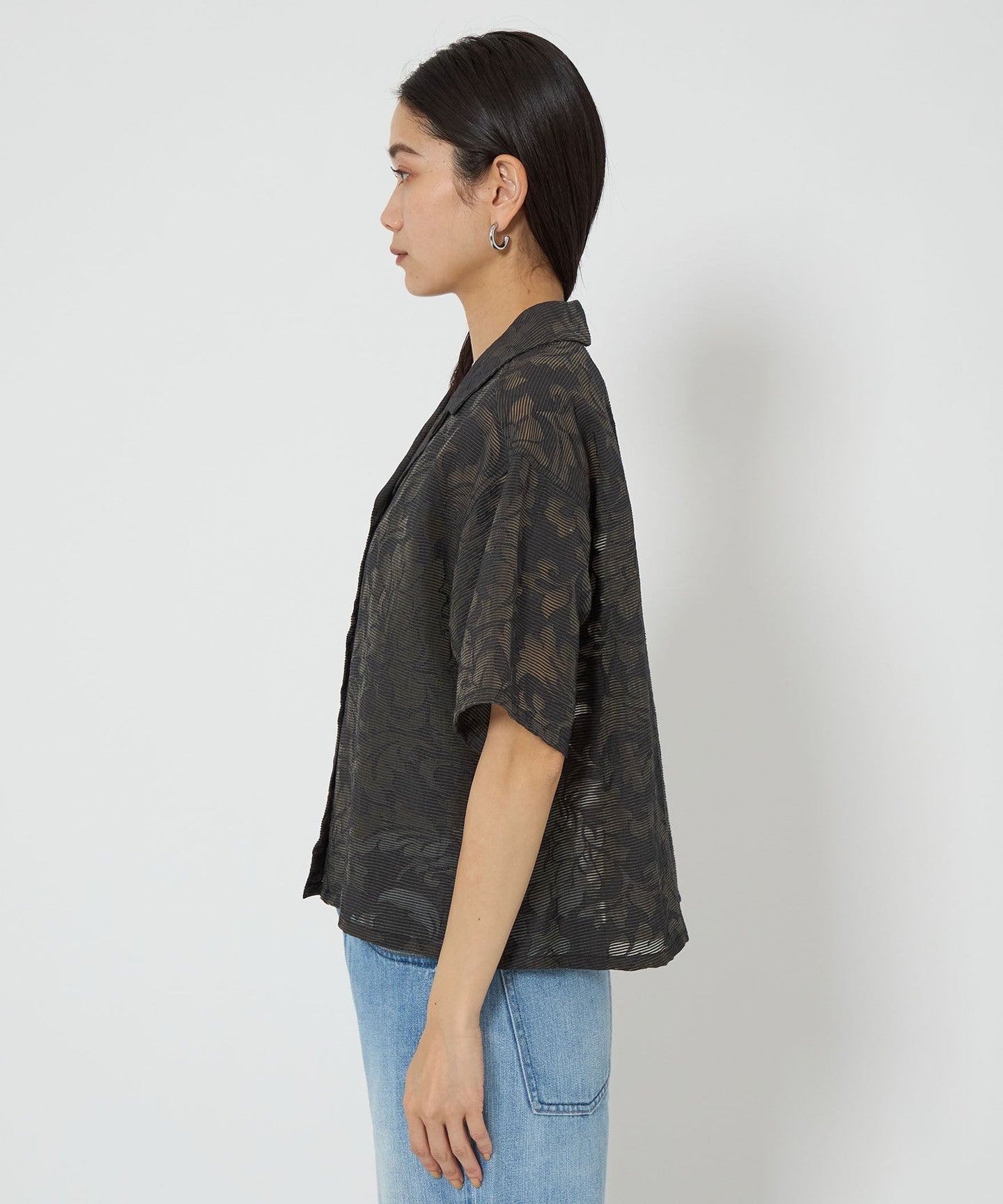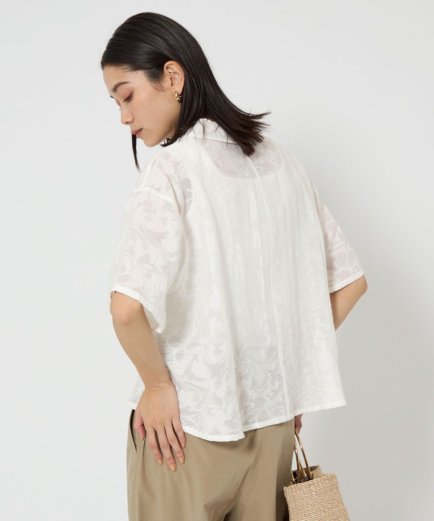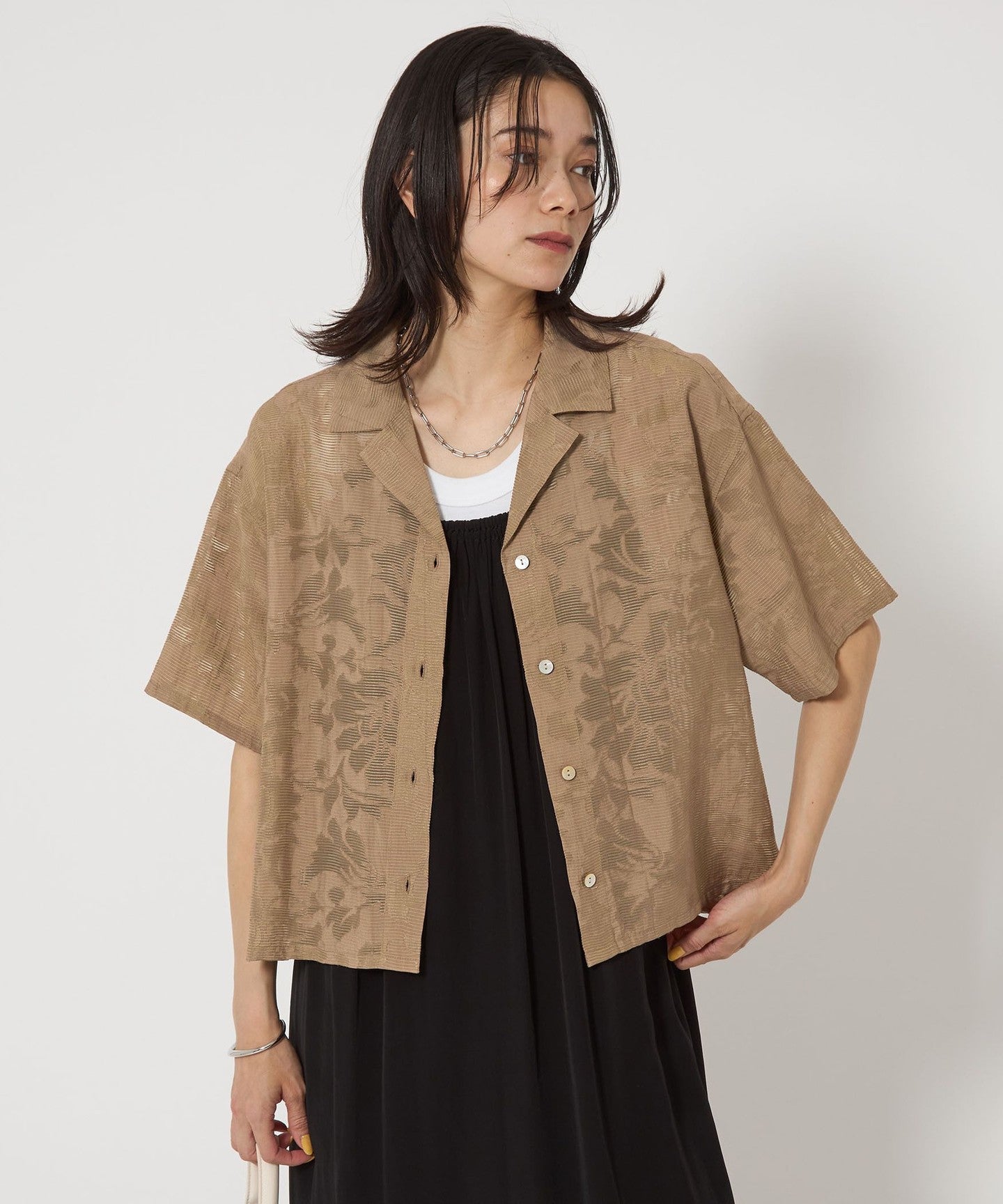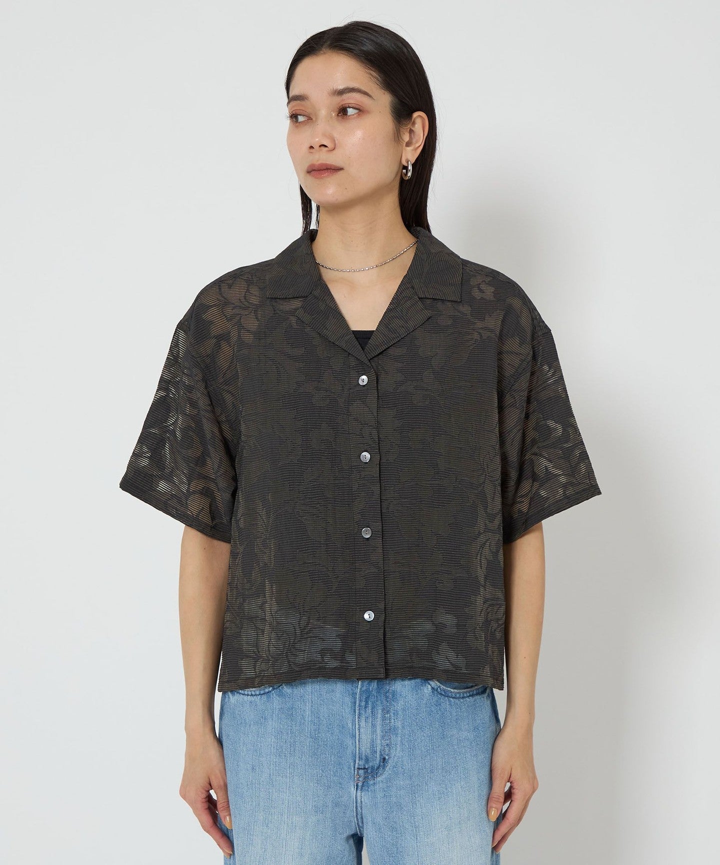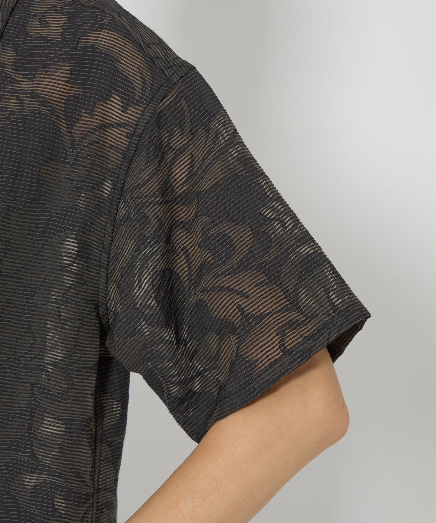 A sheer jacquard shirt that will add a touch of glamour to simple outfits on hot summer days.