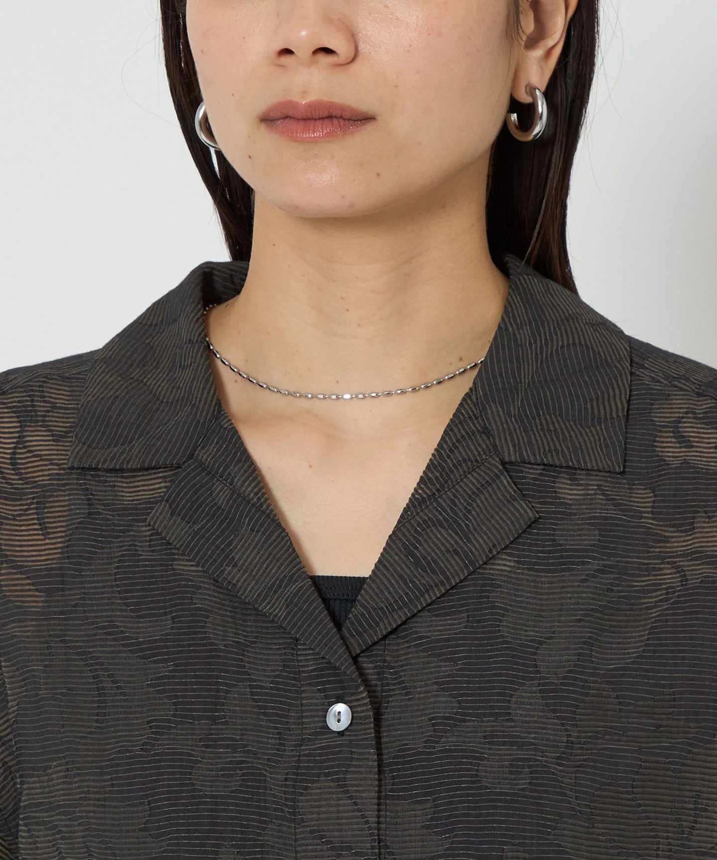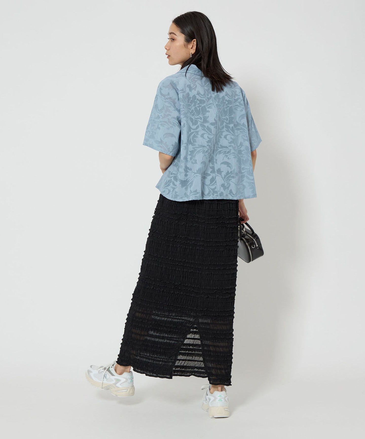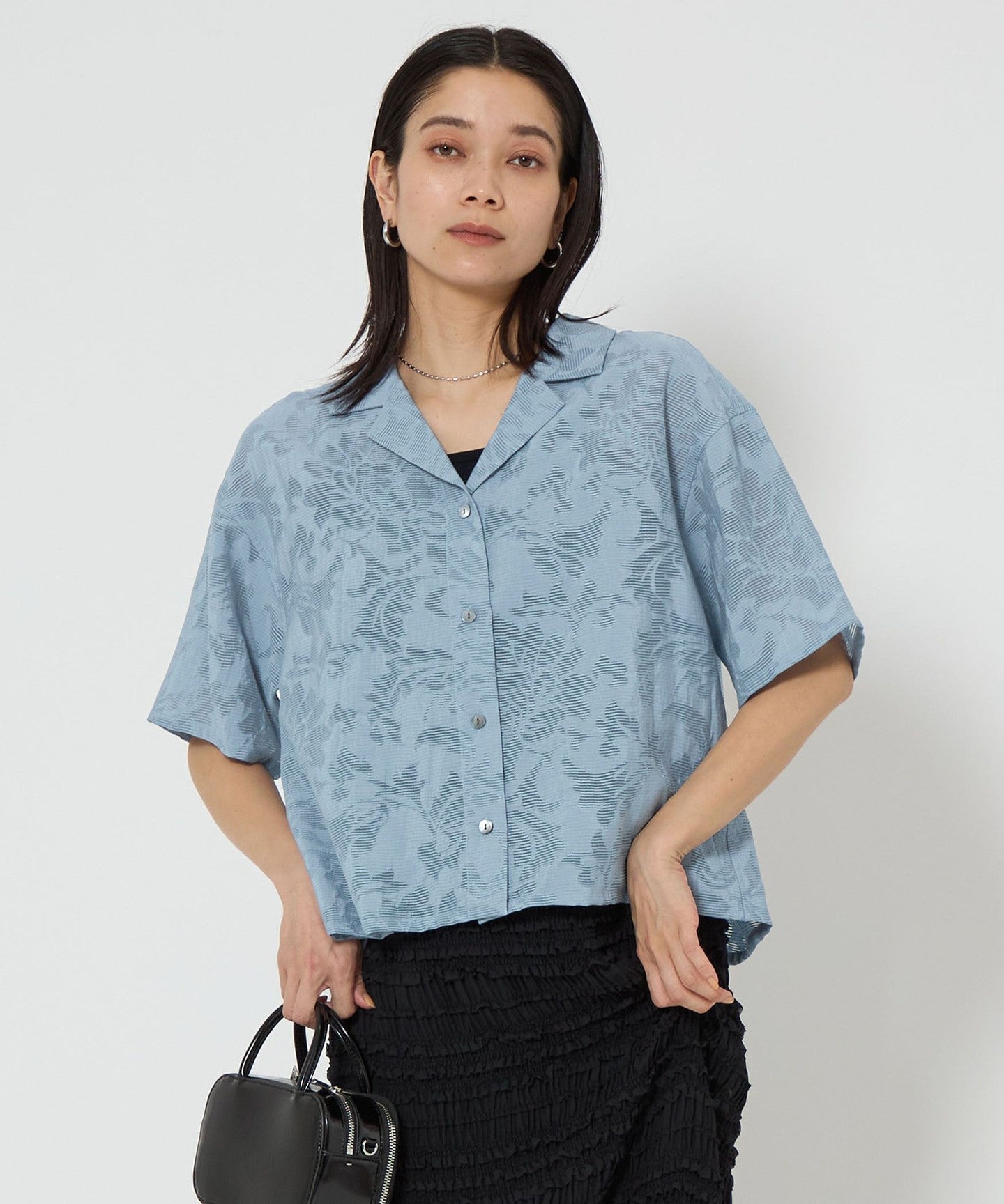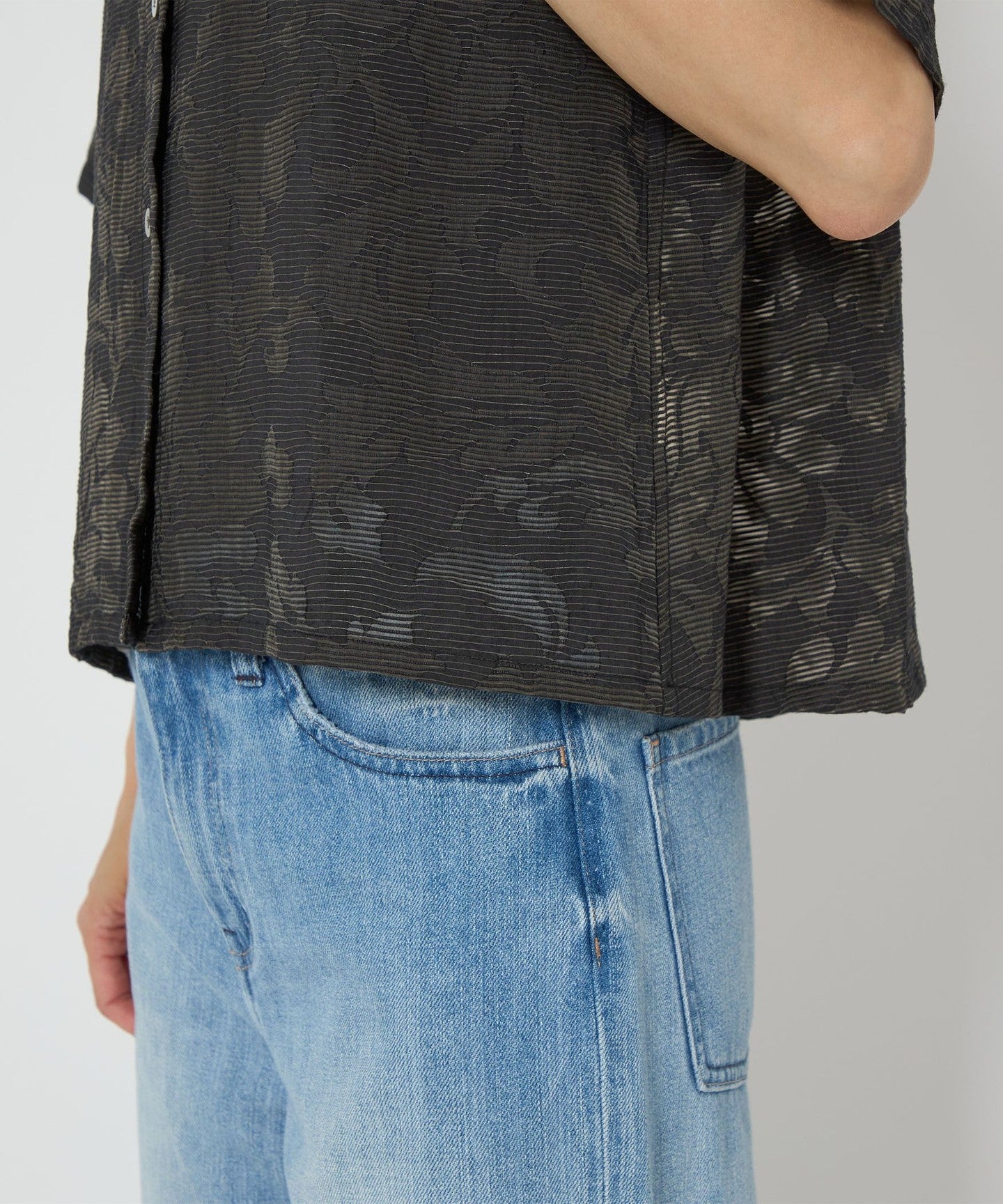 A sheer jacquard shirt that will add a touch of glamour to simple outfits on hot summer days.