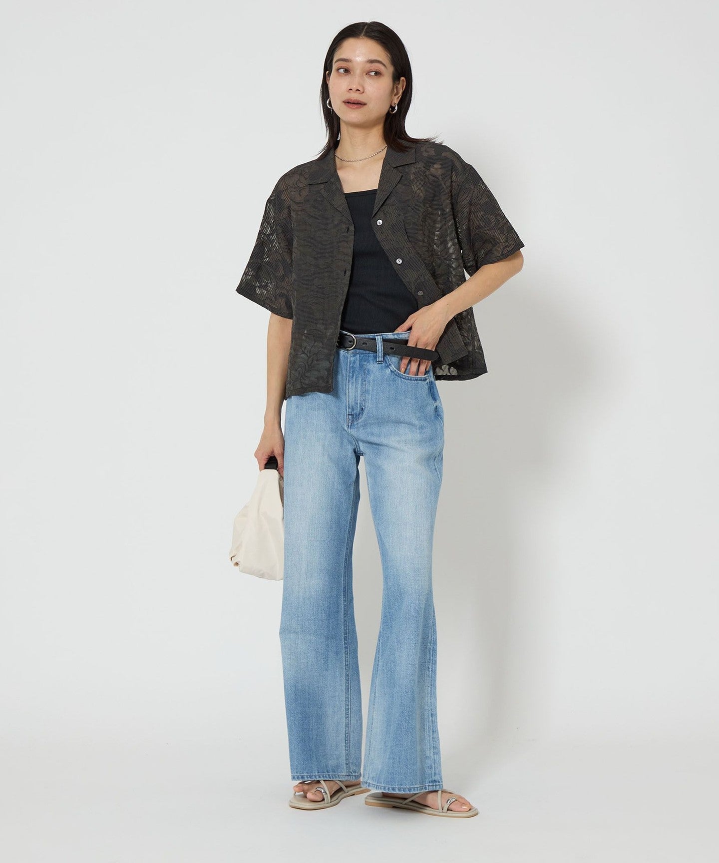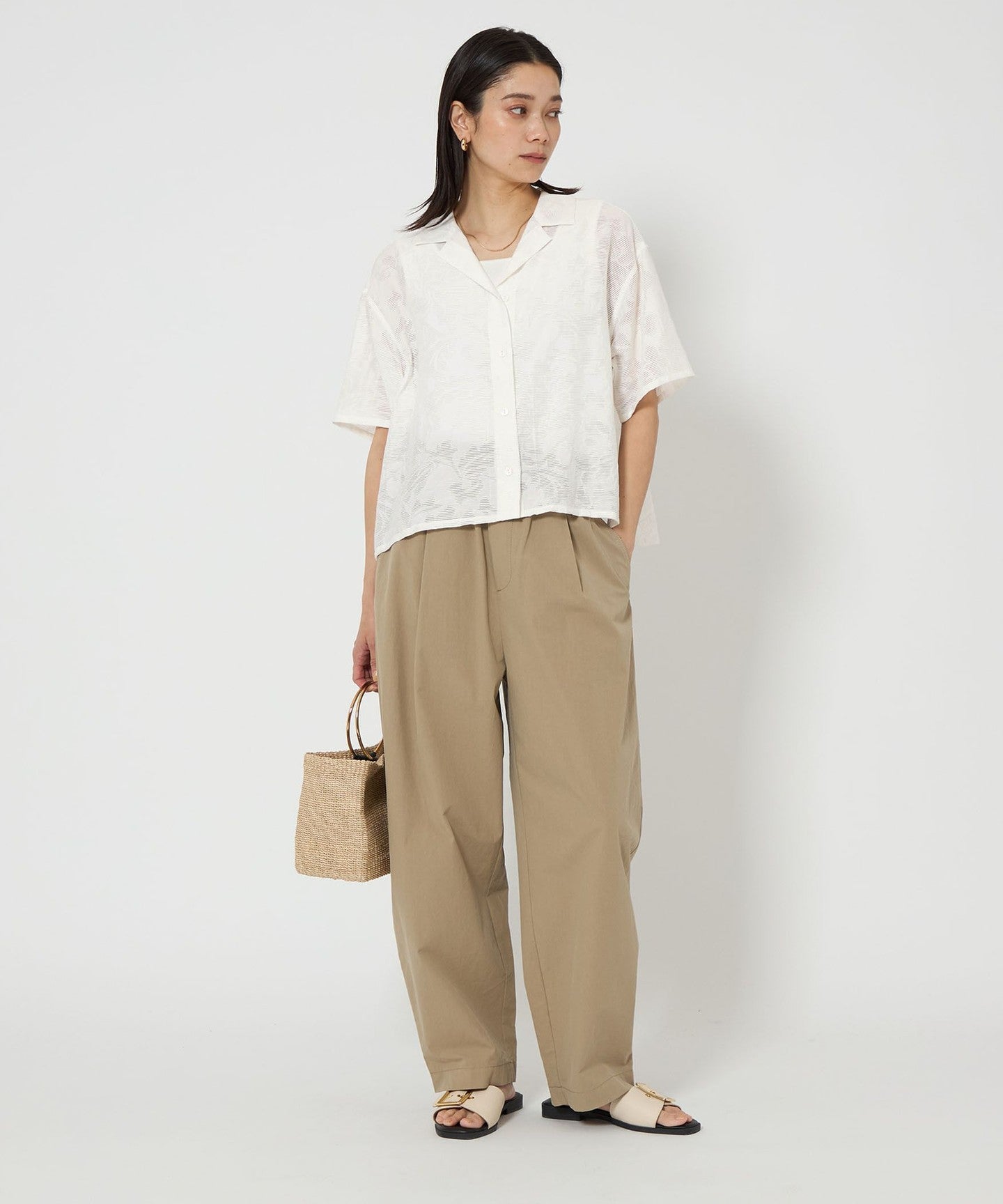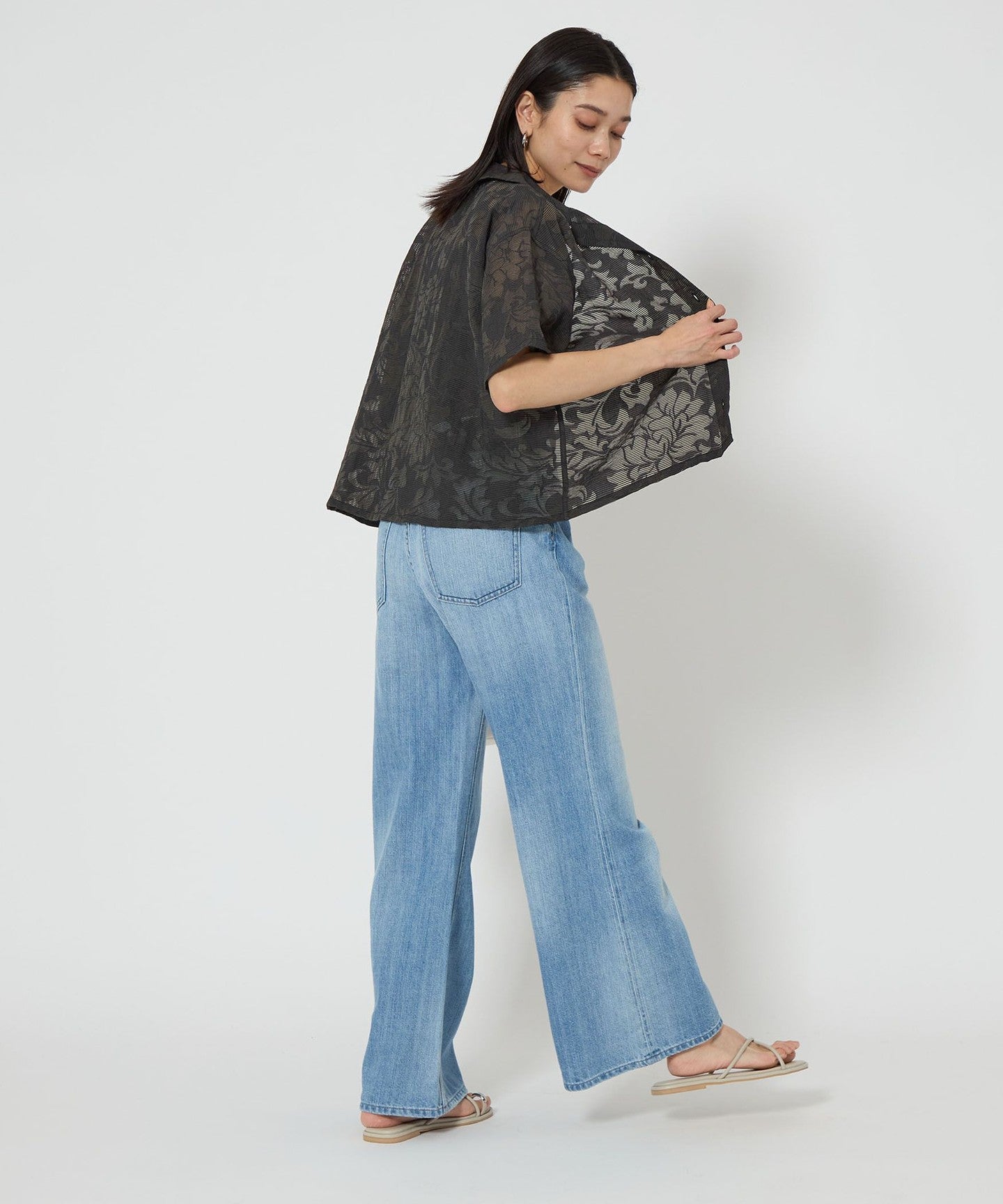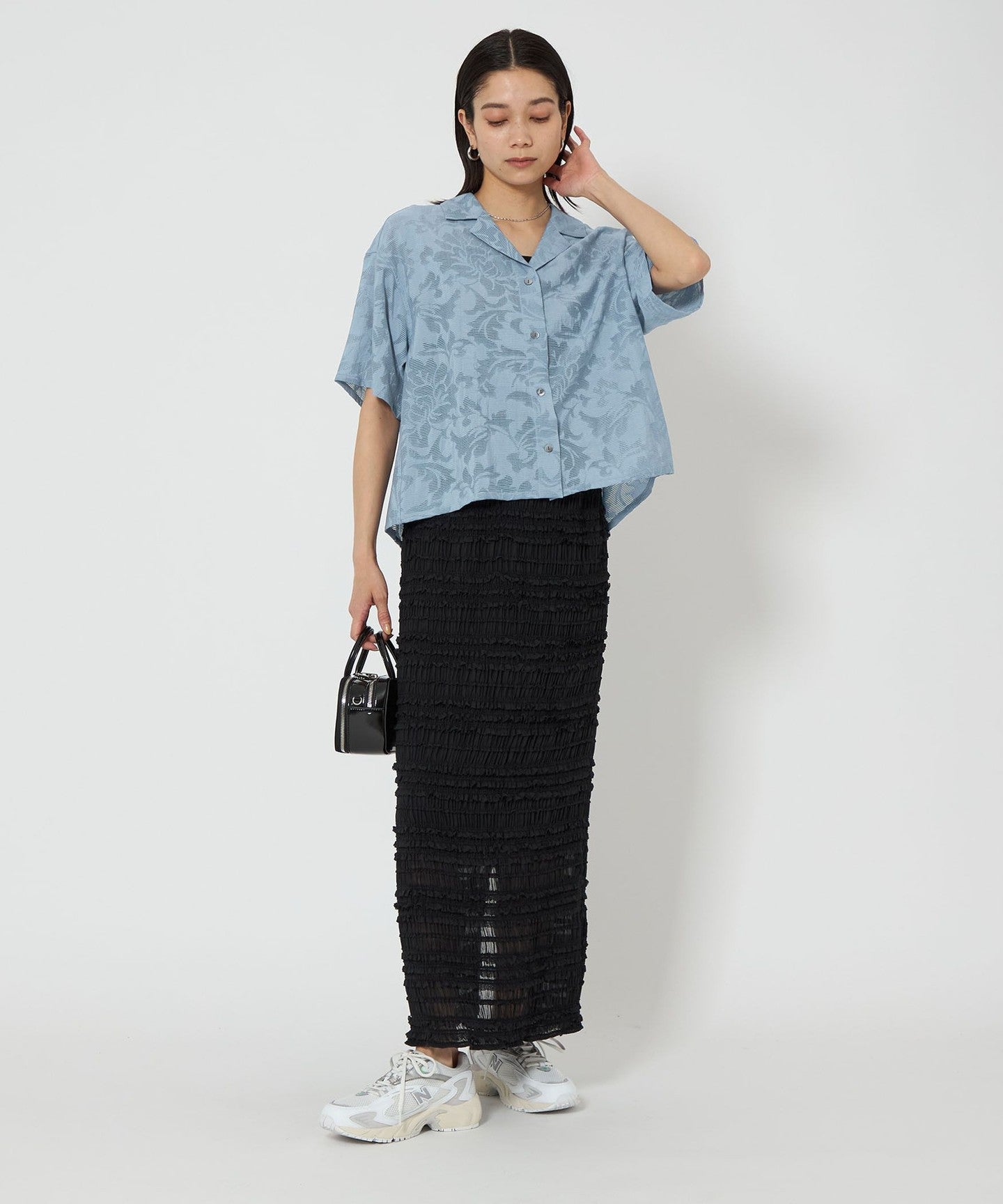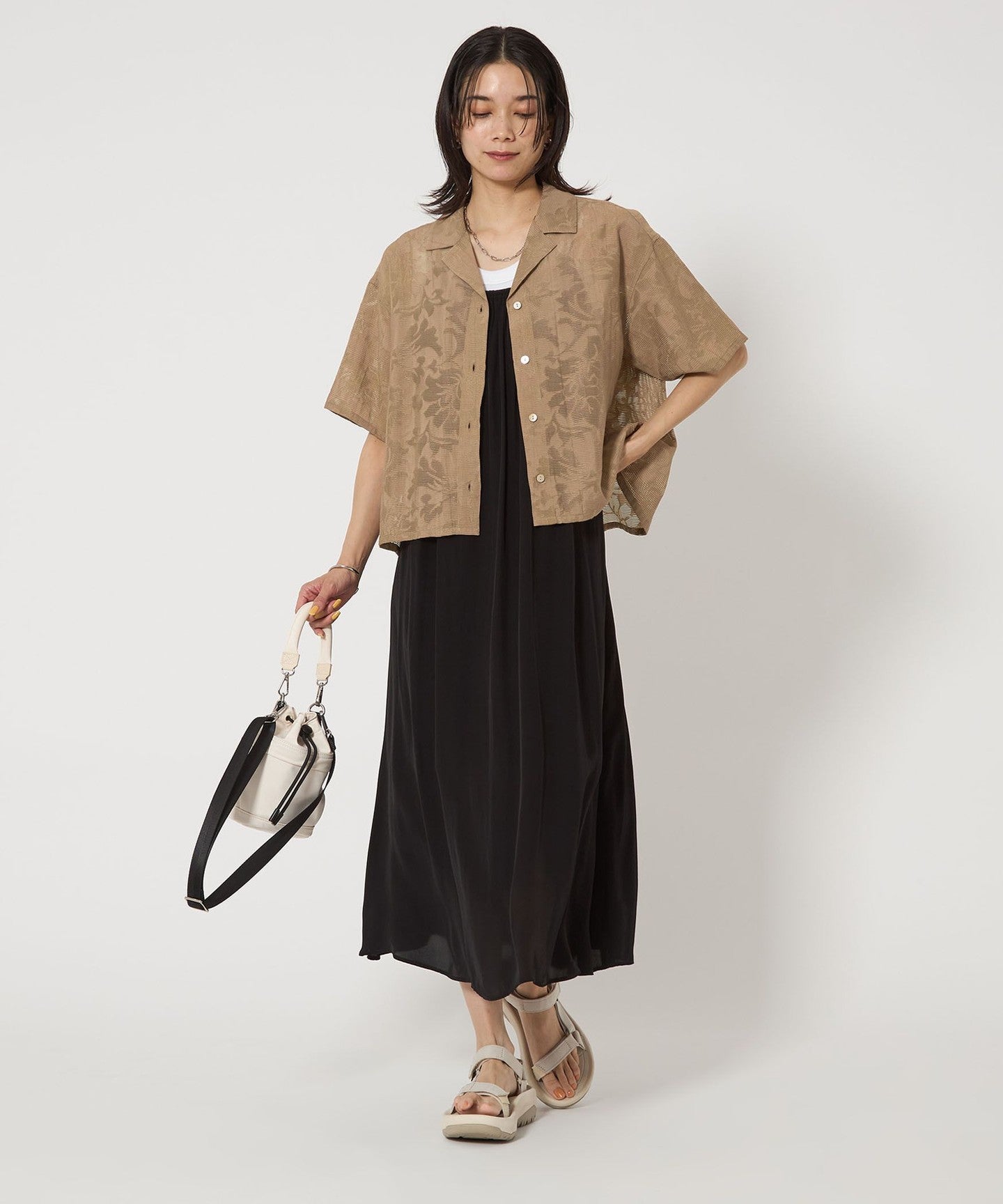 A sheer jacquard shirt that will add a touch of glamour to simple outfits on hot summer days.