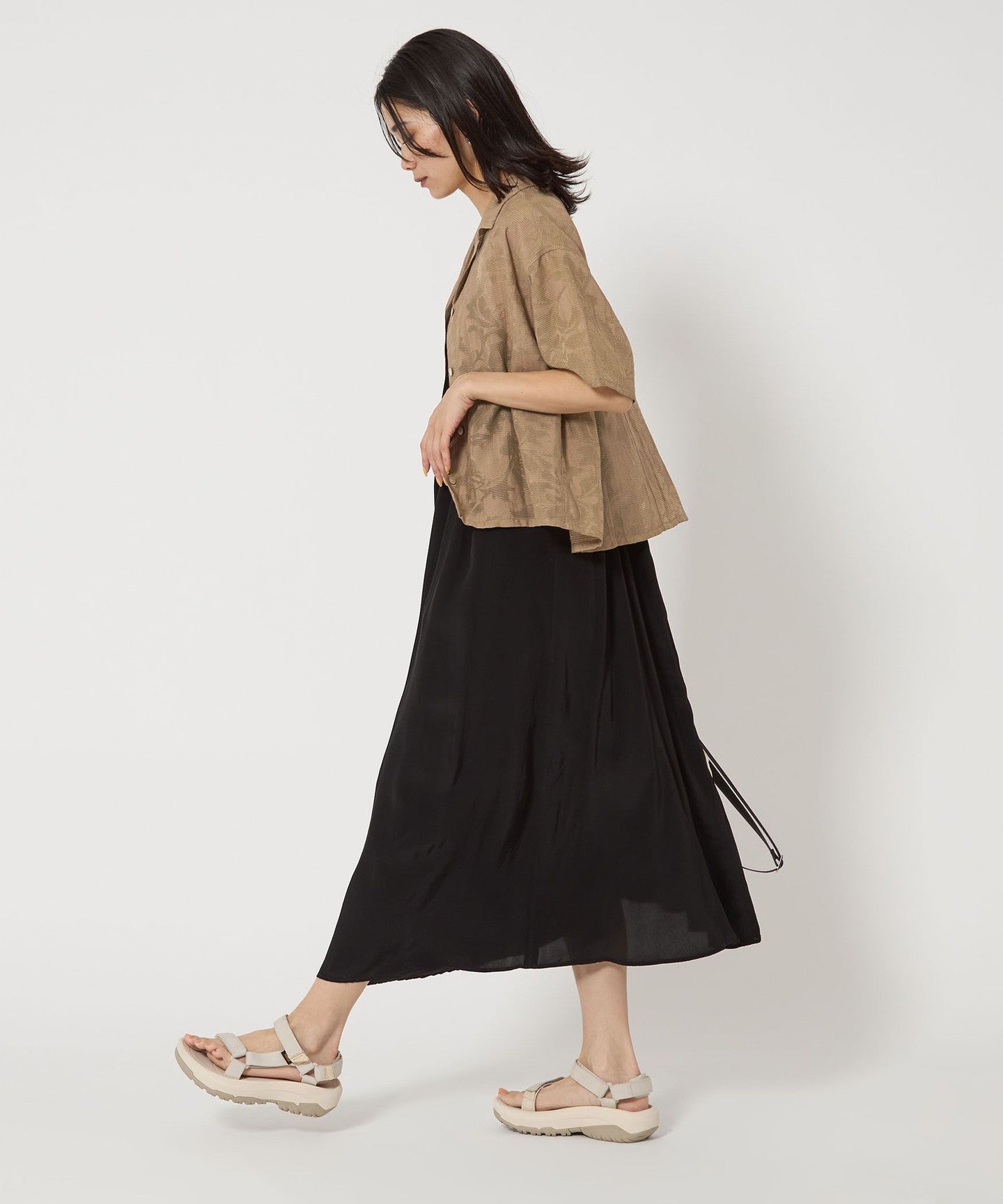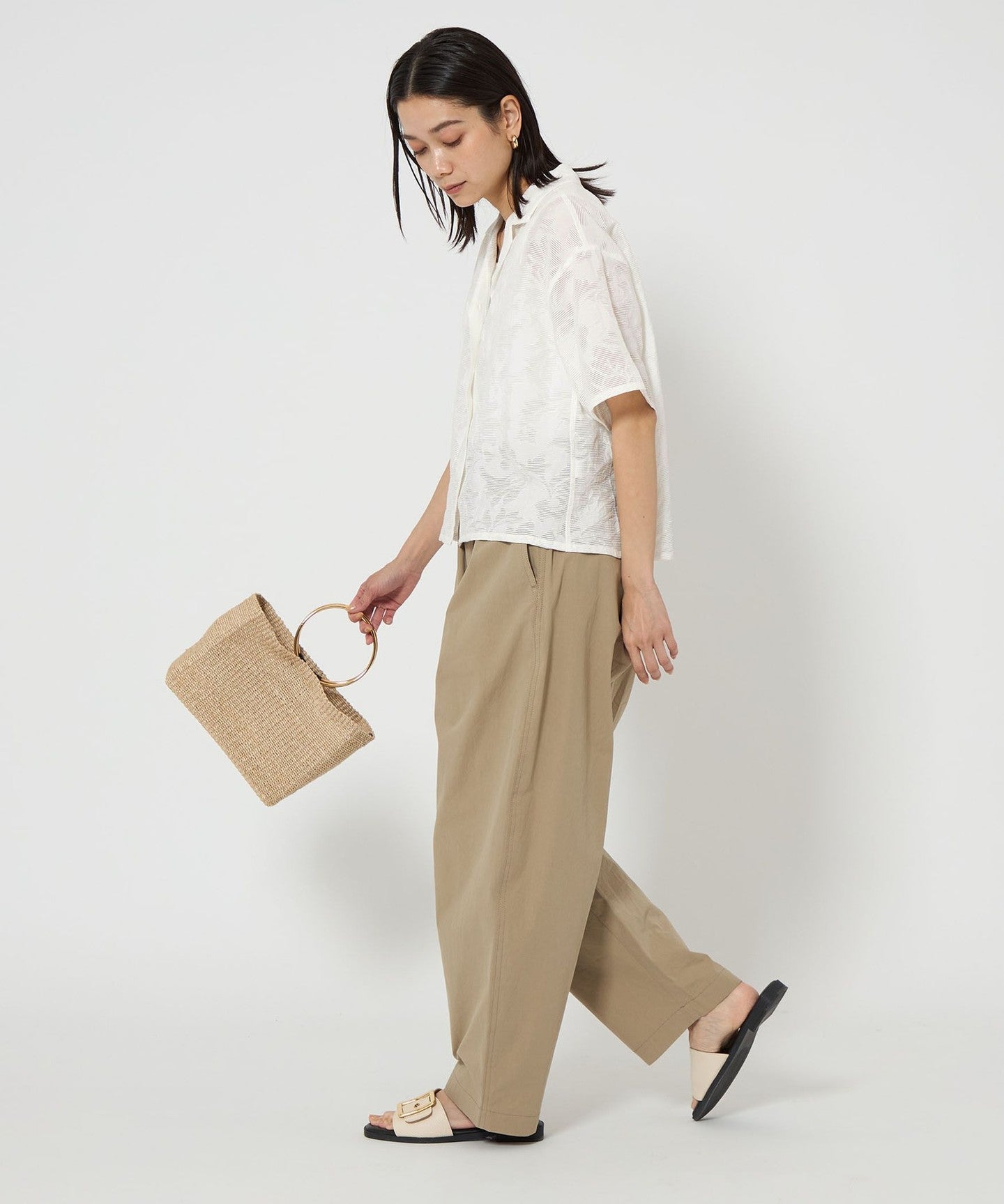 The boxy silhouette goes well with voluminous bottoms such as wide pants and curved bottoms.