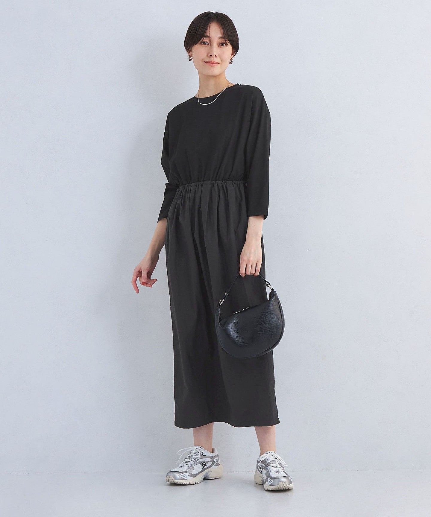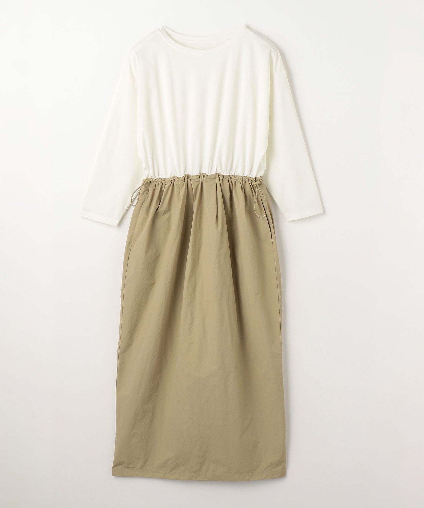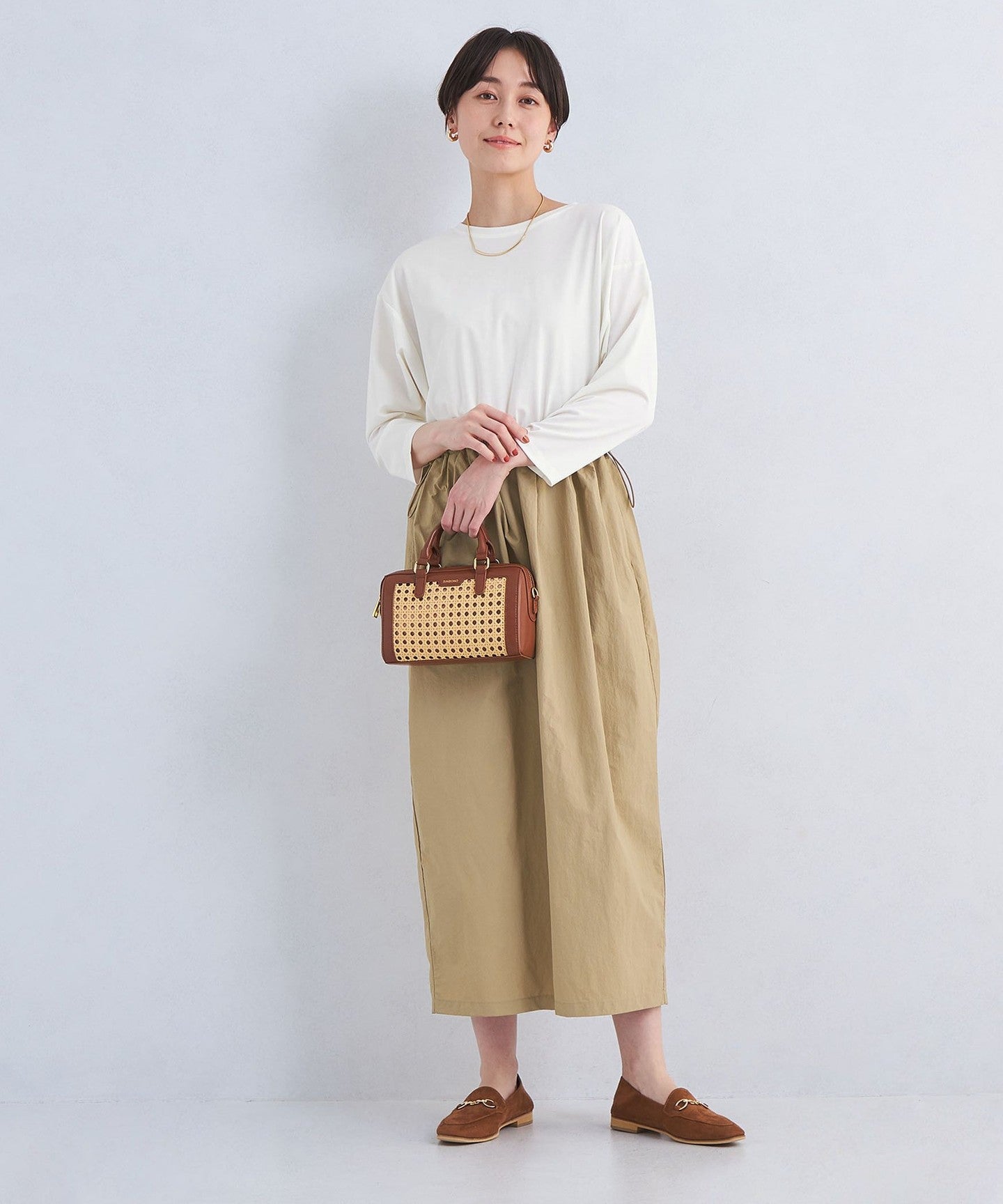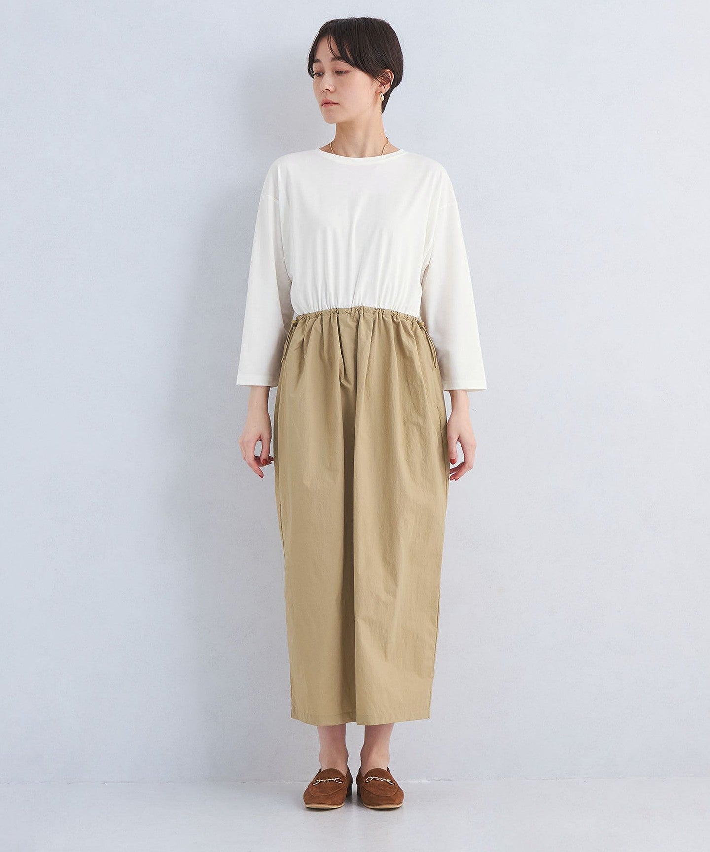 The cut-and-sew part of the top also has dolman sleeves that give it a sense of form, while creating a casual look that is not too sweet.