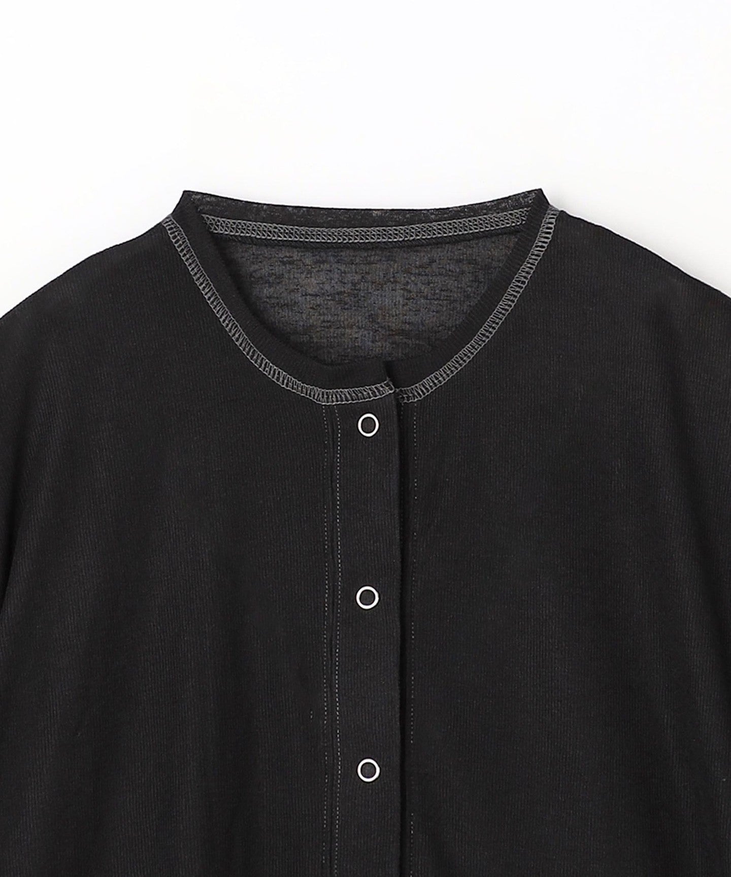 We use a ribbed cut-and-sew top with a sheer feel that is not too neat and has a slubby texture.