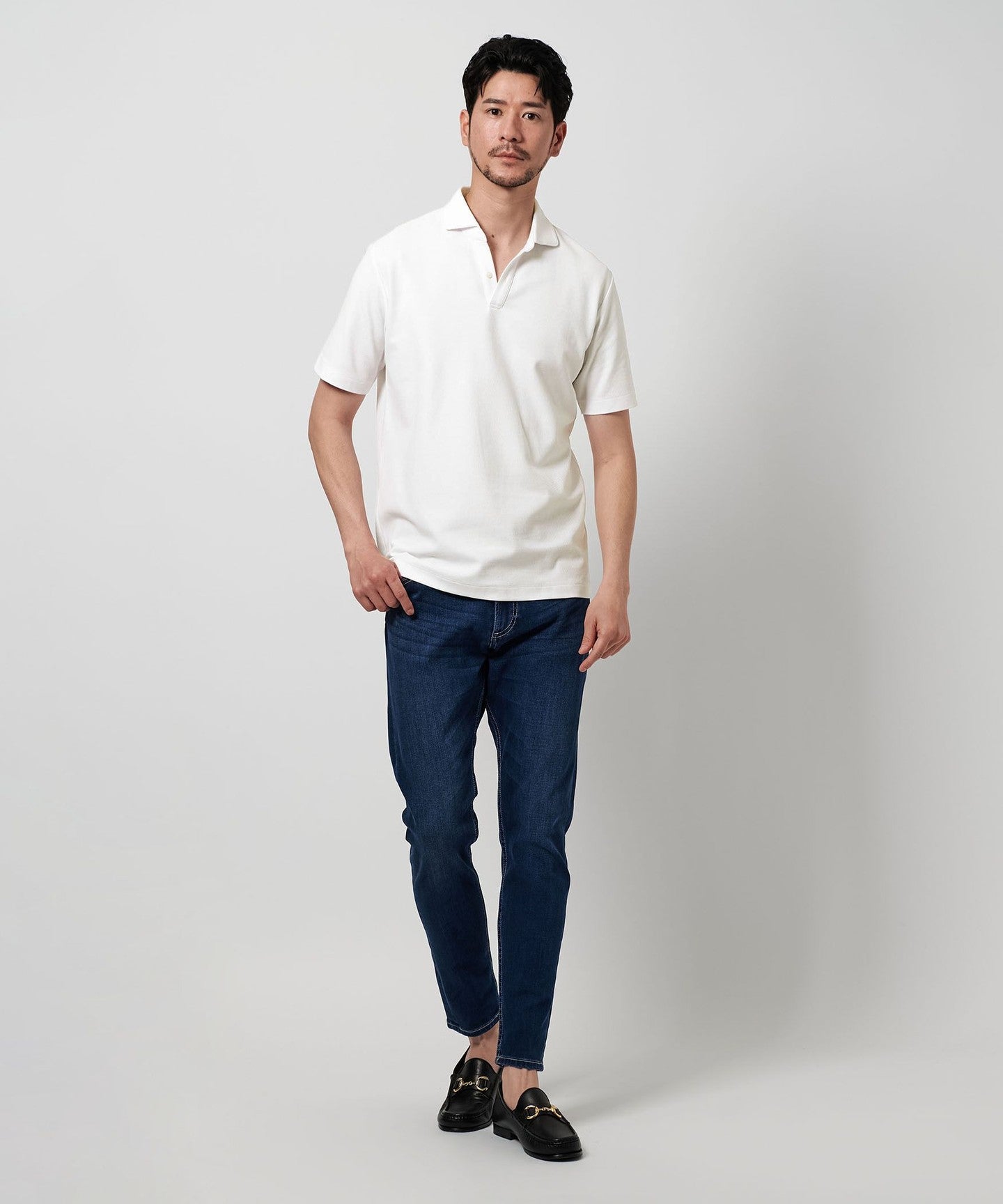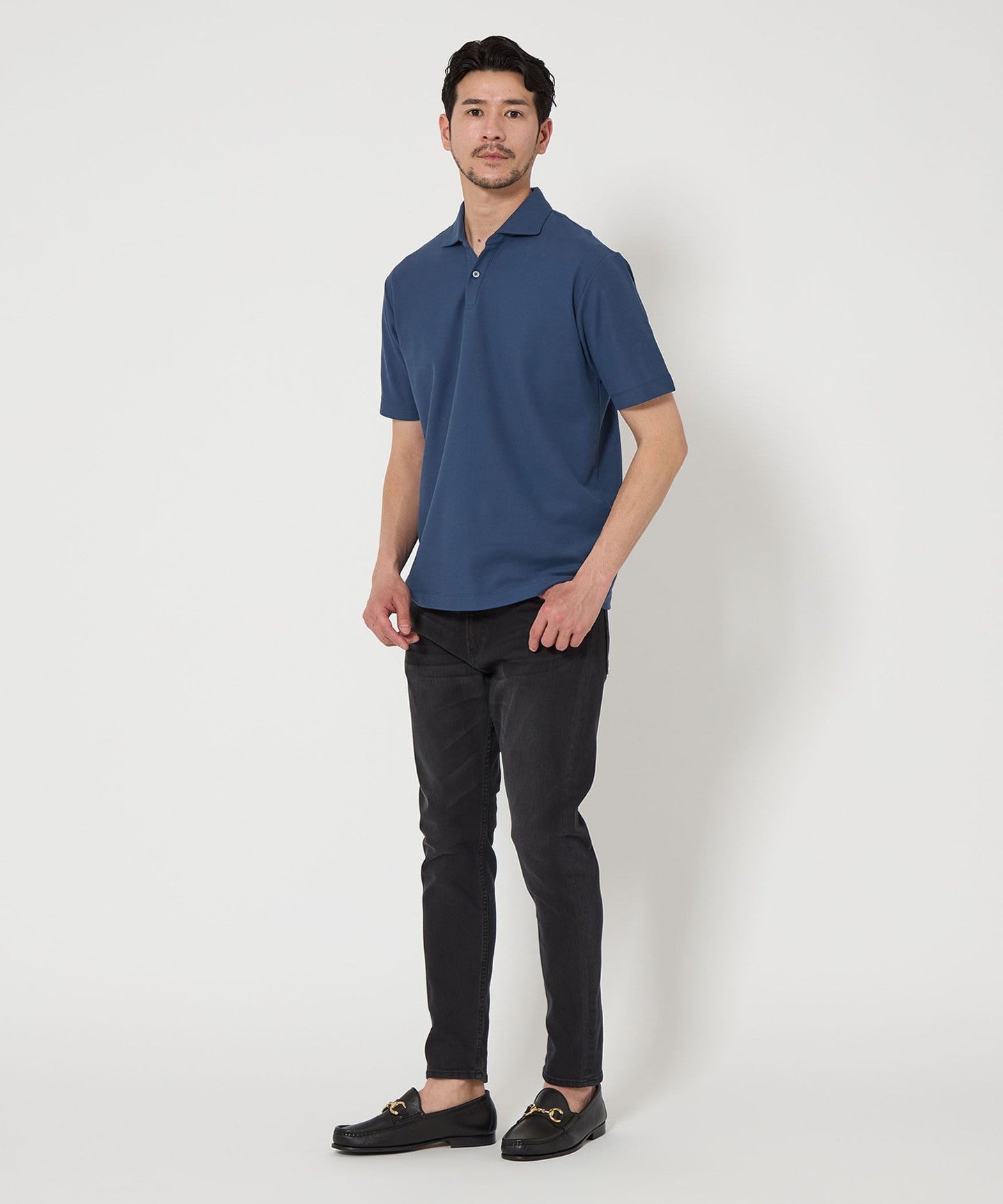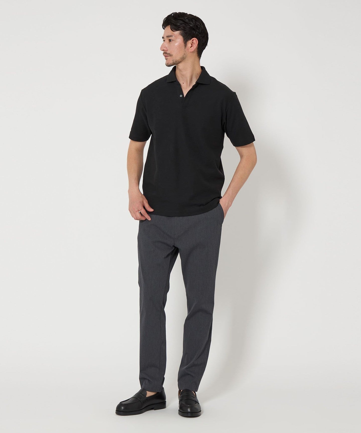 It has a relaxed feel that polo shirts don't have, and it goes well with any slacks you already own, but you can also create a refreshing casual summer look by pairing it with slim denim pants.