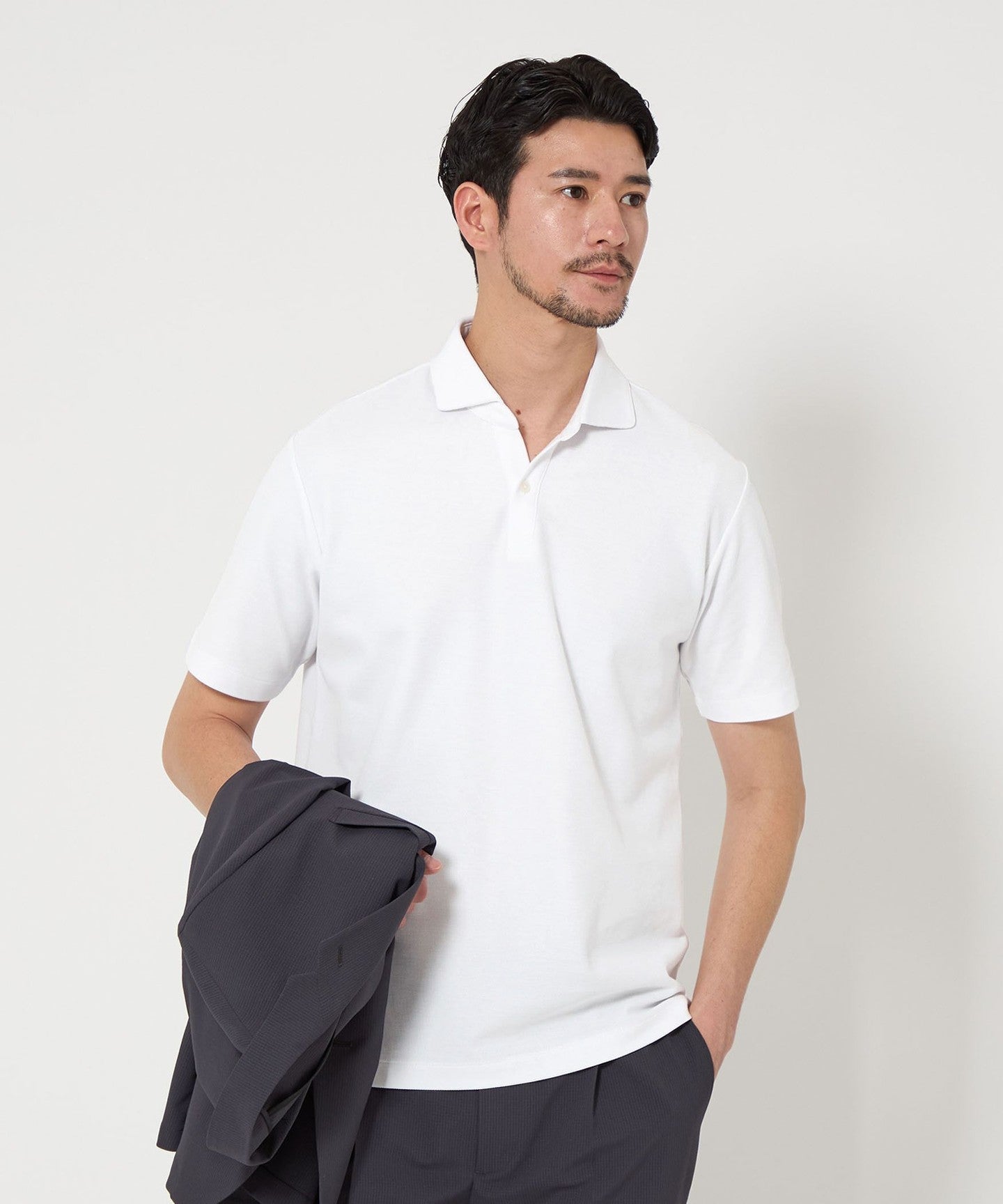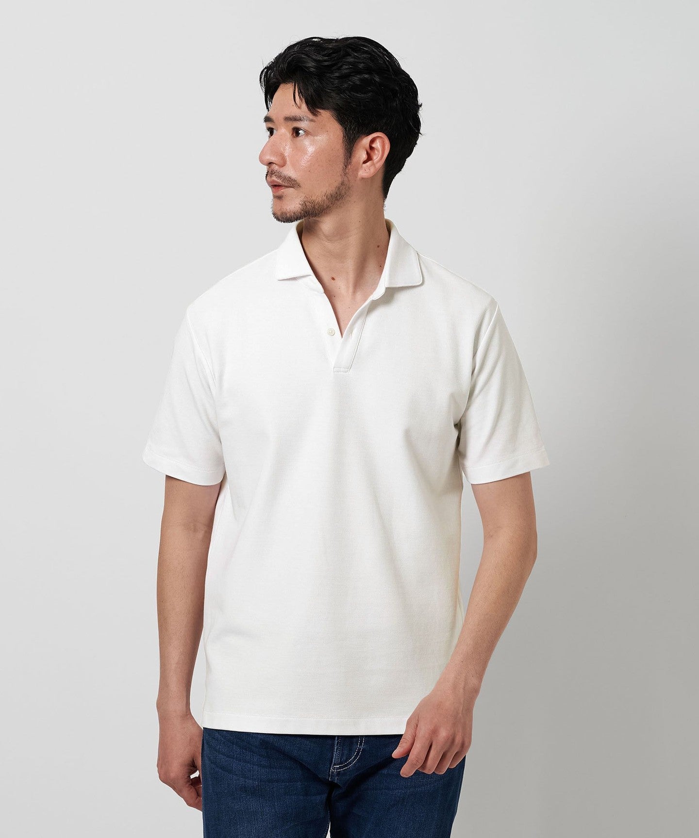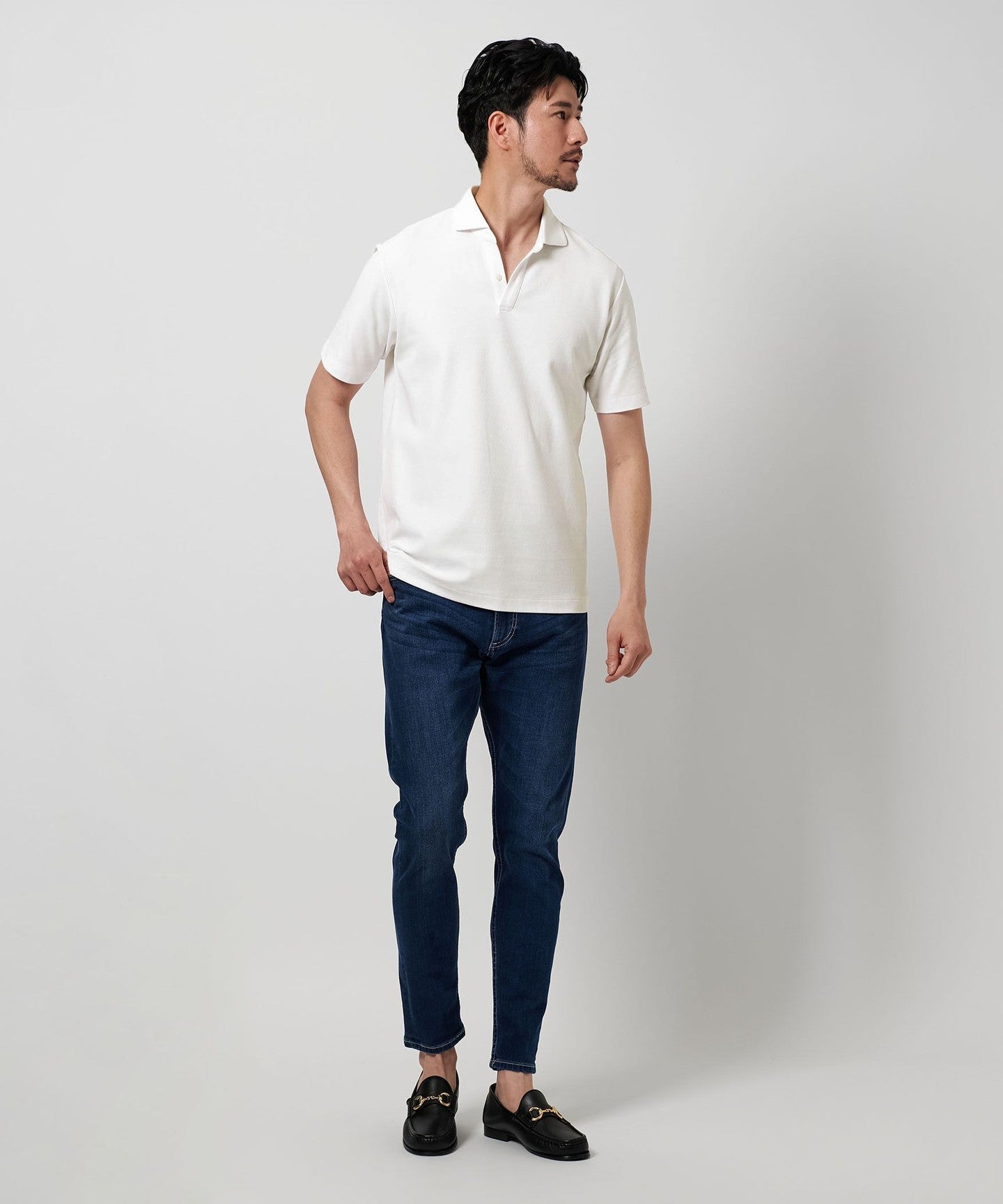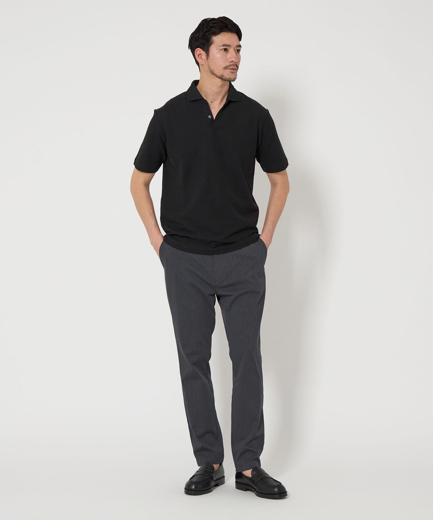 It has a relaxed feel that polo shirts don't have, and it goes well with any slacks you already own, but you can also create a refreshing casual summer look by pairing it with slim denim pants.