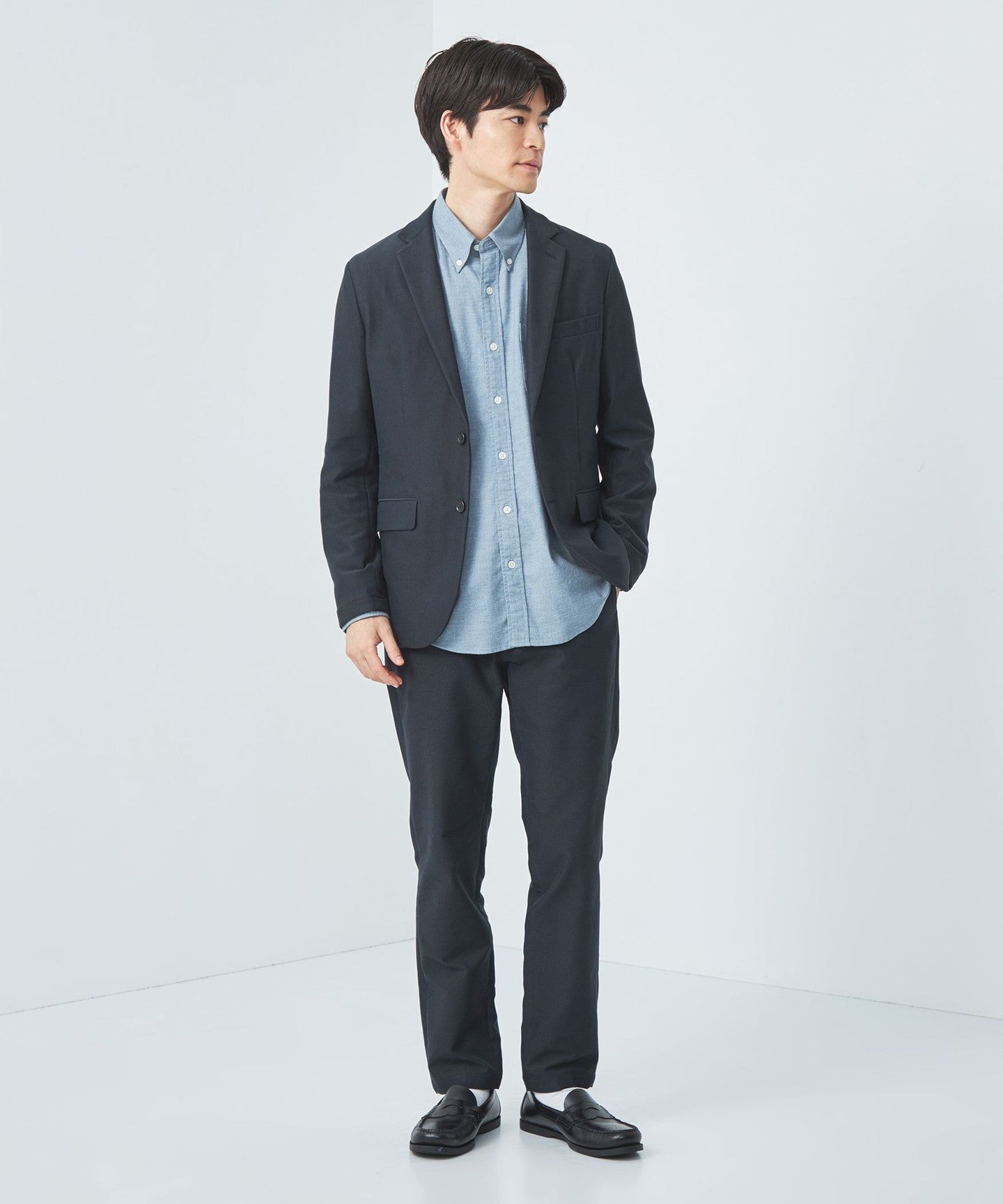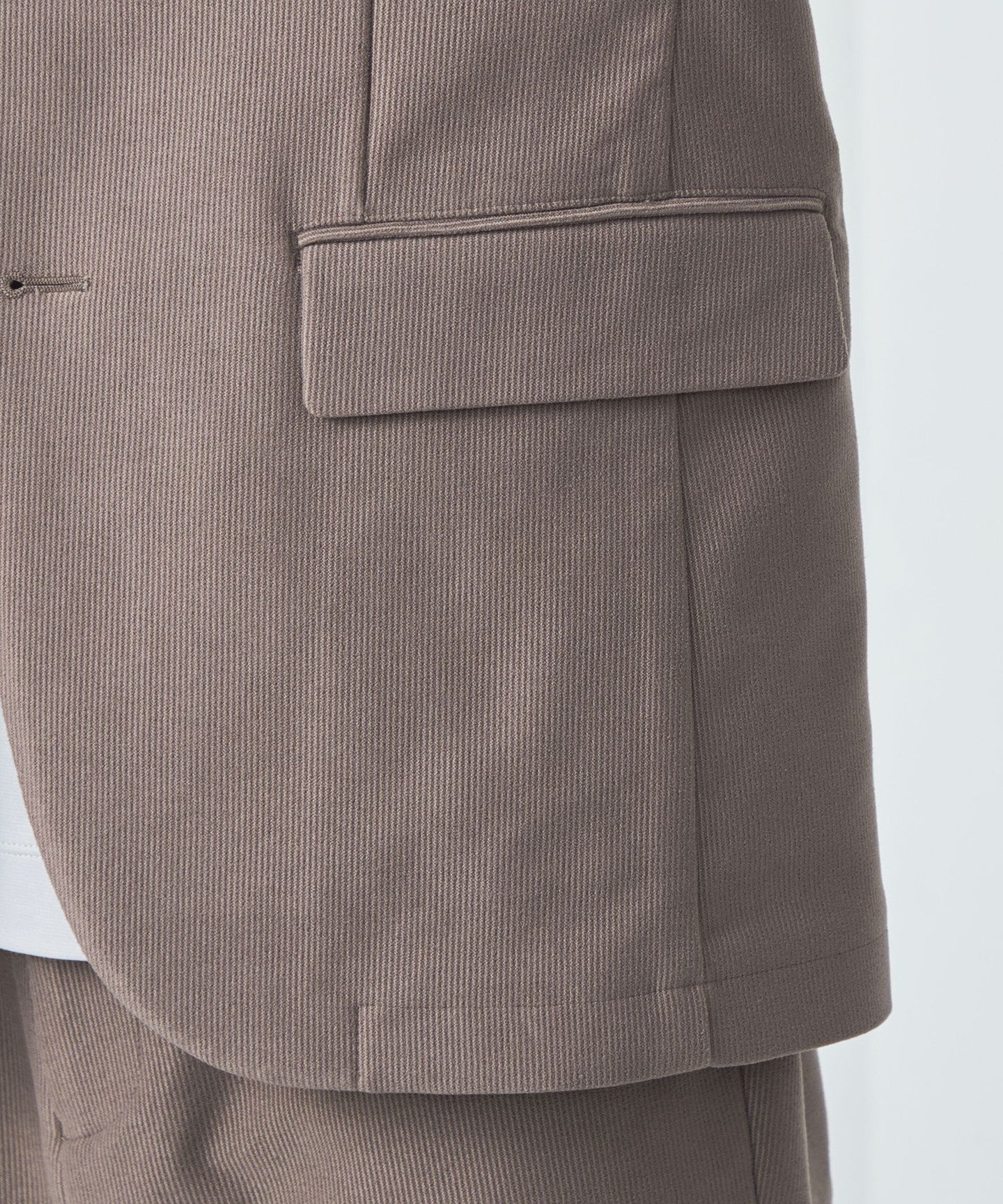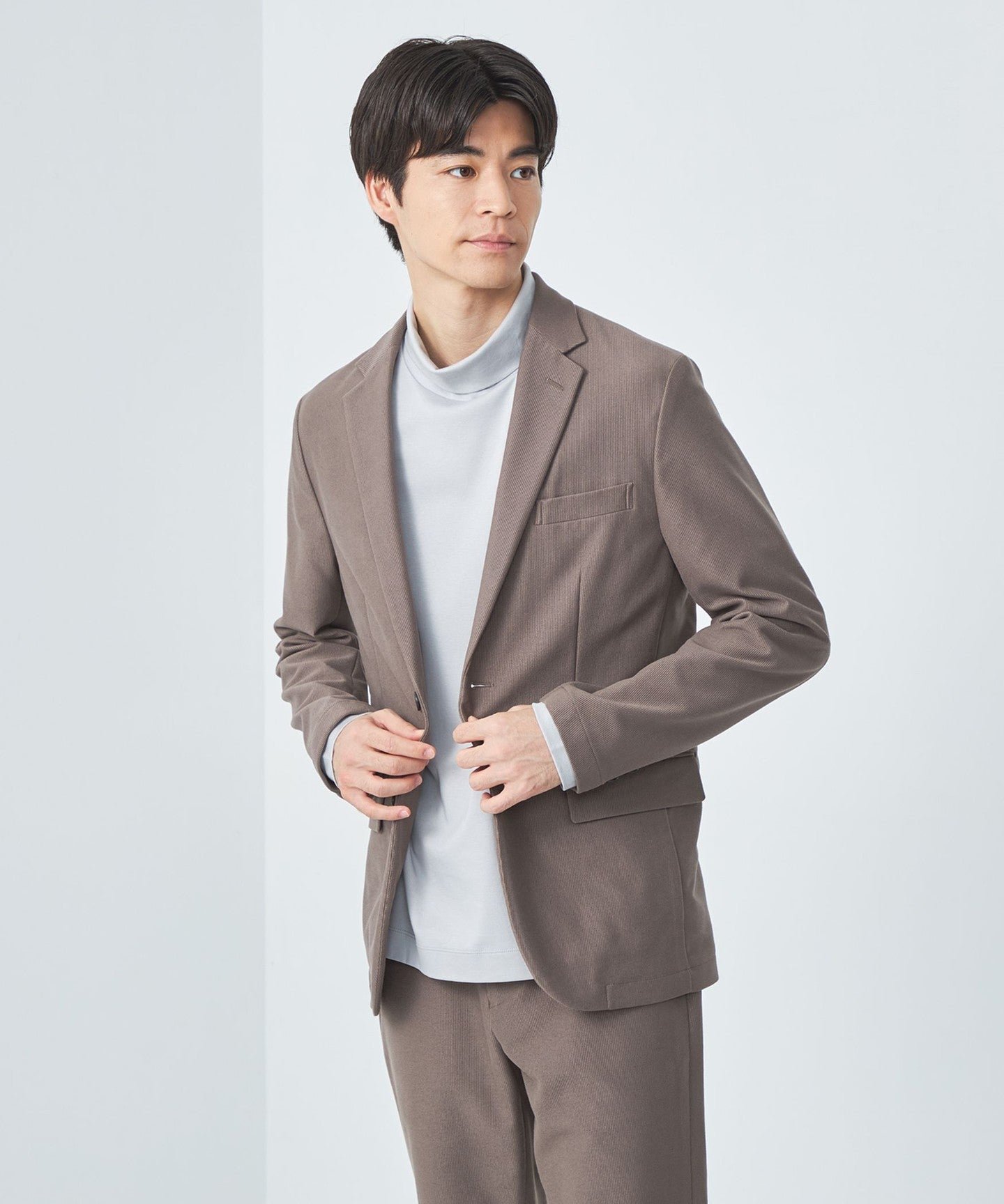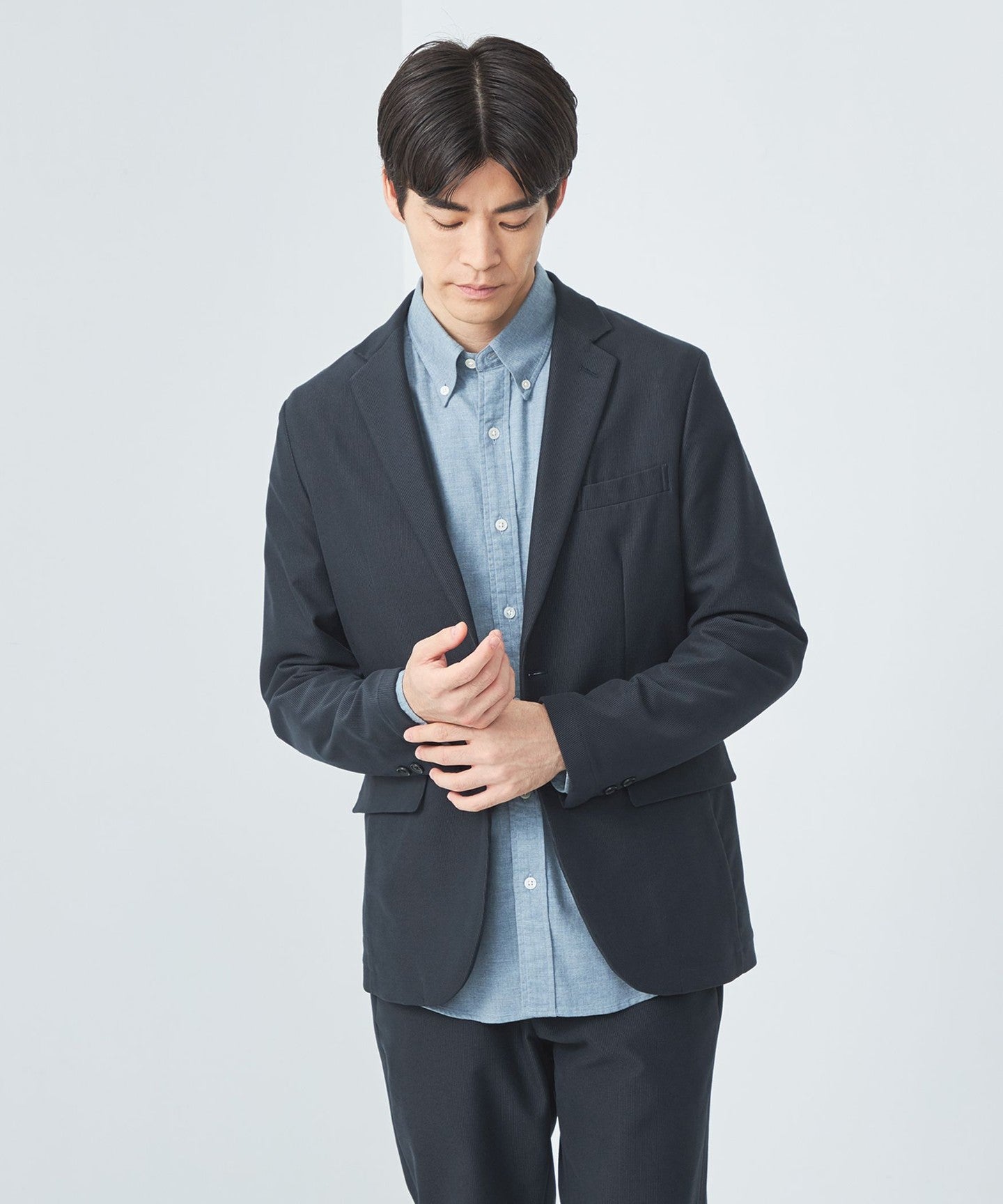 Although it has a standard design with notch lapels and flap pockets, it has a neat length and stitching on the sleeves and hem, giving it a somewhat casual impression.