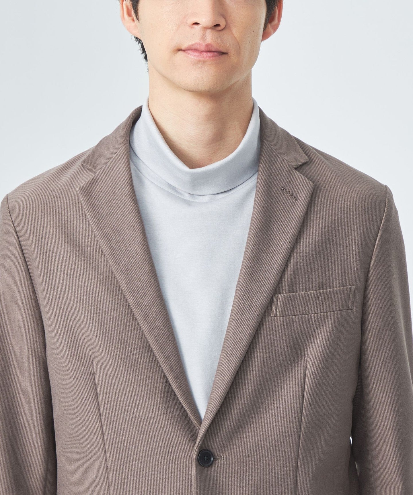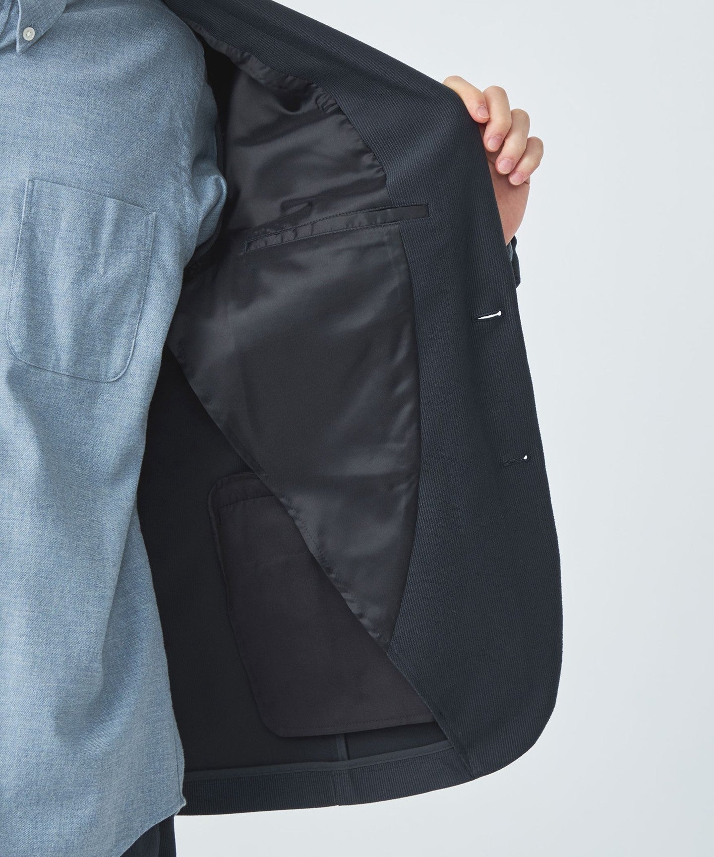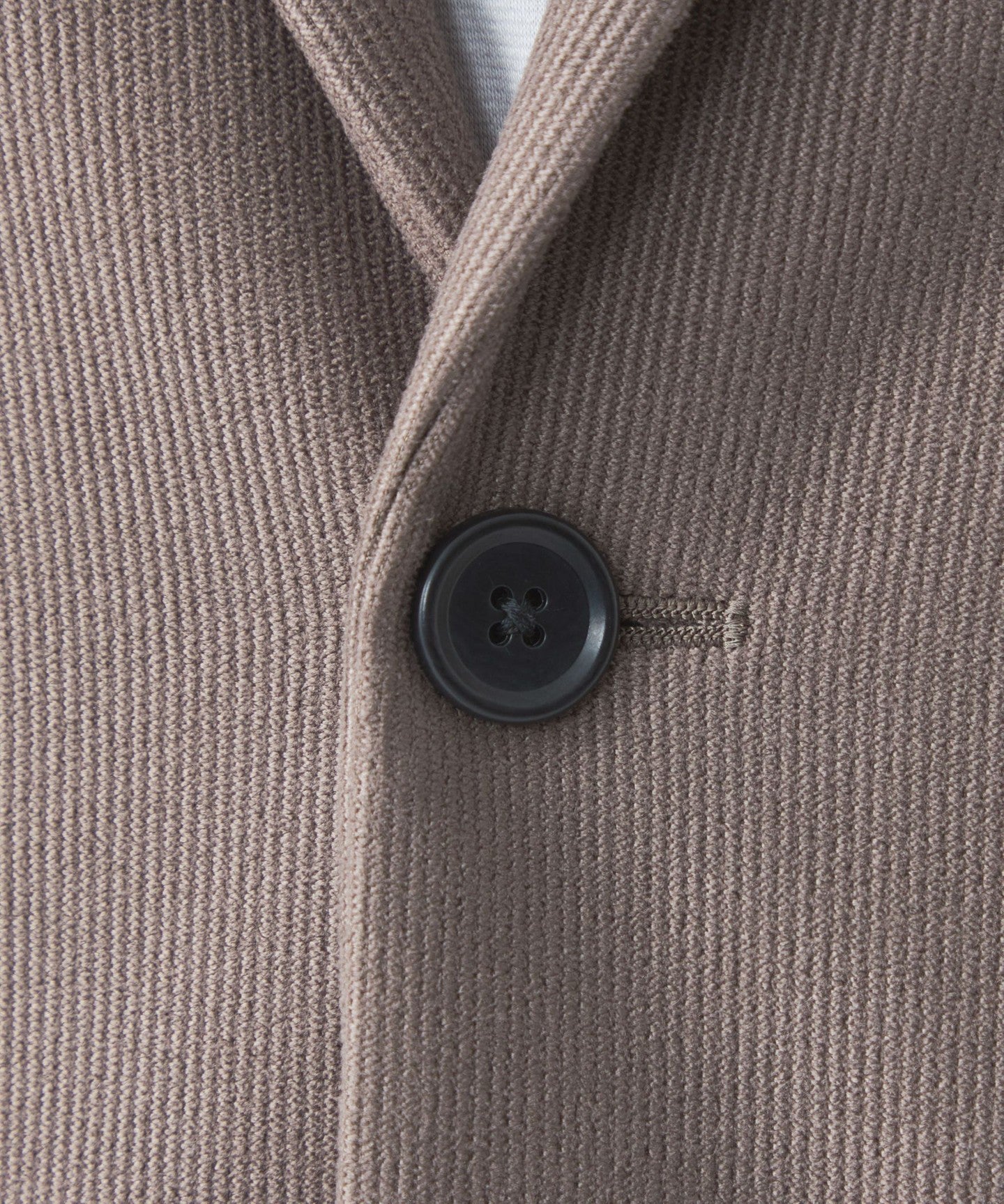 Although it has a standard design with notch lapels and flap pockets, it has a neat length and stitching on the sleeves and hem, giving it a somewhat casual impression.