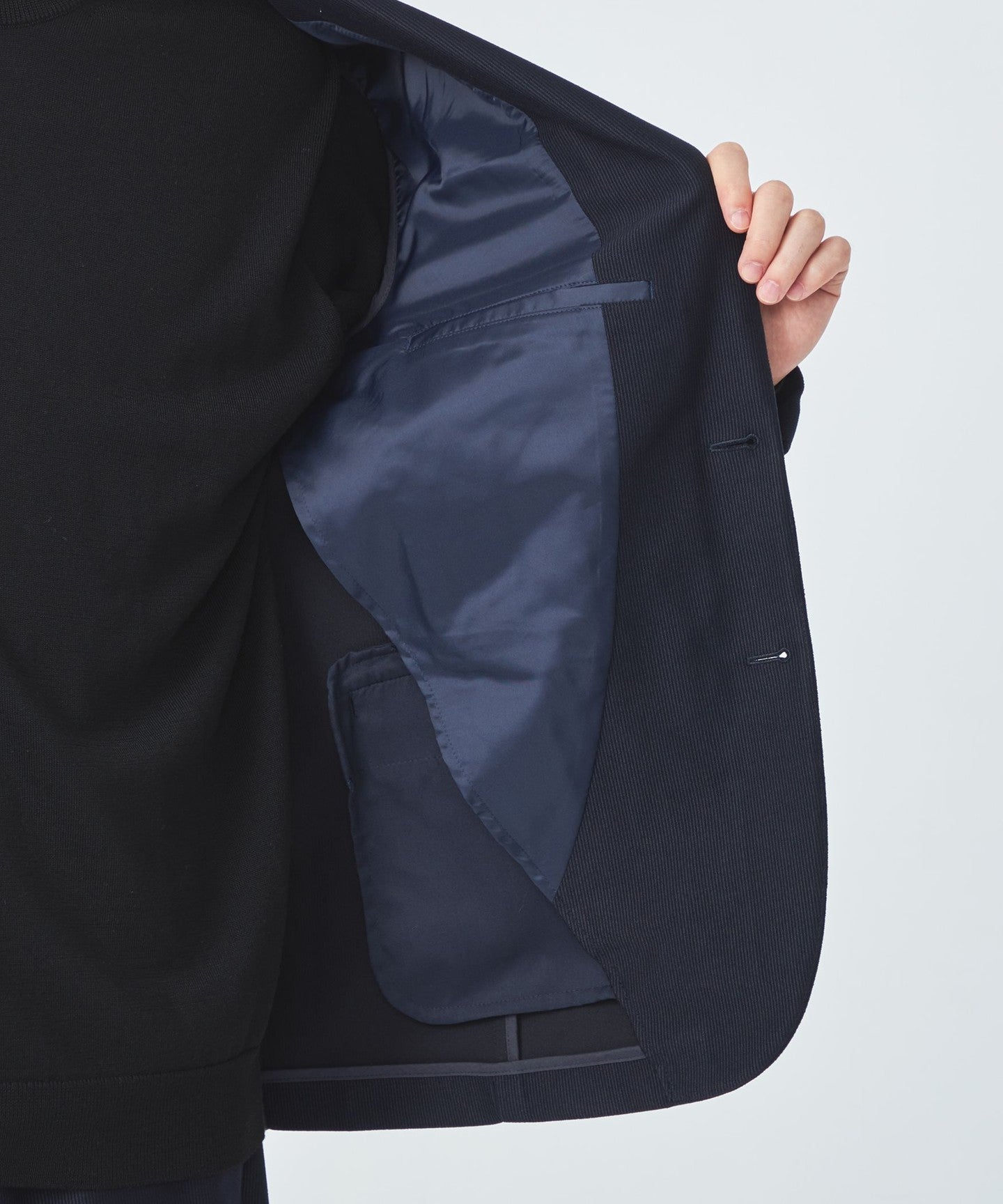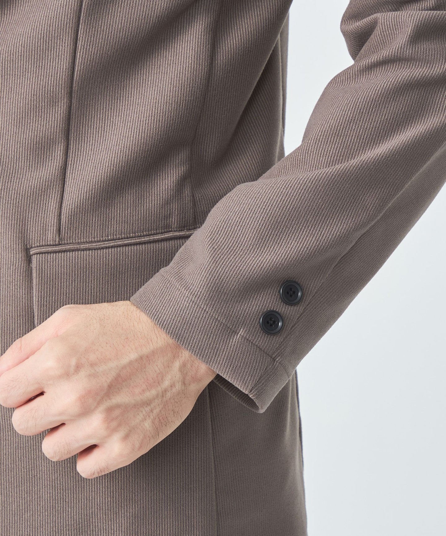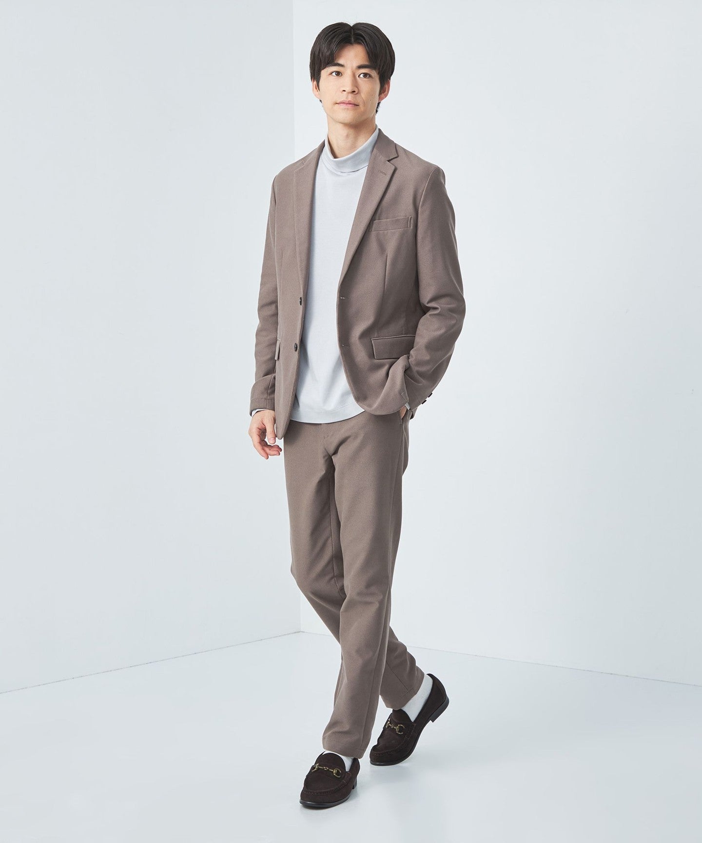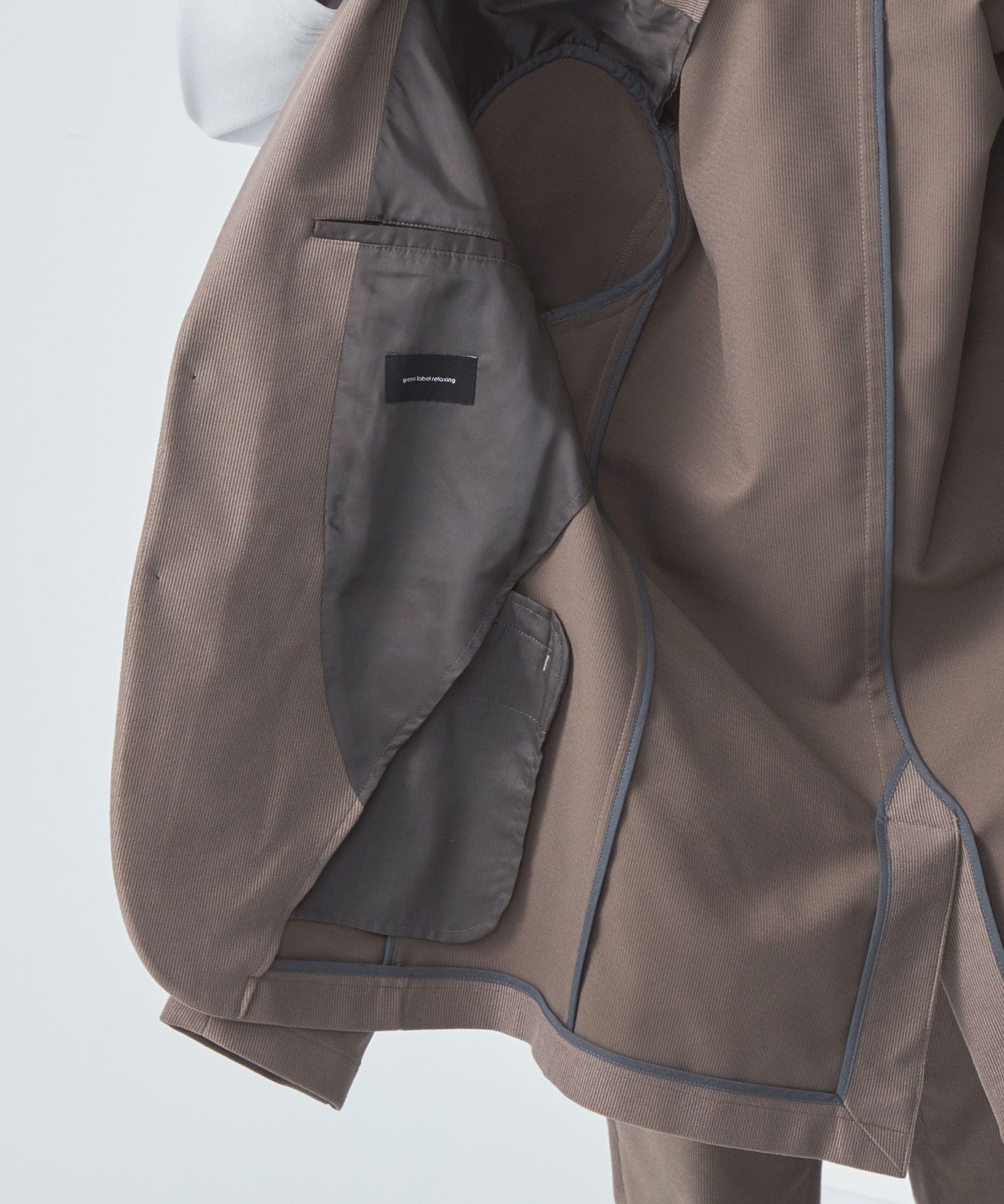 Although it has a standard design with notch lapels and flap pockets, it has a neat length and stitching on the sleeves and hem, giving it a somewhat casual impression.